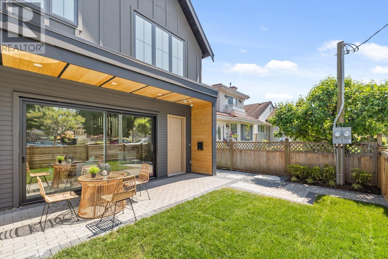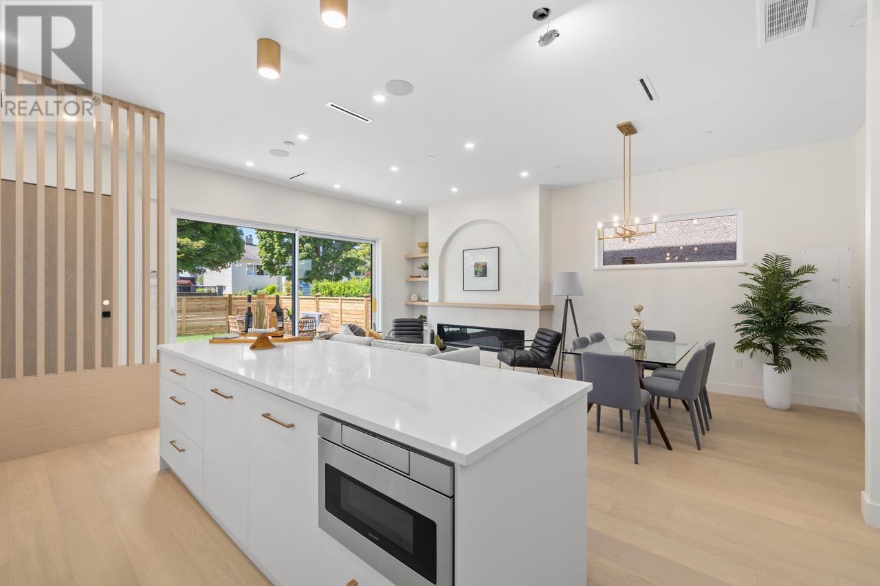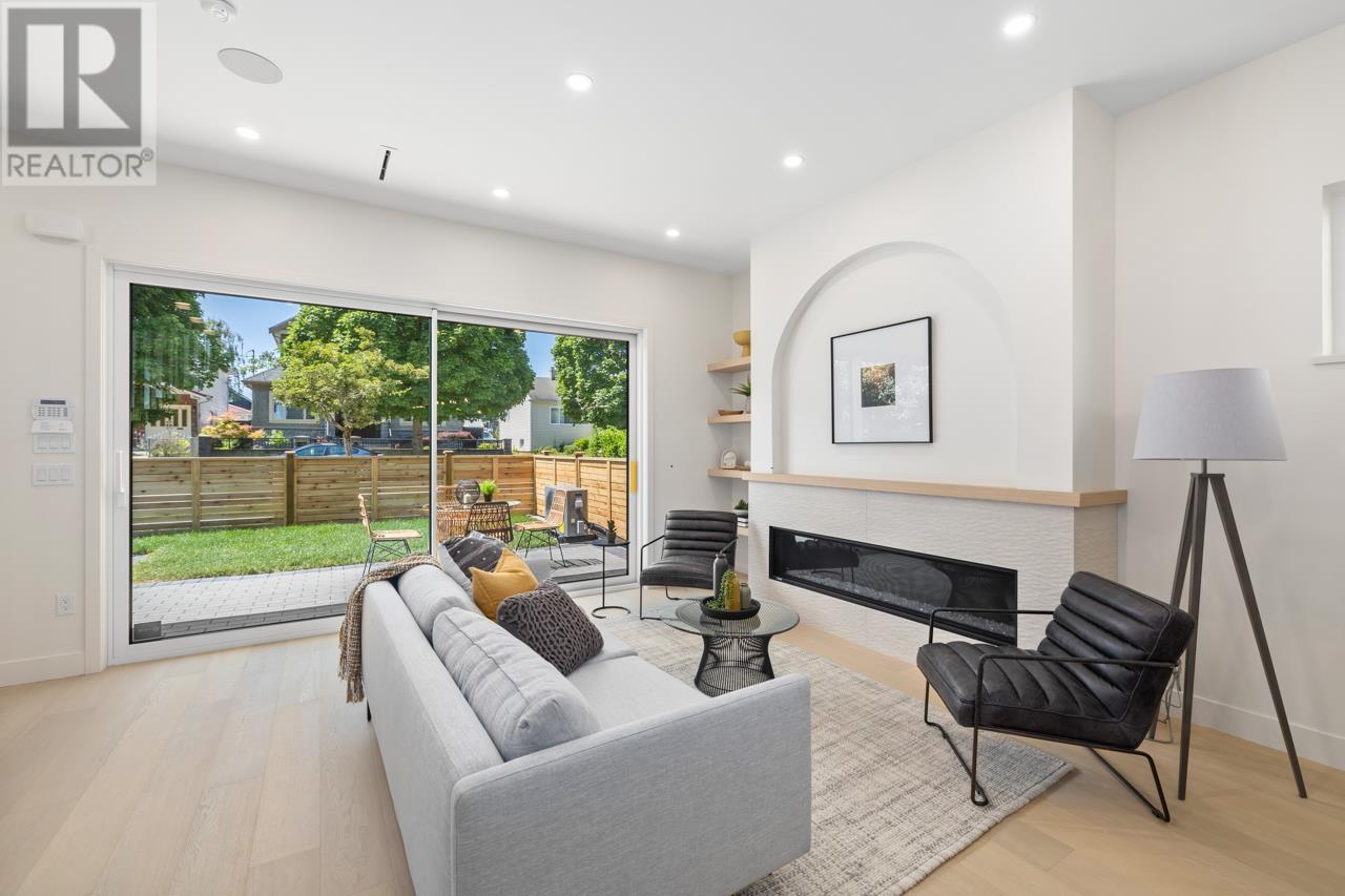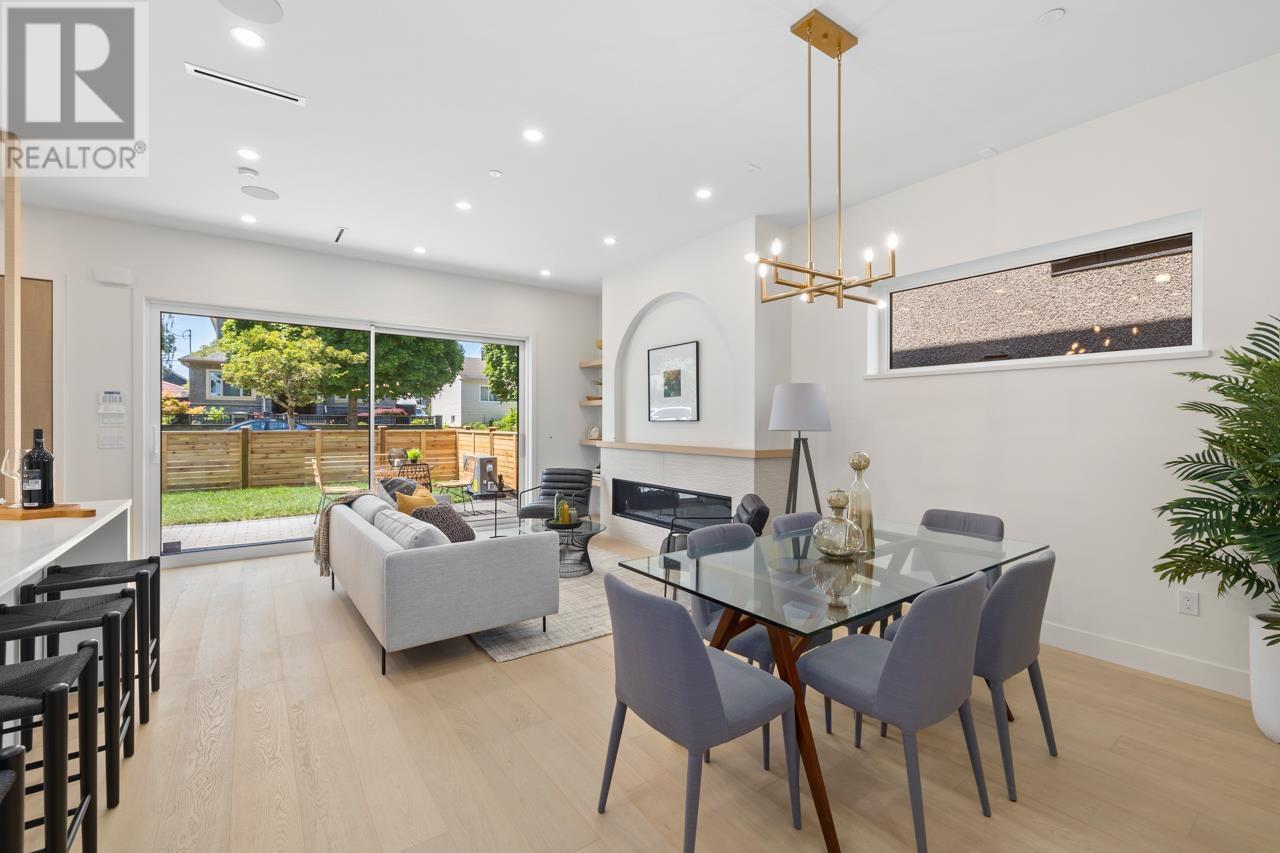 Asanti Homes presents this stunning two level 1/2 duplex in the prime Kensington Cedar Cottage area of East Vancouver. Seamless indoor/outdoor living with large sliding patio doors are a wonderful addition to the 722 sf main level, boasting 10ft ceilings, 74 inch gas fireplace and hardwood floors through-out. Gourmet kitchen features a large island, custom wood cabinets, and premium Fisher & Paykel appliances. All 3 bedrooms on the 2nd level which has a large primary bedroom with a walk-in closet. Enjoy year-round comfort with a heat pump for heating/cooling, built-in speakers, and a security system with video. Garage parking with EV capability. Sir Charles Tupper Sec/Sir Richard McBride Elementary. Open House Sat/Sun June 14th/15th 2-4pm (id:62103)