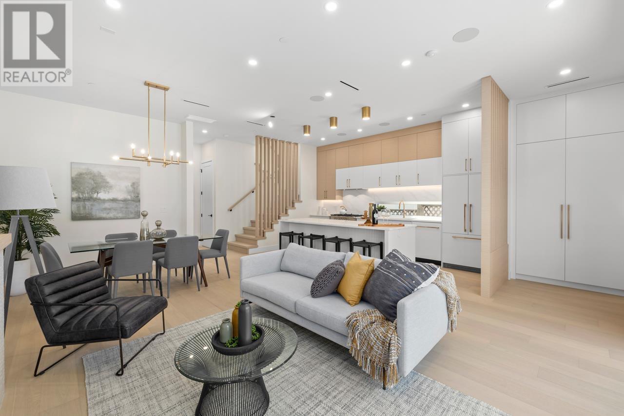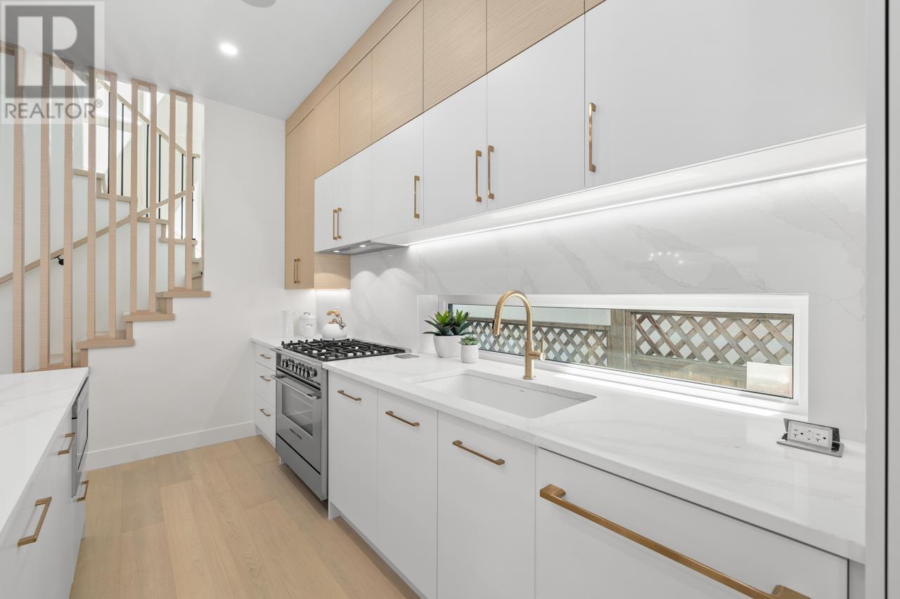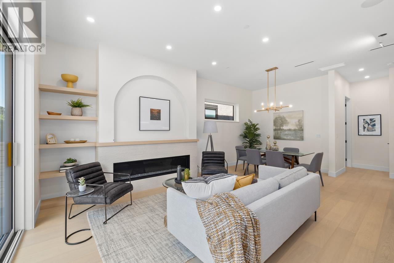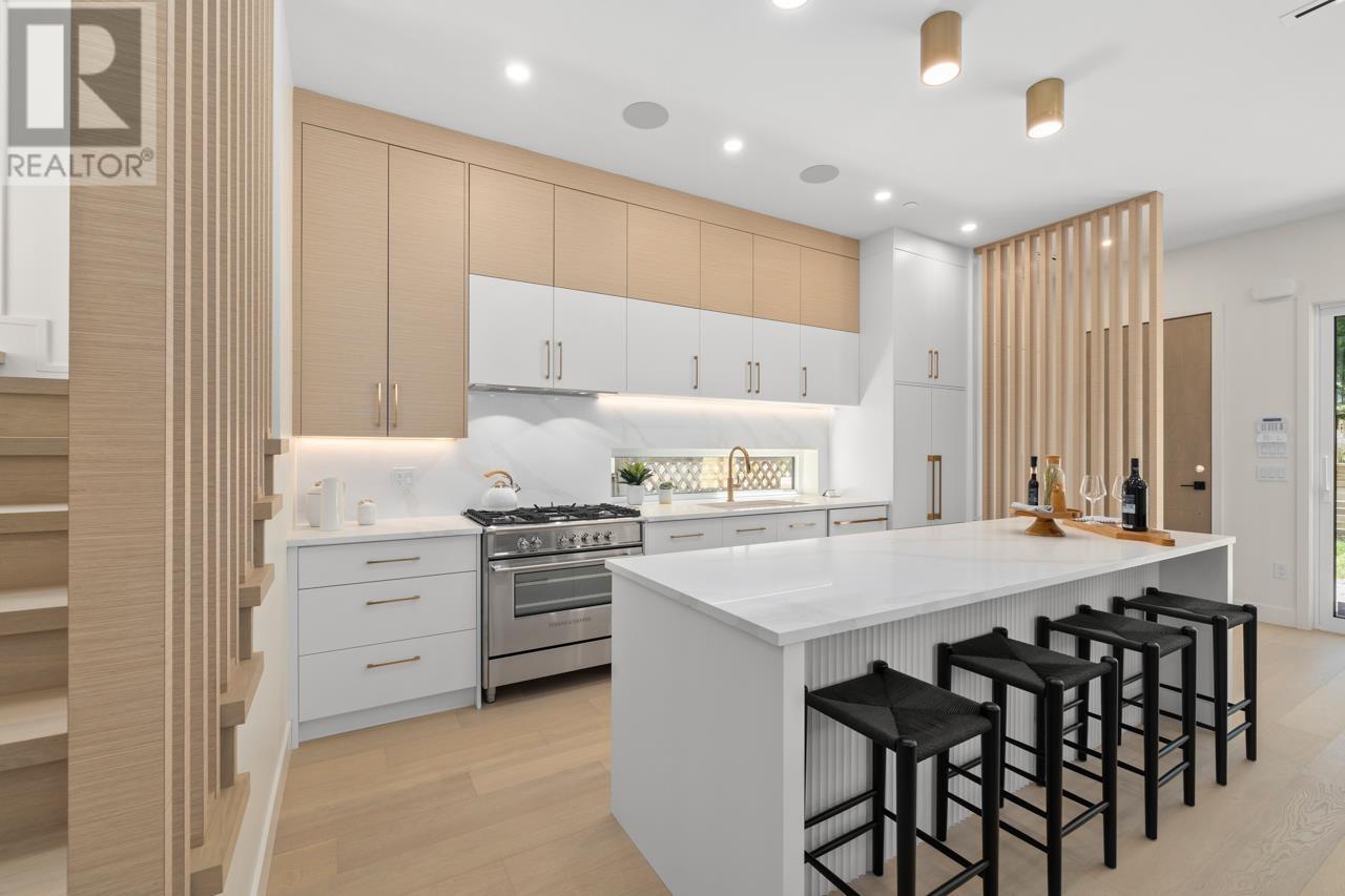 Asanti Homes presents this stunning two level 1/2 duplex in the prime Kensington Cedar Cottage area of East Vancouver. Seamless indoor/outdoor living with large sliding patio doors are a wonderful addition to the 722 sf main level, boasting 10ft ceilings, 74 inch gas fireplace and hardwood floors through-out. Gourmet kitchen features a large island, custom wood cabinets, and premium Fisher & Paykel appliances. All 3 bedrooms on the 2nd level which has a large primary bedroom with a walk-in closet. Enjoy year-round comfort with a heat pump for heating/cooling, built-in speakers, and a security system with video. Garage parking with EV capability. Sir Charles Tupper Sec/Sir Richard McBride Elementary. Open House Sat/Sun June 14th/15th 2-4pm (id:62103)