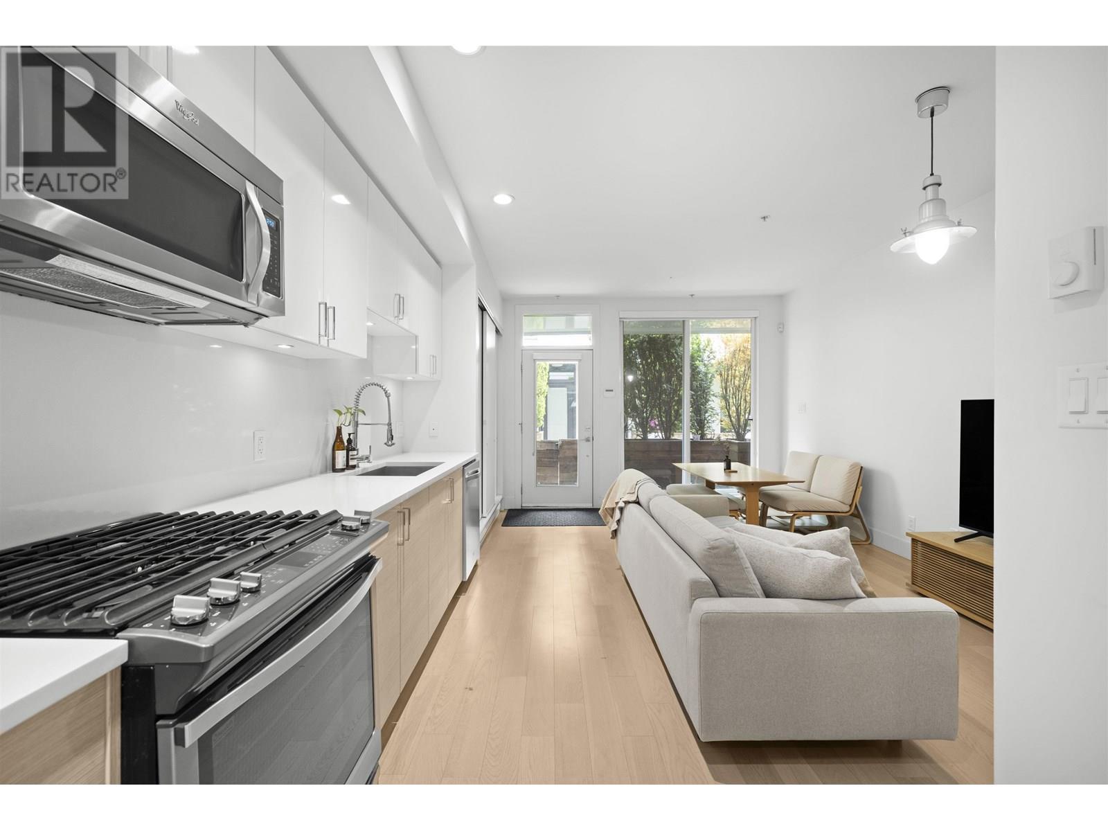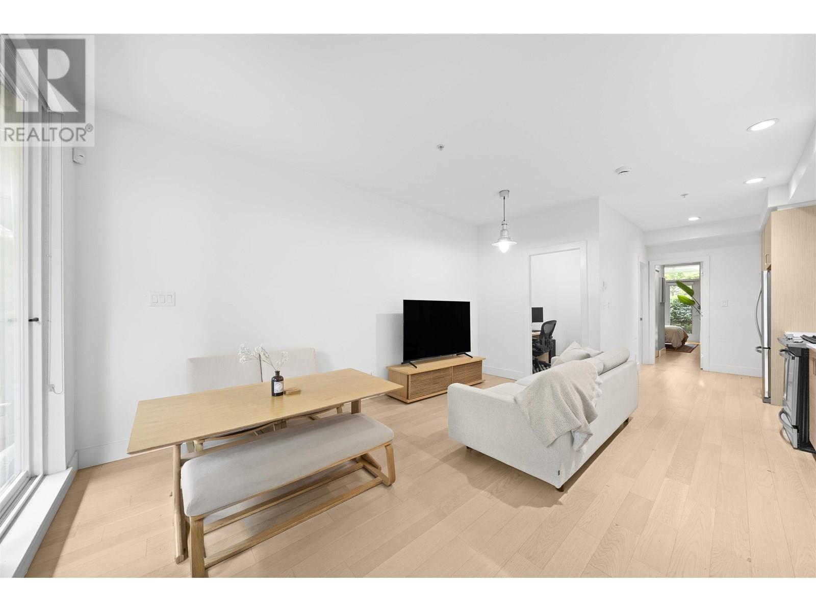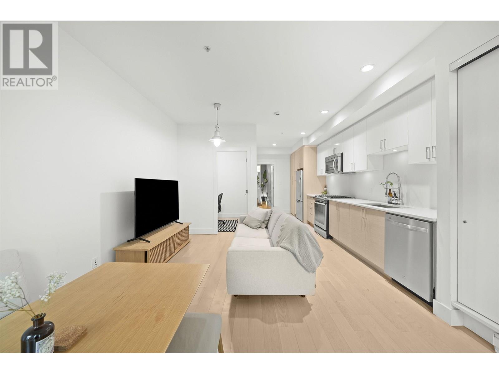 Welcome to Grandview Cascades – West Coast modern living in the heart of the vibrant Commercial Drive area. This well-designed 1 Bed + Den + Flex home offers an open layout with hardwood floors, stainless steel appliances, and two garden patios with natural gas hookups for your BBQ. Enjoy plenty of in-suite storage and flexible spaces ideal for a home office or guest room. Located in a well-managed building with low strata fees, just minutes from downtown Vancouver with easy access to SkyTrain, shops, cafes, and restaurants. A perfect blend of comfort, location, and value in one of the city´s most eclectic neighbourhoods. Don´t miss this opportunity! Showings by appointment & Open House May 31st 2-4pm ! (id:62103)