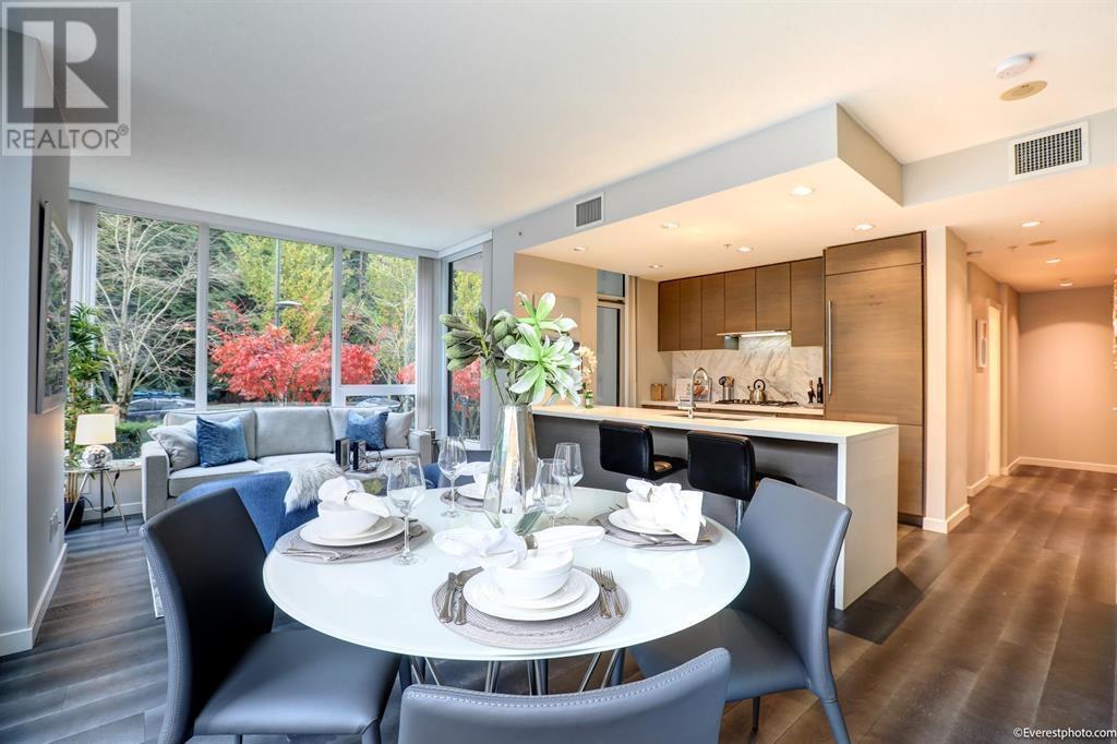 Ground level easy access with additional outdoor space, don’t miss this 2 bed rooms corner unit. Very quiet huge private patio, beautiful and large yard. The Laureates by Polygon provides everything you need to persure a higher level of living. Just a quick stroll away is Wesbrook Village, a picturesque and walkable community with tree-lined streets and an abundance of shops and services. This air-conditioned corner home offers a gourmet kitchen complete with premium Bosch appliances and a marble backsplash. Walking distance to U-Hill Elementary & Secondary School, UBC, Save-On Foods, coffee shops, restaurants and transportation. Patio 148sqft, Inside 987sqft, 1 Locker #157, 1 Parking #245. (id:62103)