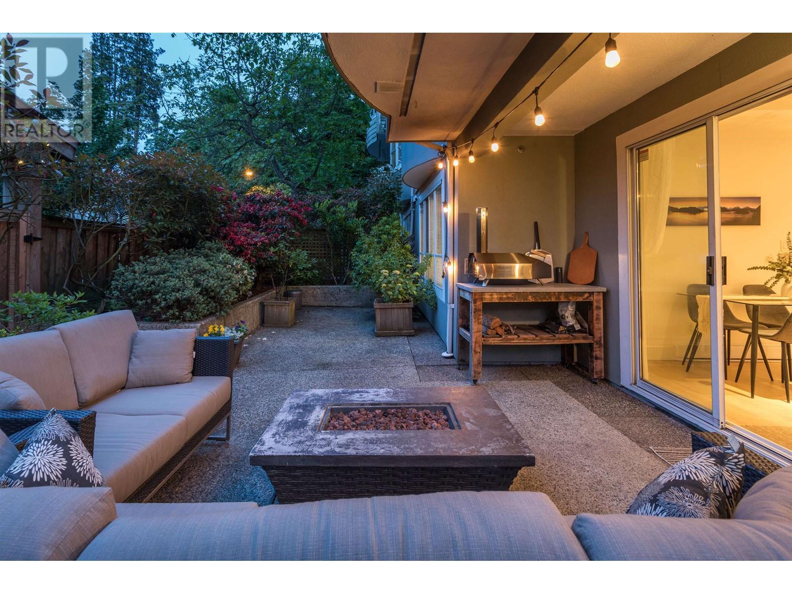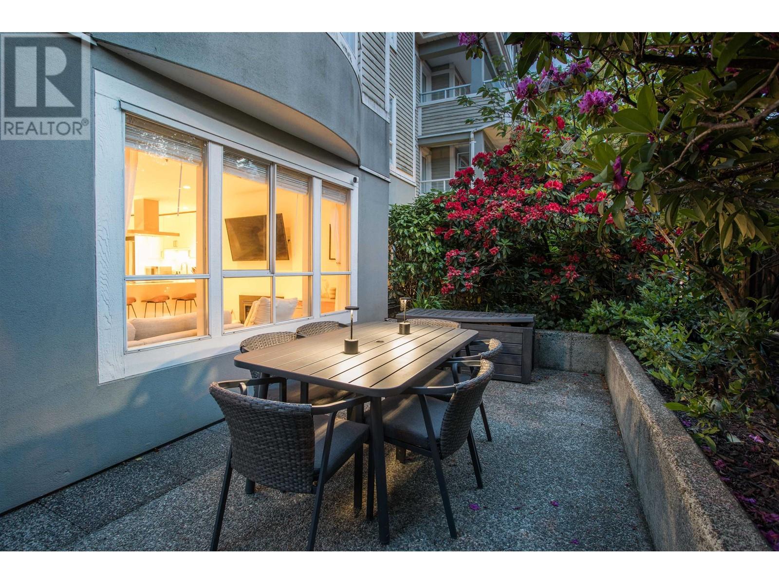 Wow… if you’re looking for a large patio and garden, this is the one! Escape the bustle of the city in your private garden oasis. 573 SF of patio surrounded by 705 SF of garden/flower beds that come alive in the Spring and Summer. Complete w a great open floorplan w great separation between bedrooms, this stunning corner garden suite boasts a large living room w adjacent dining, gas fireplace (included in strata fee), great updated big kitchen, large primary suite w beautiful ensuite bath, update 2nd bath + charming 2nd bedroom, insuite laundry, and 2 PARKING. Perfect for entertaining and gardening. Pets + rentals allowed. Sneak Peek Thurs 5-6pm (June 12) + Open House Sat 2-4pm (June 14) (id:62103)
