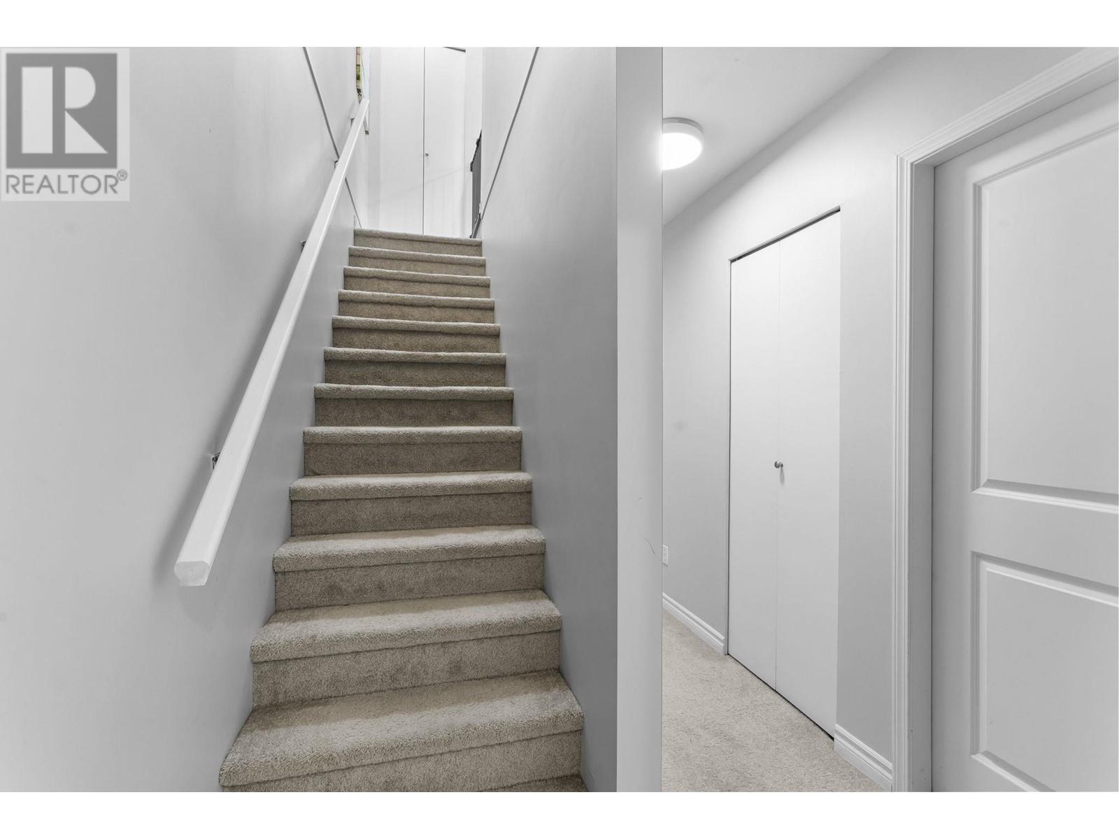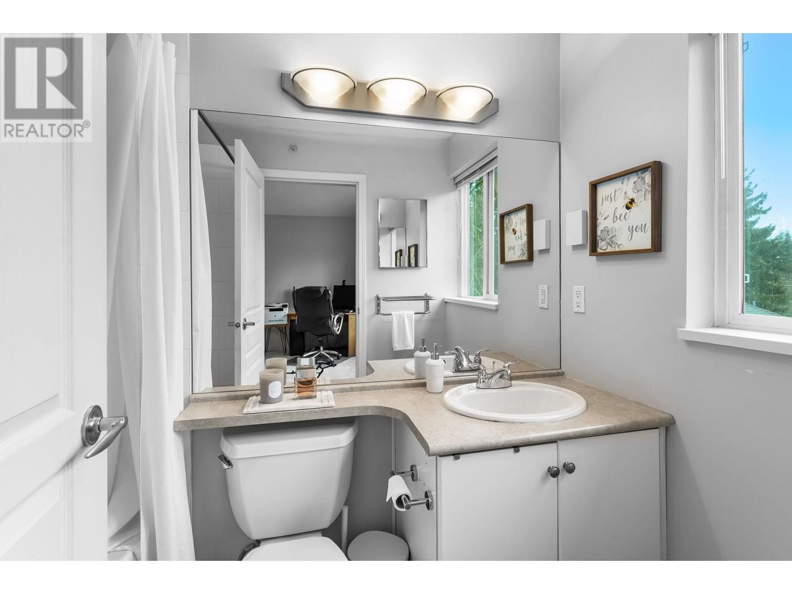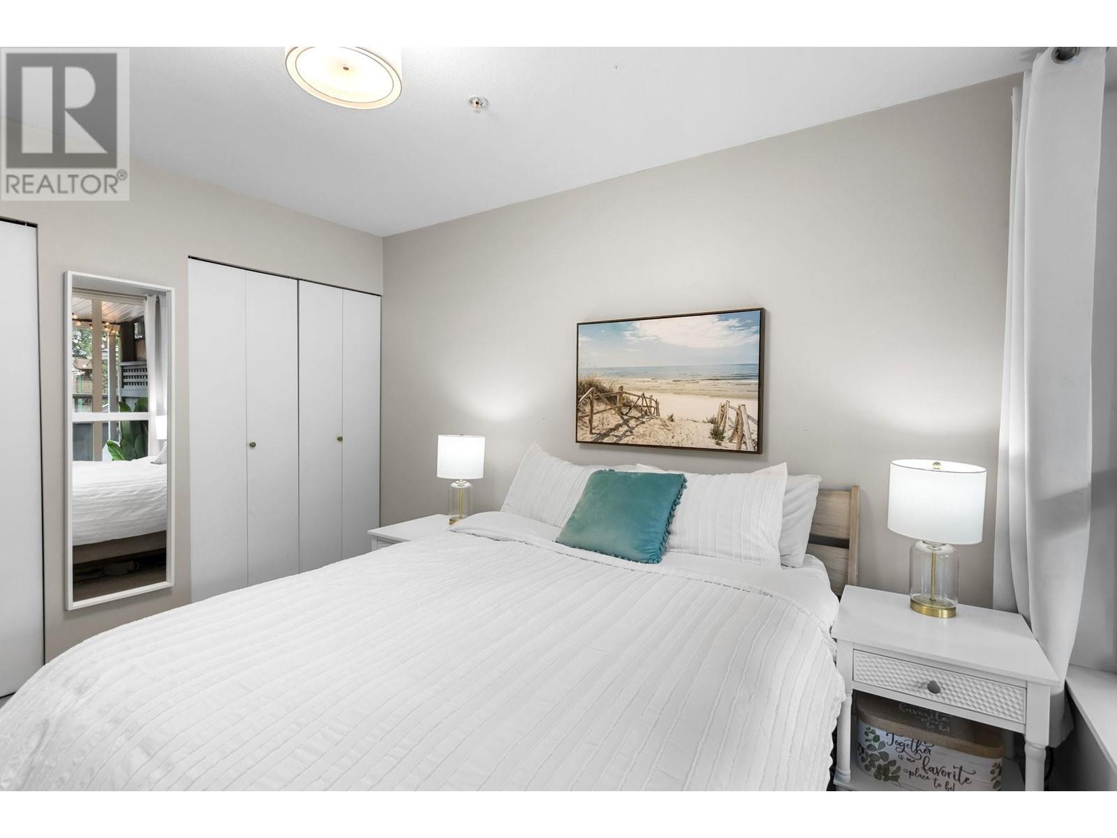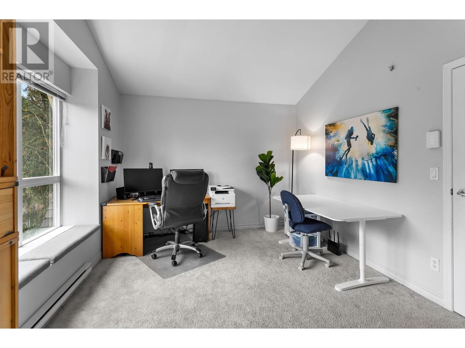 Private, end unit townhouse on the quiet side of the sought-after River Rock community! This beautiful 3-bed,2-bath residence offers two fantastic outdoor areas; a spacious deck off the main and a ground level patio opening up to a landscaped yard space for the kids to play! This centrally located Lynn Valley gem boasts updates including newer laminate, stainless steel appliances, and a new washer-dryer. As you walk in, beautiful, vaulted ceilings illuminate the interior with natural light. Upstairs, the primary is complete with a walk-in closet and ensuite. Downstairs offers two additional bedrooms, laundry and a storage room. Complete with 2 parking, bike rack, storage locker. A short walk from LV Centre, trails, parks, & schools. OPEN Sunday June 1st, 2-4PM (id:62103)