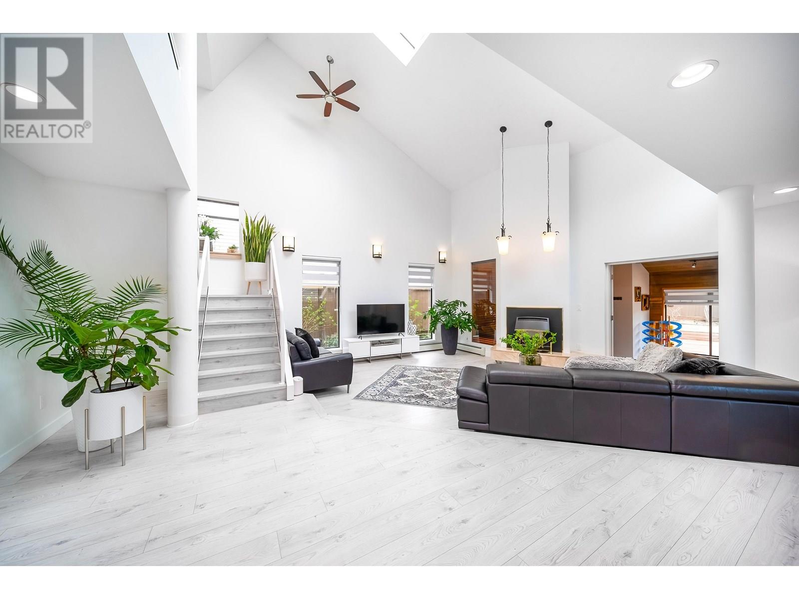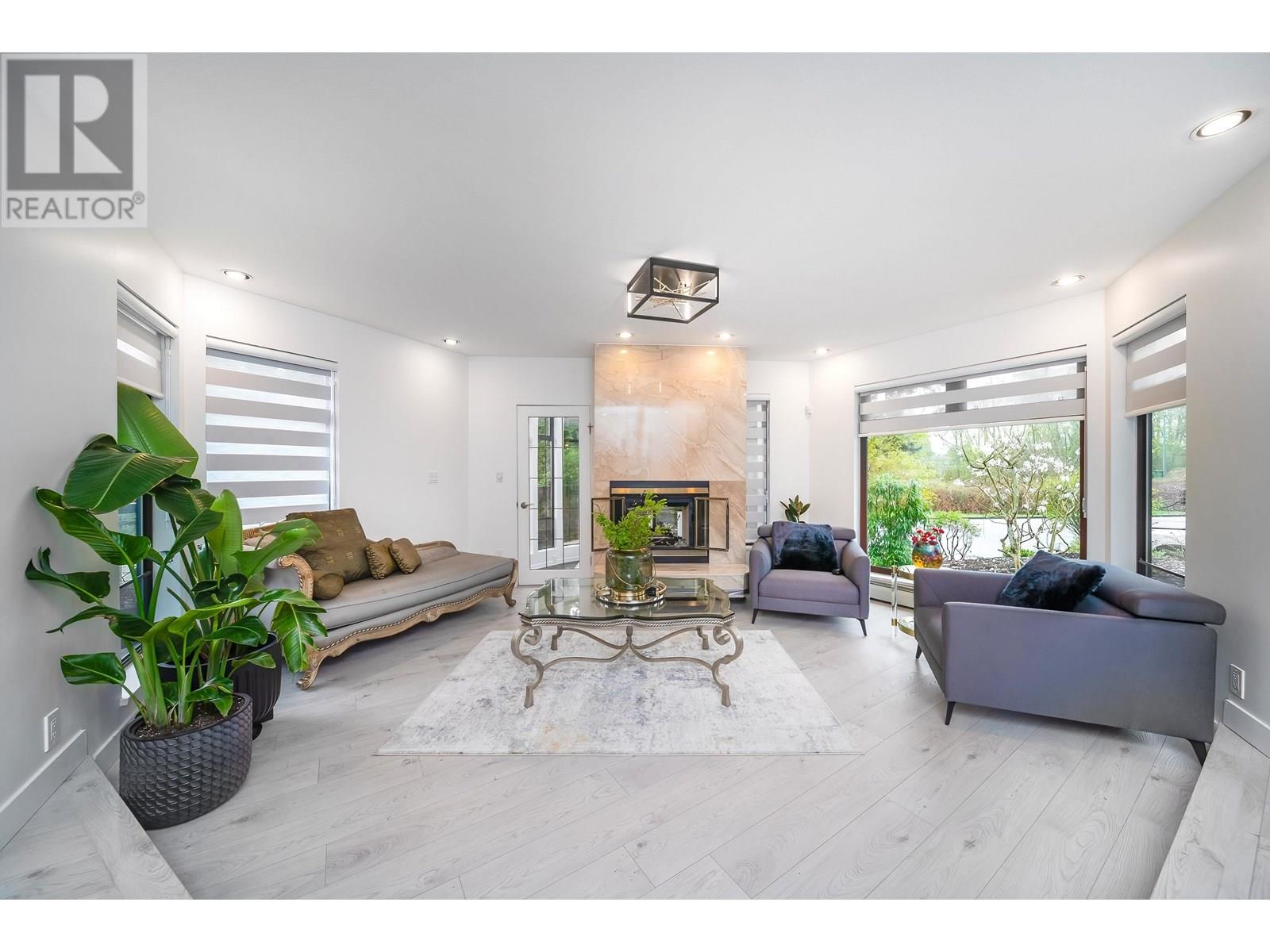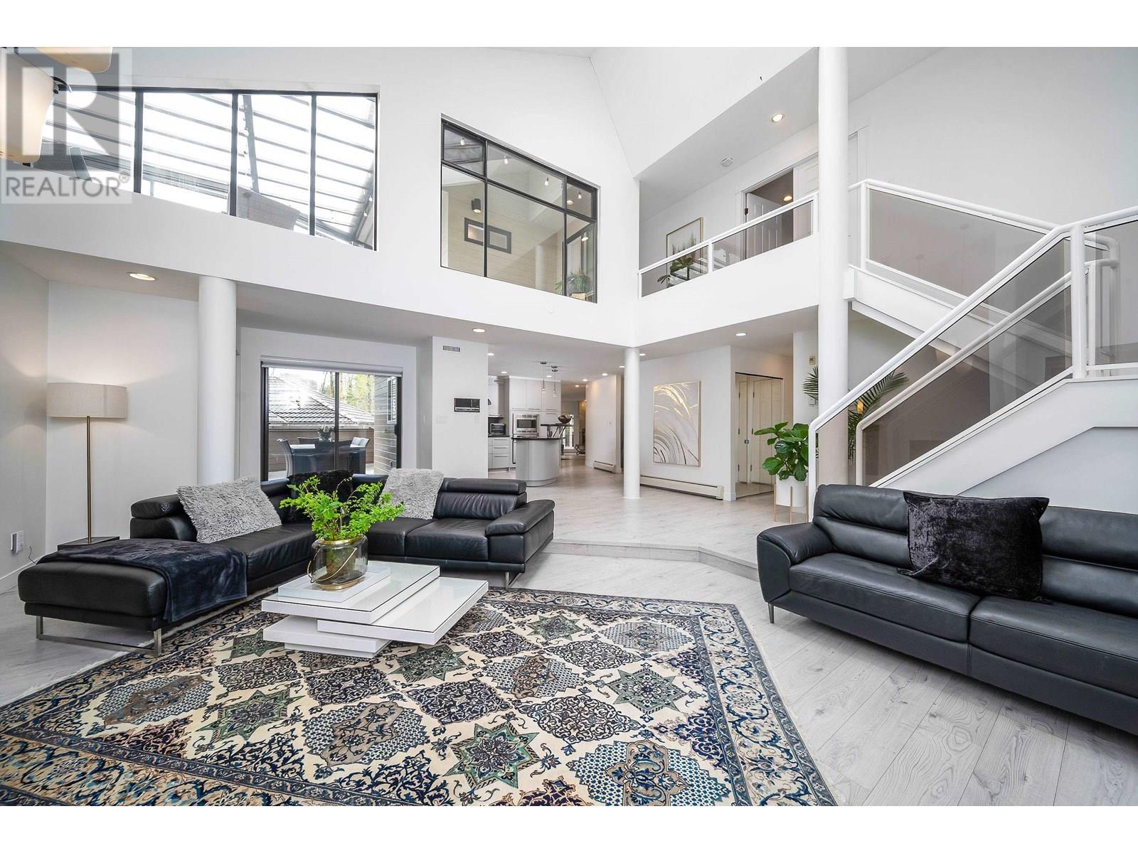 Welcome to this artistic home offers a blend of comfort and timeless charm. Located at a quiet neighborhood, recently renovated & well-maintained. Skylights and expansive windows provide abundant natural light in this beautiful house. Spacious and functional layout, vaulted high ceilings, gourmet kitchen, solarium, office and large one br with bath on the main floor. Two sets of stairs lead to upper level, features over 600 sqft primary br with flex space, separated with other two br area. Huge glass enclosed balcony for year-round use. Basement has large and newly renovated 2 br suite with separate entrance. Newer renovations including flooring, blinds, lights, paints, basement kitchen & bath, etc. Close to SFU, Golf Course, Parks and Shopping. Must see, book your appointment today! (id:62103)