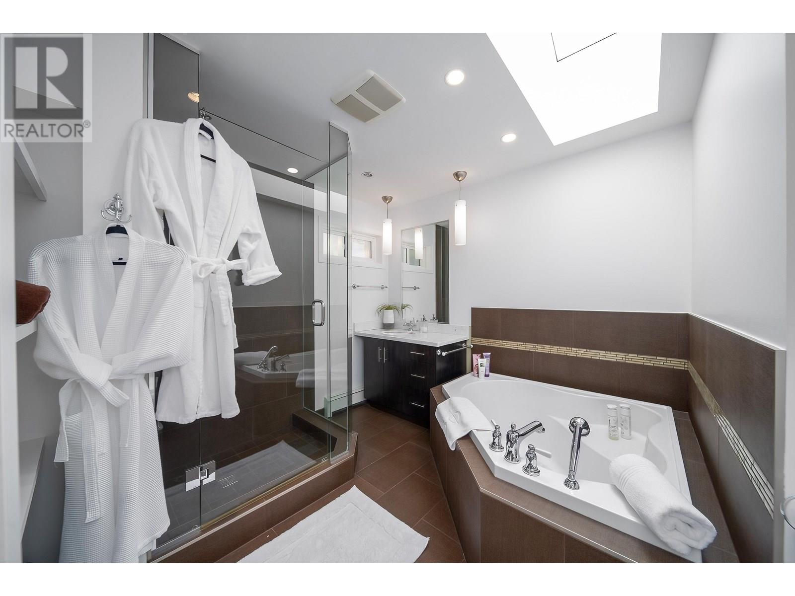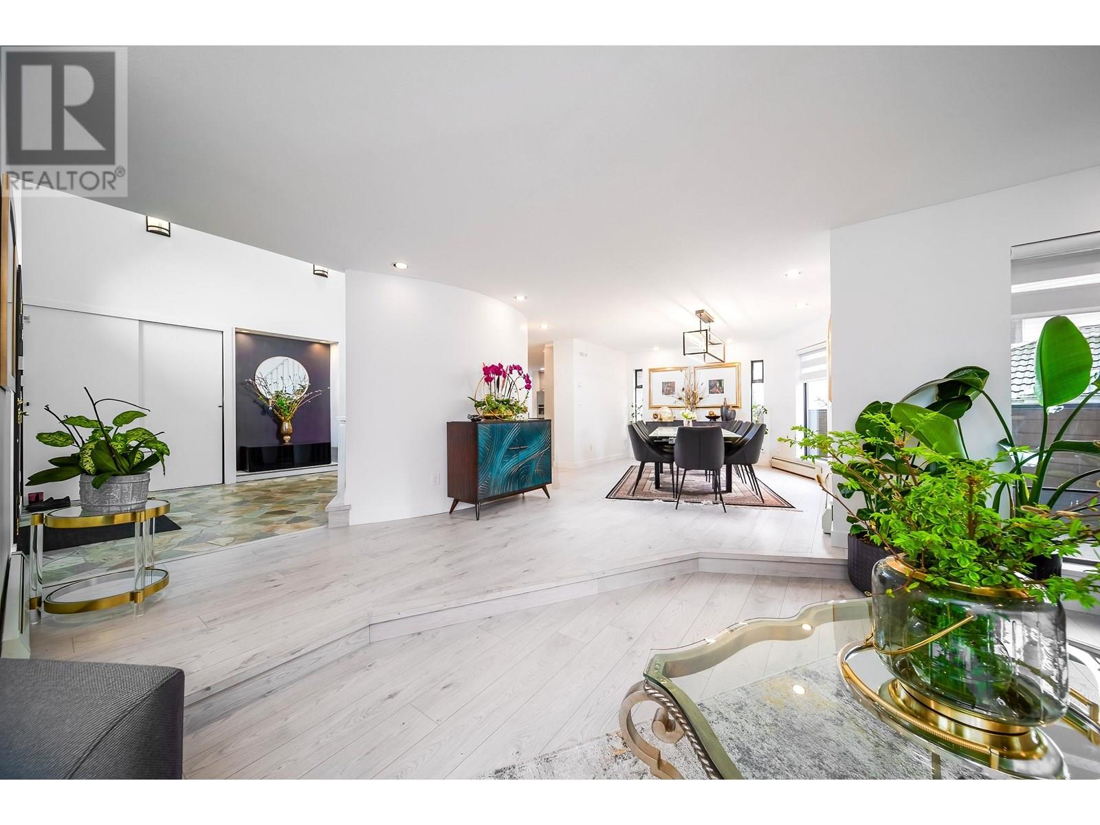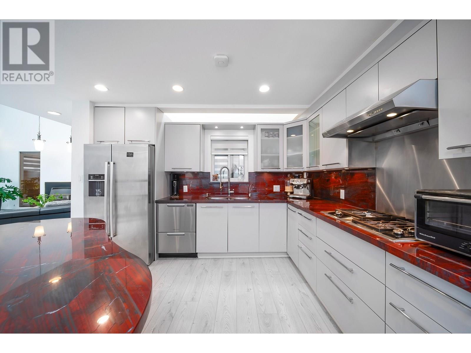 Welcome to this artistic home offers a blend of comfort and timeless charm. Located at a quiet neighborhood, recently renovated & well-maintained. Skylights and expansive windows provide abundant natural light in this beautiful house. Spacious and functional layout, vaulted high ceilings, gourmet kitchen, solarium, office and large one br with bath on the main floor. Two sets of stairs lead to upper level, features over 600 sqft primary br with flex space, separated with other two br area. Huge glass enclosed balcony for year-round use. Basement has large and newly renovated 2 br suite with separate entrance. Newer renovations including flooring, blinds, lights, paints, basement kitchen & bath, etc. Close to SFU, Golf Course, Parks and Shopping. Must see, book your appointment today! (id:62103)
