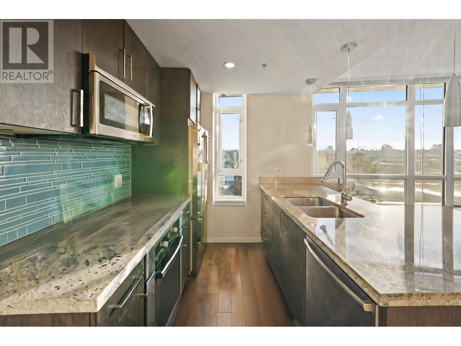 Experience luxury living in Olympic Village! This bright corner unit boasts a chef-inspired kitchen with quartz countertops, Fisher & Paykel appliances, and central A/C. The open layout features large bedrooms on opposite sides for privacy, a sizable living room, plus a sunlit south-facing deck, solarium, and an office-sized den that doubles as a third bedroom. Enjoy ample in-suite storage, a gym, multipurpose room, kids’ playground, and additional space with a sizable personal bike locker and a large storage locker. Complete with EV charging, concierge service, and a spacious parking spot. Walk to the Seawall, Canada Line, and all the Village amenities! **OPEN HOUSE – JUNE 1, SUNDAY, 3:30PM-4:30PM** (id:62103)