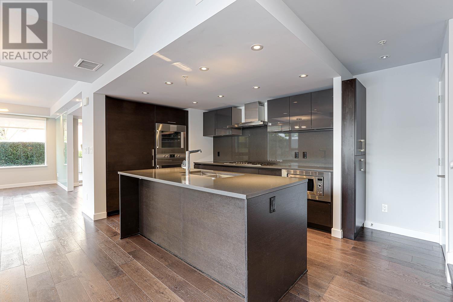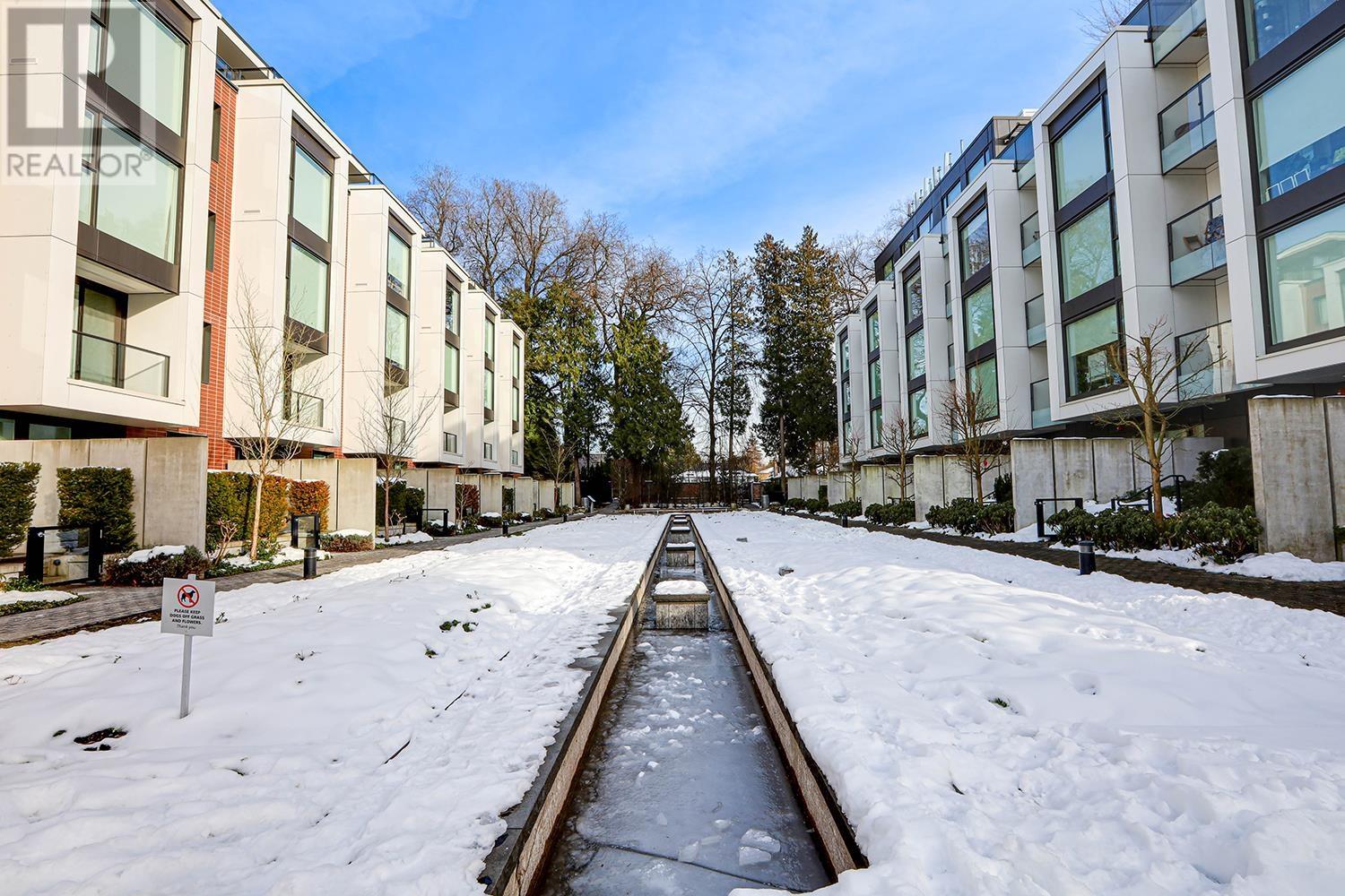 Situated in the prestigious Shannon Wall Centre Kerrisdale, this elegant 3-bedroom townhouse rests on a gated 10-acre heritage estate in South Granville. Upgraded with designer touches, it features a stunning feature wall, tempered glass accents, wood strip panels, Hunter Douglas Pirouette window shadings, LED ceiling panels, custom closets, a new dryer and a fresh coat of paint. The upper level offers a spacious primary bedroom, a second bedroom with a desk, and a third bedroom with a murphy bed. Two large patios are perfect for summer BBQs and entertaining. Enjoy exclusive amenities, including a private gym, yoga room, outdoor swimming pool, and beautiful gardens. Maple Grove Elementary, Magee and Sir Winston Churchill Secondary catchment. Don´t miss out on this exceptional opportunity! (id:62103)