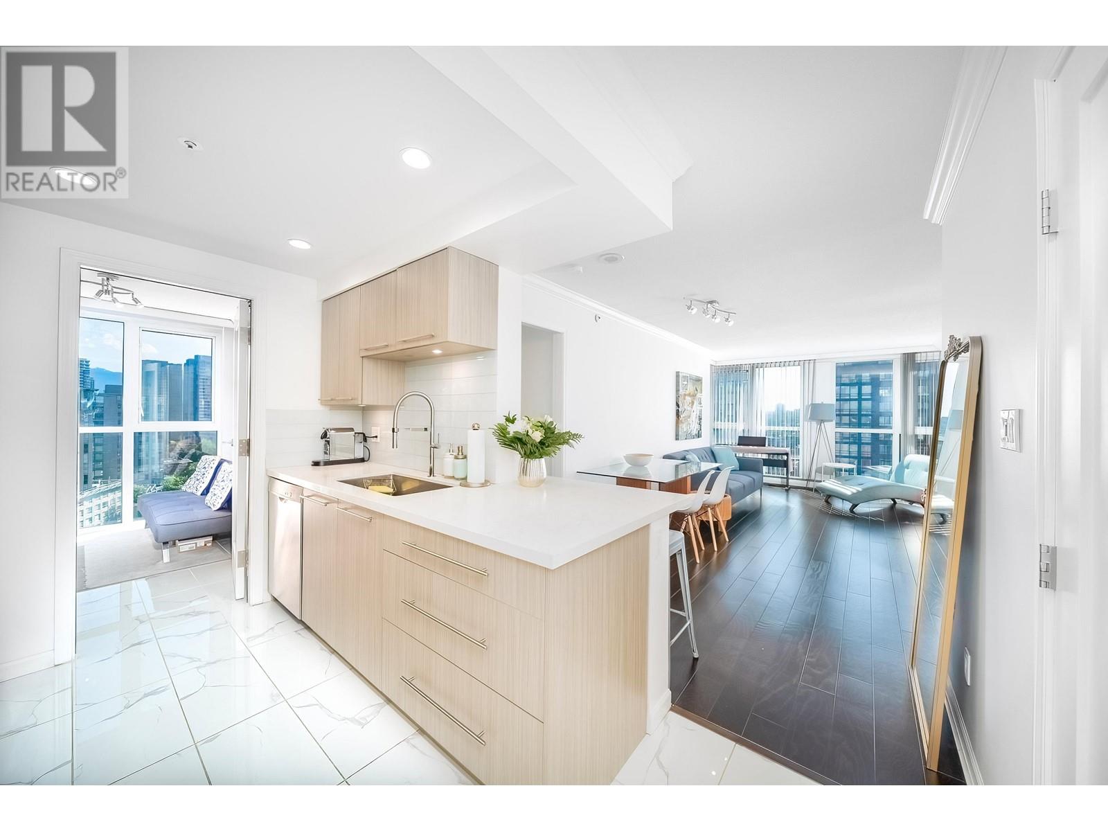 This spacious 2 bedroom, 2 bathroom apartment in the heart of Yaletown offers the perfect balance of comfort and style. Featuring a large den that can easily be used as a home office, extra bedroom, or cozy retreat, the layout maximizes space and functionality. The modern kitchen boasts high-end appliances, while the open living and dining area is ideal for both entertaining and everyday living. Large windows flood the space with natural lights, offering stunning city and water views. Just steps away from David Lam Park, Seawall, marina, Canada Line, Urban fare, Roundhouse Community Centre and all shops and restaurants in Yaletown. Locker can be rented for $40/month. (id:62103)