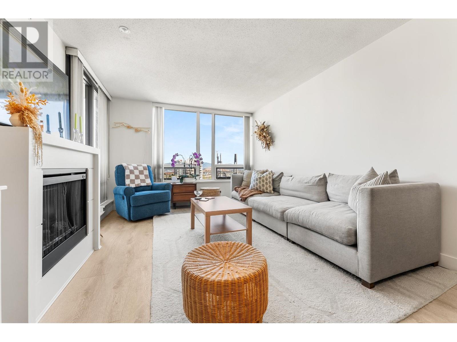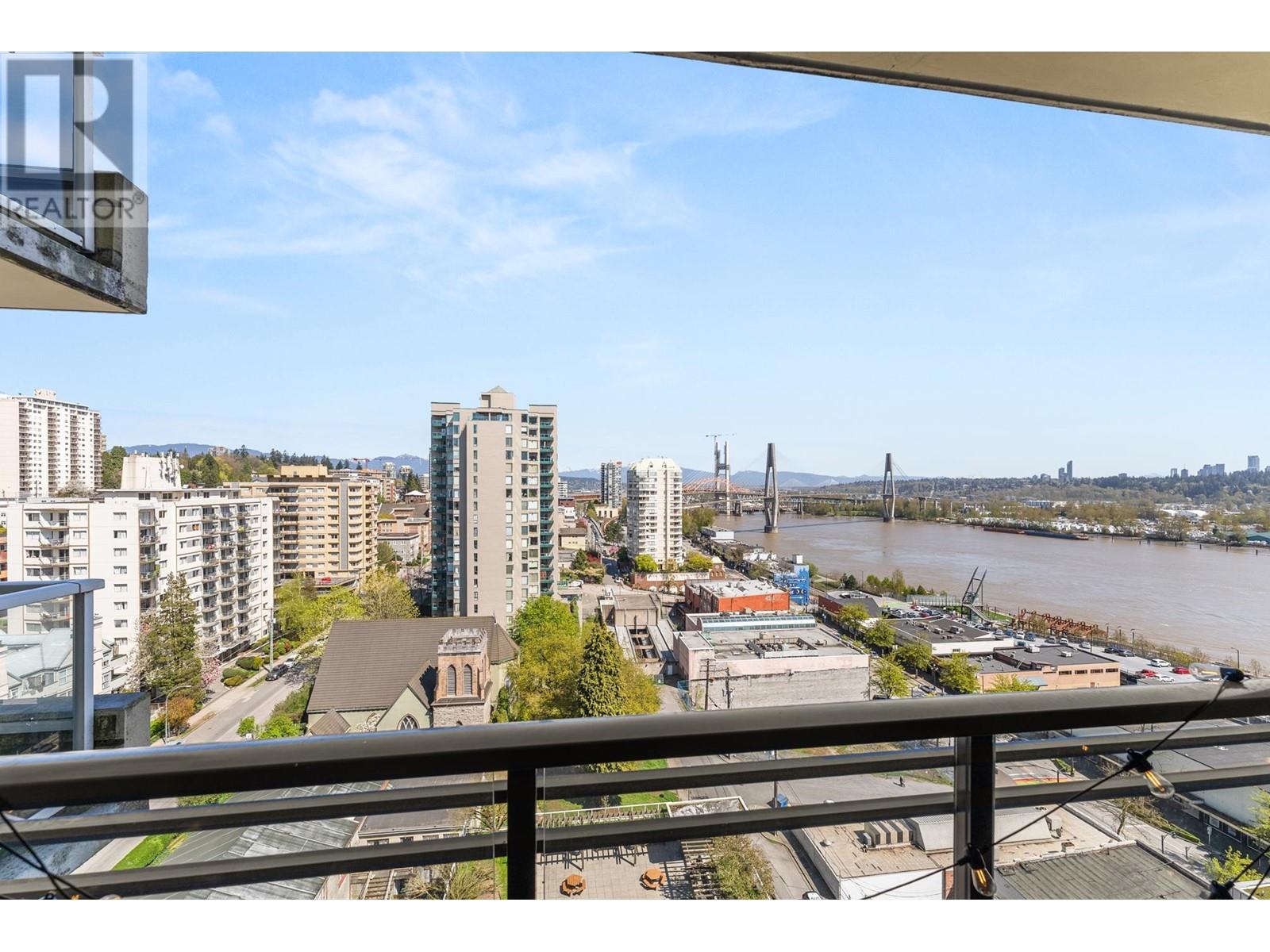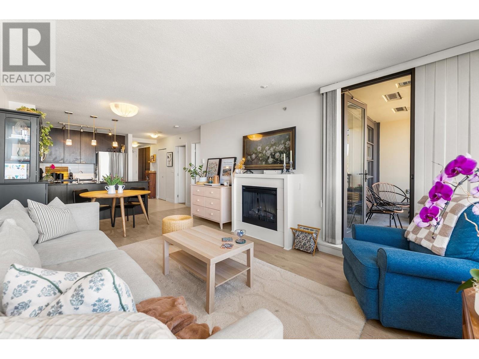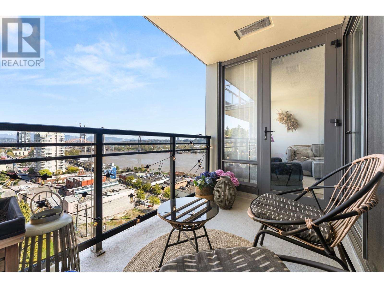 A stylish 1 bed + den, 1 bath condo perched on the 17th floor in the heart of New Westminster. This modern home features a seamless open-concept layout that feels airy & inviting from the moment you enter.Large windows flood the space with natural light, while a private balcony off the living area offers fresh air & sweeping views of the Fraser River – the perfect backdrop for your morning coffee or evening unwind. Inside, the living room is anchored by a cozy fireplace that adds warmth & character. The well-designed kitchen overlooks the main living space, creating a bright, social atmosphere ideal for both everyday meals & entertaining. With generous counter space, modern appliances, and a versatile den, this home blends function and style. Enjoy top-tier amenities like a gym and sauna. Steps from Columbia SkyTrain, it’s 30 mins to downtown and close to shops, parks, and dining. Breathtaking views and unbeatable location make this a rare New West gem. (id:62103)