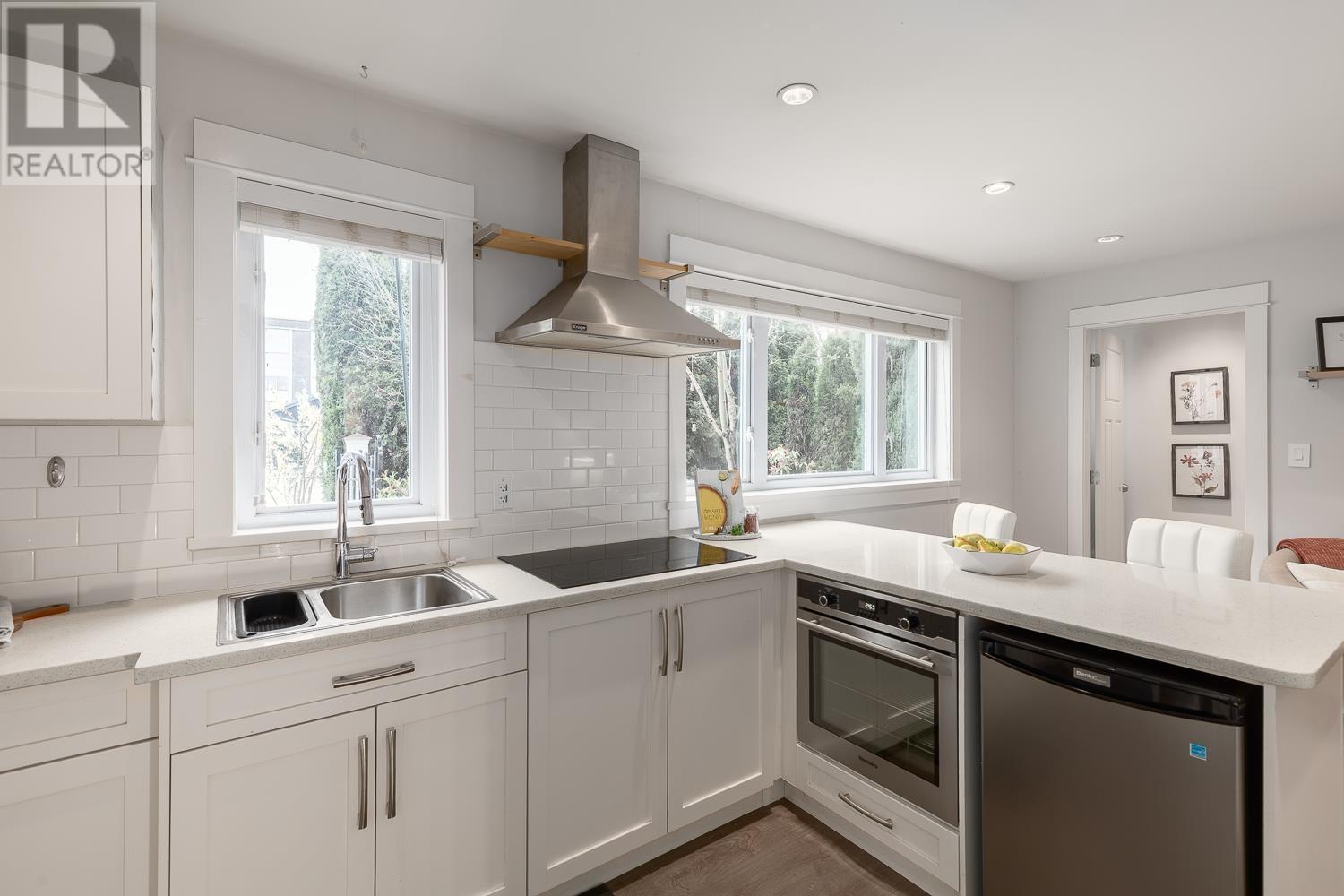This unique 1/2 duplex features quality construction inside and out with a versatile floor plan just steps from vibrant Commercial Drive. The main floor is bathed in natural light and opens onto a sunny, south-facing balcony with a gas hookup, perfect for summer BBQs. The chefs kitchen features quartz countertops, a pull-out pantry, and SS appliances. Oak floors, a stylish full bathroom, and a versatile bedroom or office complete this level. Upstairs you will find 2 bedrooms and 2 bathrooms with almost 10ft ceilings including a primary bedroom with ensuite. Bonus!! Bright and airy, above grade garden level 1 bedroom suite and an attached garage! Lots of creative storage solutions throughout! Front yard, side yard and West facing front porch. (id:62103)