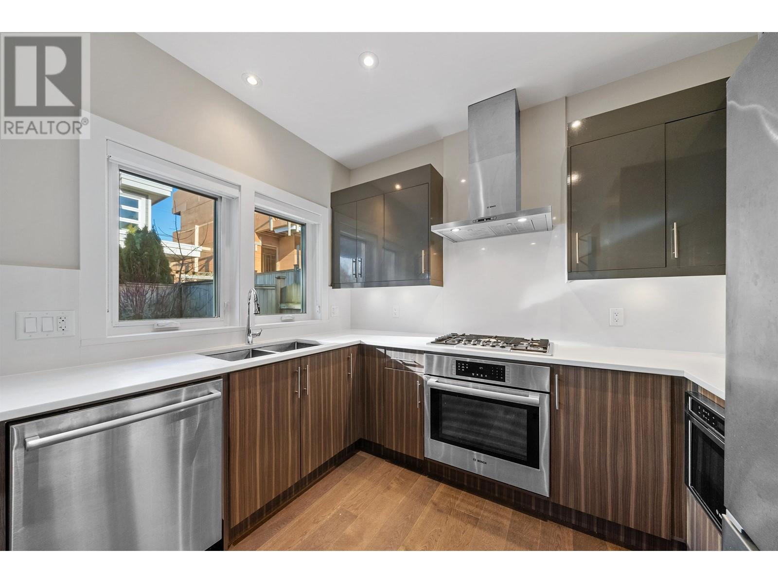 Discover modern living in this stunning 1/2 duplex in Central Lonsdale, one of North Vancouver´s most desirable areas. Steps to parks, shops, dining, and top schools, this home offers ultimate convenience. Enjoy a bright, open layout with a chef´s kitchen, high ceilings, and elegant finishes. Upstairs features serene bedrooms, while the fully fenced yard is perfect for relaxing or entertaining. A finished basement with wet bar and 4th bedroom adds flexibility. Bonus: 2 parking spots and EV power in garage. This is a rare chance to own style, space, and location in one perfect package. Note some photos are virtually staged.Open House: Sunday, May 25 2pm-4pm (id:62103)