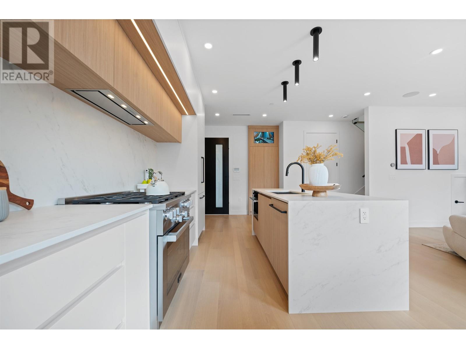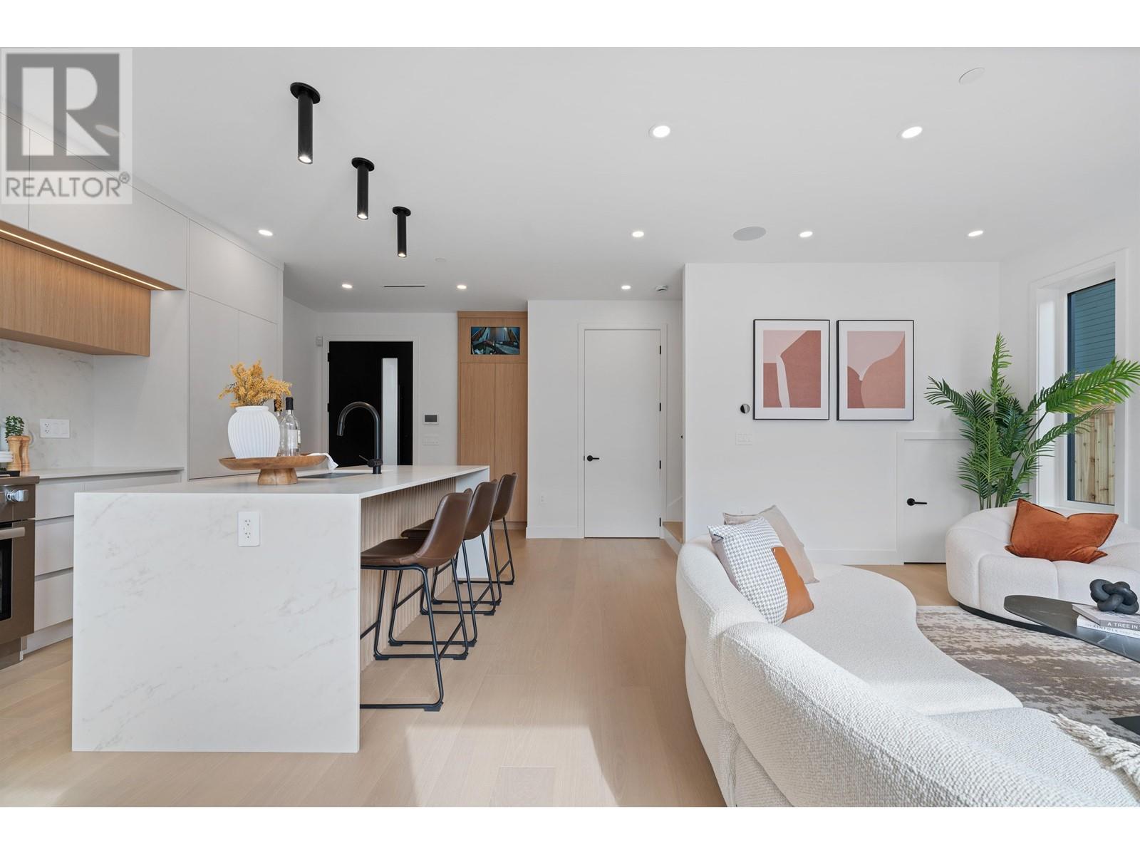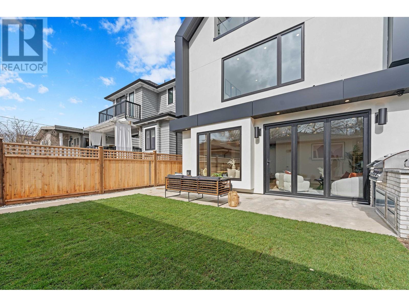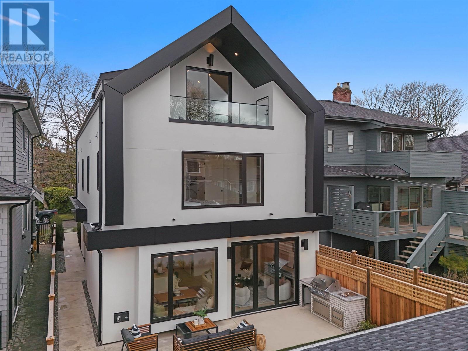 Welcome to this exquisite back 1/2 duplex in the heart of Dunbar, built by renowned Westside builder Mann Bros Construction. Offering over 1700 sqft of living space across 3 levels, this home is a masterpiece of design & craftsmanship with no detail spared & only the best materials used. The main floor boasts an expansive, open-concept layout that seamlessly connects the living, dining & kitchen areas. Large eclipse doors open to a south-facing fenced yard with an outdoor kitchen. Upstairs, you’ll find 3 generously sized bdrms, each with its own luxurious ensuite & custom cabinetry. The top floor is a versatile space, ideal as a bdrm, home office or rec room & it includes its own private balcony. Additional features include a one car garage, in-floor radiant & heat pump, A/C & a security system. (id:62103)