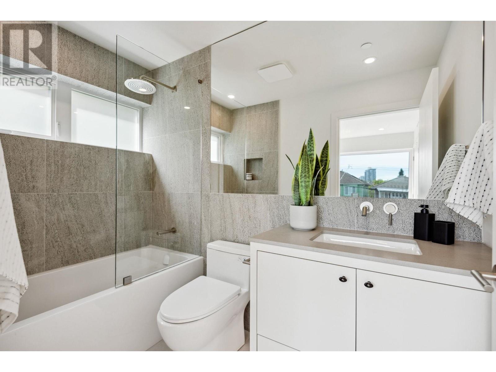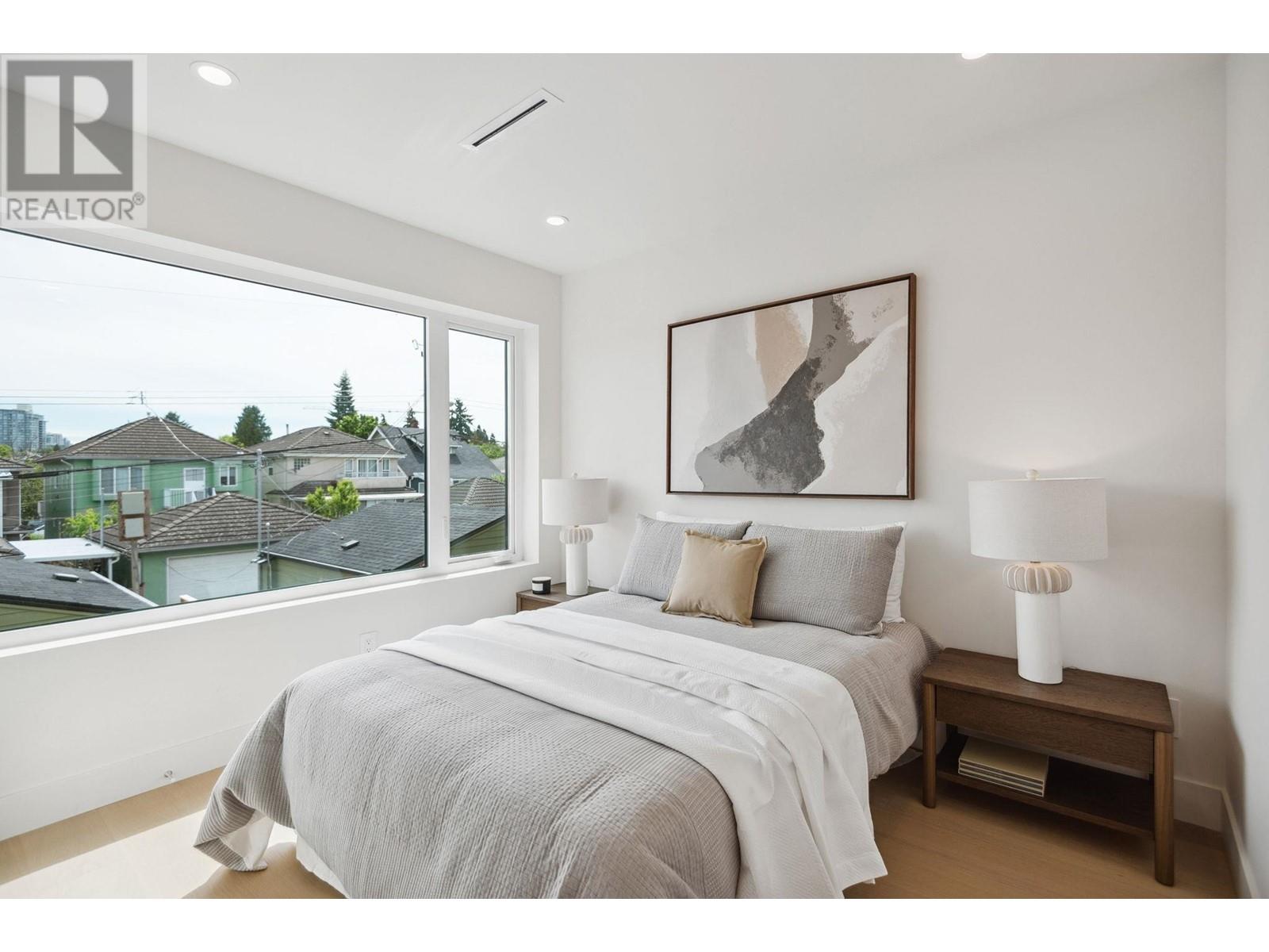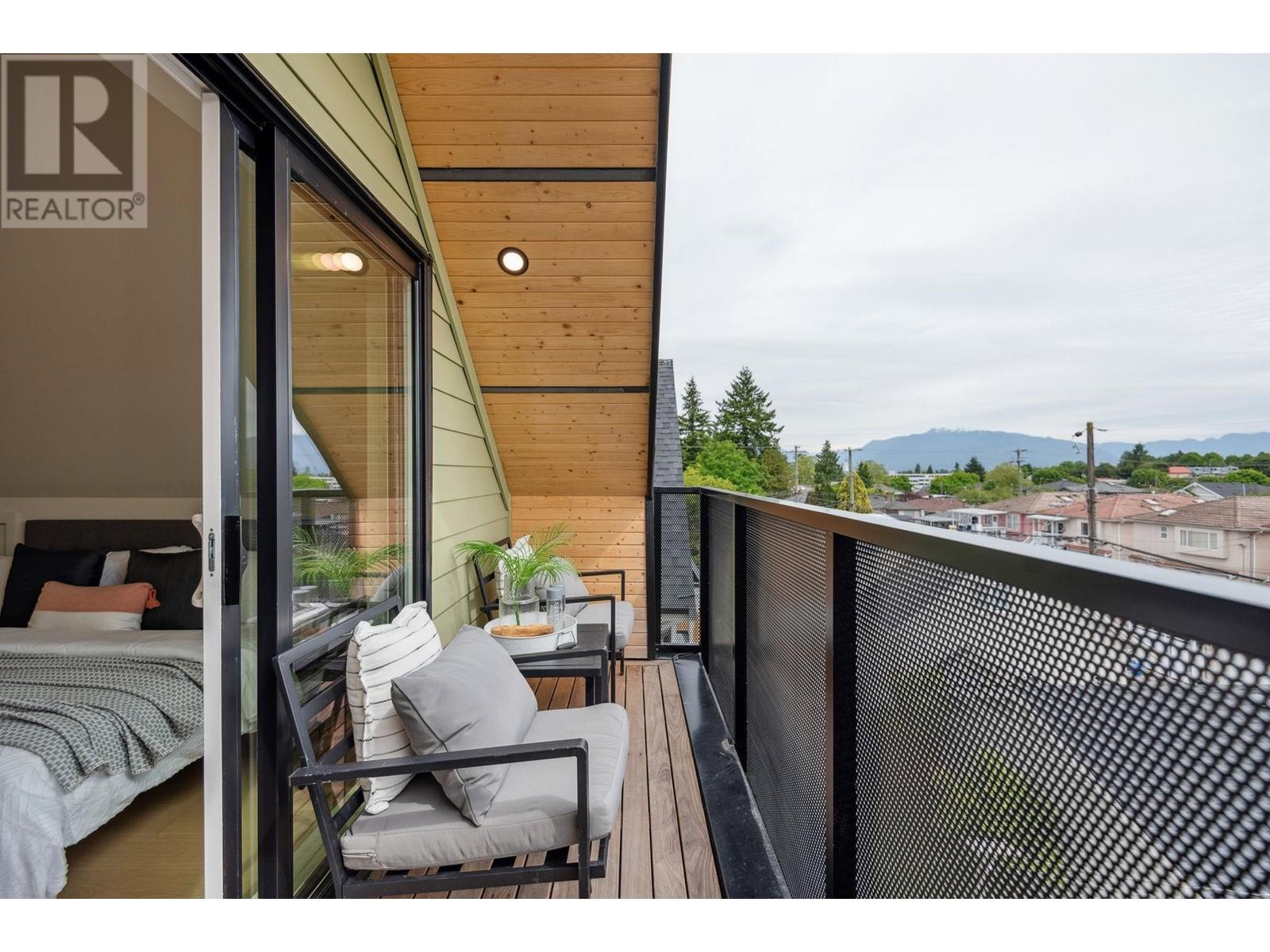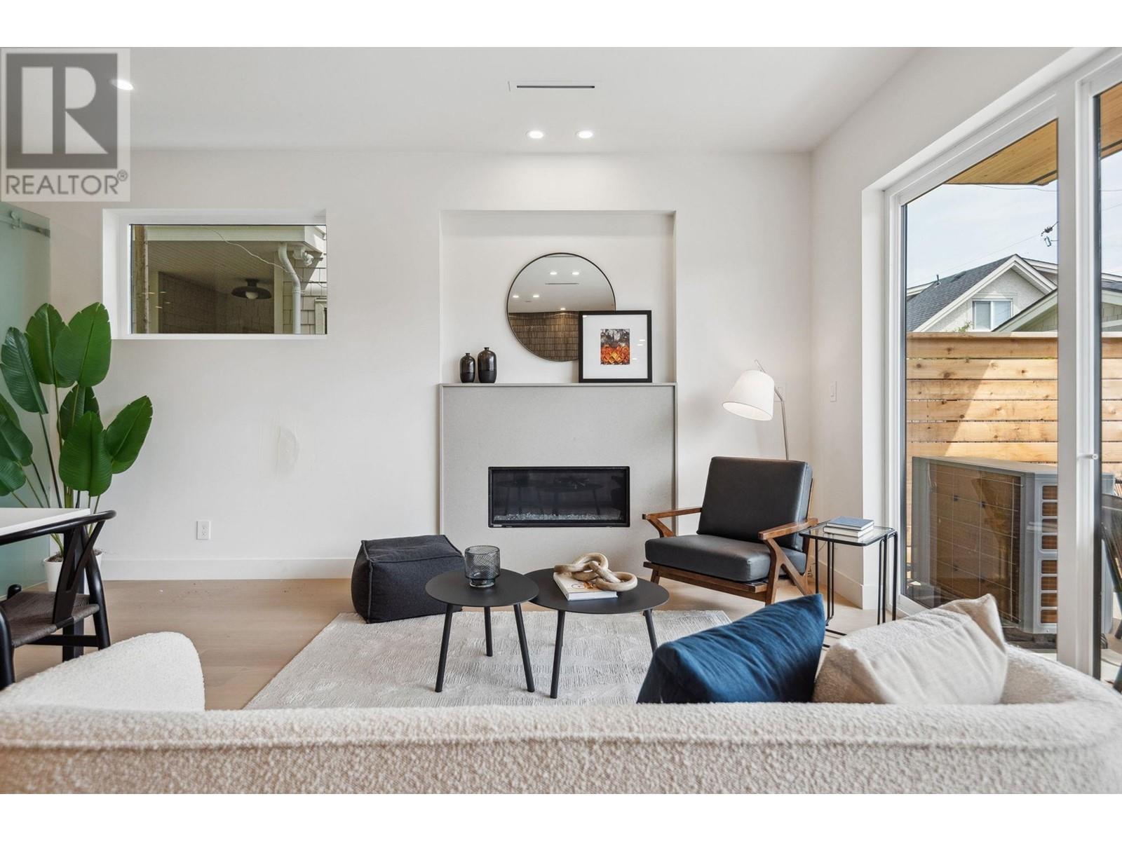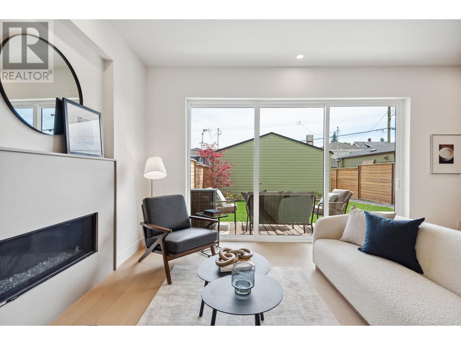 Mizan Developments & Architrix Design Studio present this stylish 1/2 duplex home in the desirable Kensington/Cedar Cottage neighbourhood of East Van. Each home offers 3 beds+Den/3.5 baths, an open-concept main floor, and luxurious earth-tone finishes, including quartz countertops, brushed oak flooring, and a gas fireplace. Kitchens feature large islands, Fisher Paykel appliances, and custom cabinetry, leading to spacious at grade outdoor patio and fully fenced private yard. The primary bedroom has a spa-like ensuite and large walk-through closet. Spacious upper level bedroom with sliding doors leading to the deck to enjoy the view. Detached garage with EV capable parking. Schools:Lord Selkirk Elem & Gladstone Secondary. Open House Sat/Sun June 14th/15th 2-4pm (id:62103)