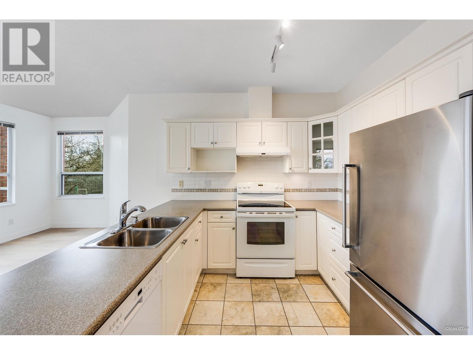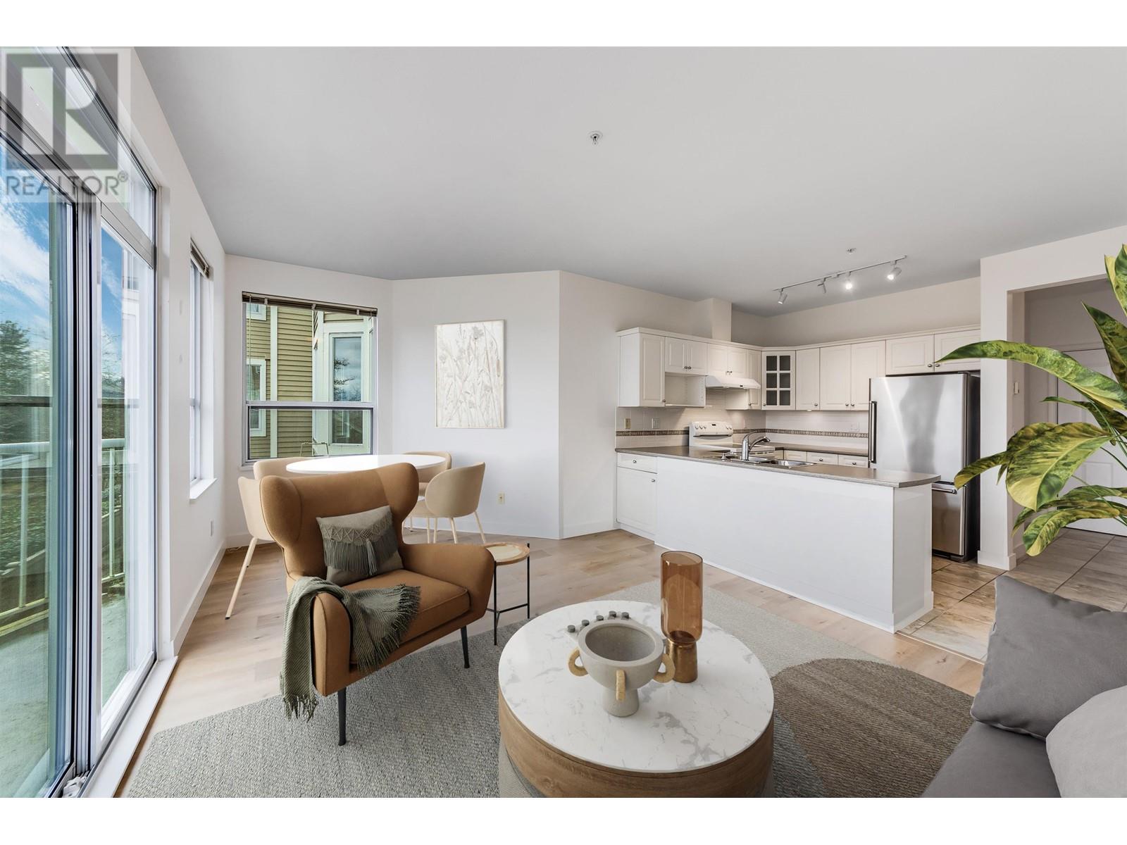 The Belvedere in Oaklands. Impeccably maintained 2 BDRM, 2 Bath condo with 1208 sqft of spacious living. This bright unit is Move-in ready, & has a cozy Lvg/Dng room combo w/gas FP & private covered balcony. Lg open kitchen overlooking a family room w/stunning Mnt views, loads of cupboards & counter space & newer appliances. 2nd balcony off the family rm. Big Mstr Bdrm w/walk-in closet & huge Ensuite w/dbl sinks. 2nd bdrm, 4pc bath & front load W&D. Upgrades incl. floors, appliances, W&D, quartz bath counter. Amenities incl. gym/rcrm, bike rm, visitor pkg, EV charging, 1 pkg + storage locker. Steps to Metrotown, transit, bus, parks, best schools & loads of trails @ Deer Lake. Photos w/furniture virtually staged. 2 Cats allowed, NO dogs. Quick possession. (id:62103)