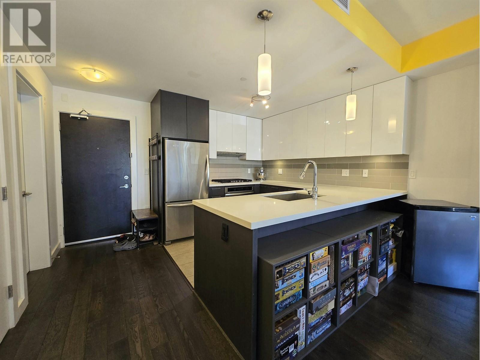 RIVA – a contemporary west coast mid-rise development close to both nature and Richmond’s city centre! This thoughtfully designed air-conditioned 2 BED + DEN home combines a warm, inviting atmosphere with ample space – ideal for entertaining! Prepare meals in a roomy kitchen featuring a 6-piece premium KitchenAid appliance package, quartz countertops, flat panel cabinetry with soft close and under cabinet lightings. Retreat into your 5-piece primary ensuite – with double vanity sinks, a standing shower, a tub for your enjoyment, and heated floors. Extras are 9′ ceilings, engineered oak hardwood flooring, large format tiling in the bathrooms, and ceiling lights throughout. RIVA amenities includes a fitness centre, indoor pool, hot tub, sauna & steam room and concierge. A must see! (id:62103)