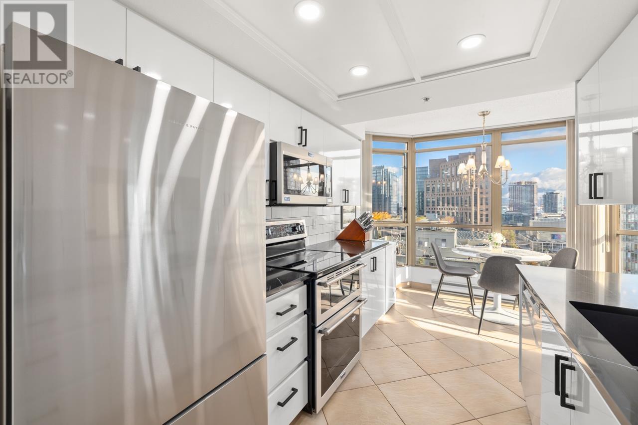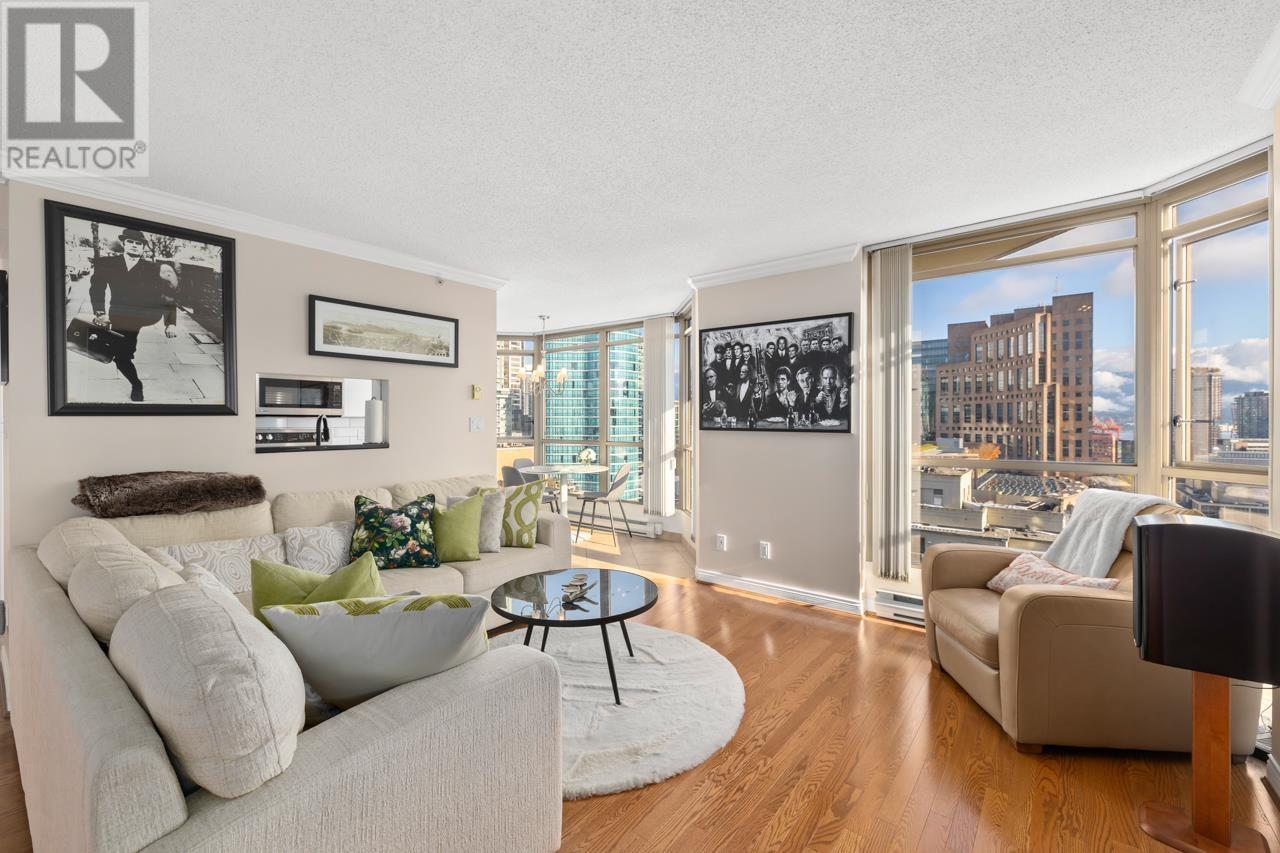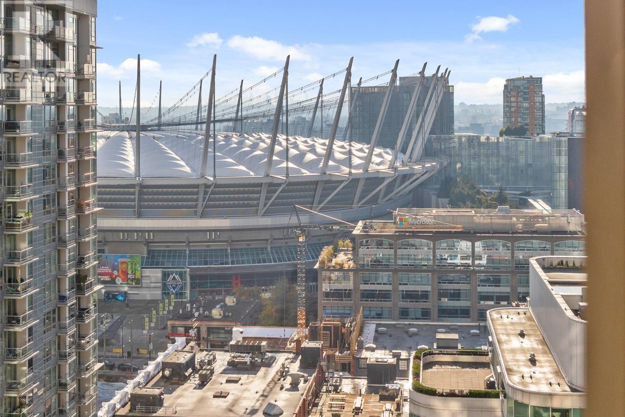 Check out this IMMACULATE, SUBSTANIALLY UPDATED, CORNER UNITat Jardines Lookout by Bosa. Features 2 big bedrooms, 2 full baths, den, 1,244 s.f on the 23rd floor & breathtaking panoramic views from all windows. New paint, appliances, counters, carpet & gorgeous honey oak hardwood floors. Great layout & a perfect space for entertaining while you enjoy the stunning Vancouver skyline with floor-to-ceiling windows. Bring your full-sized furniture and enjoy the vibrant downtown lifestyle. Great location: short walk to Rogers Centre, BC Place, Vancouver Library, Skytrain and some of the best restaurants and cafes in Canada. Easy to show, flexible possession, you won’t be disappointed! Open House Sunday, June 15th, 12-130pm (id:62103)