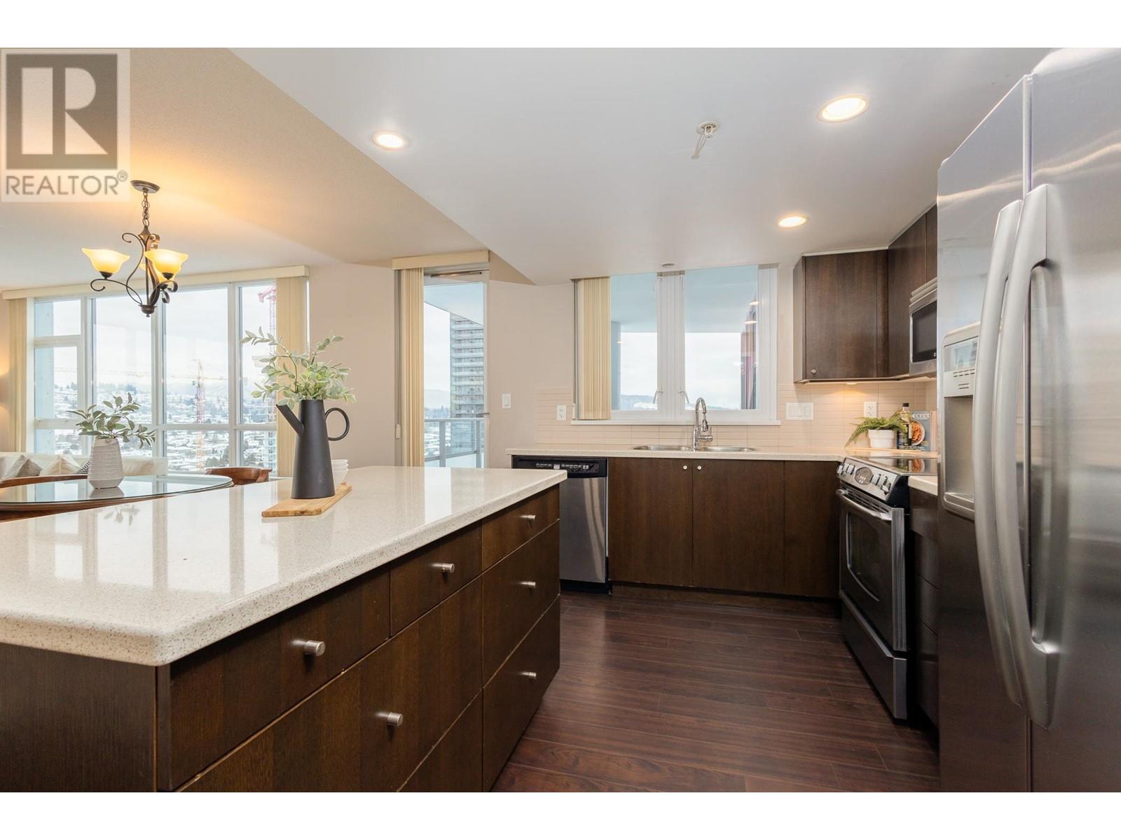 This 1,143 sq.ft. home on the 23rd floor offers stunning northeast mountain views and a thoughtful layout with 2 bedrooms on opposite ends for added privacy. Features 2 bathrooms, a versatile den, and an open-concept living space filled with natural light. Comes with 2 side-by-side parking spots and 1 locker for extra storage. Located steps from Brentwood Town Centre & SkyTrain, offering unbeatable convenience. Built by Bosa, this home is perfect for those seeking luxury, comfort, and accessibility. (id:62103)