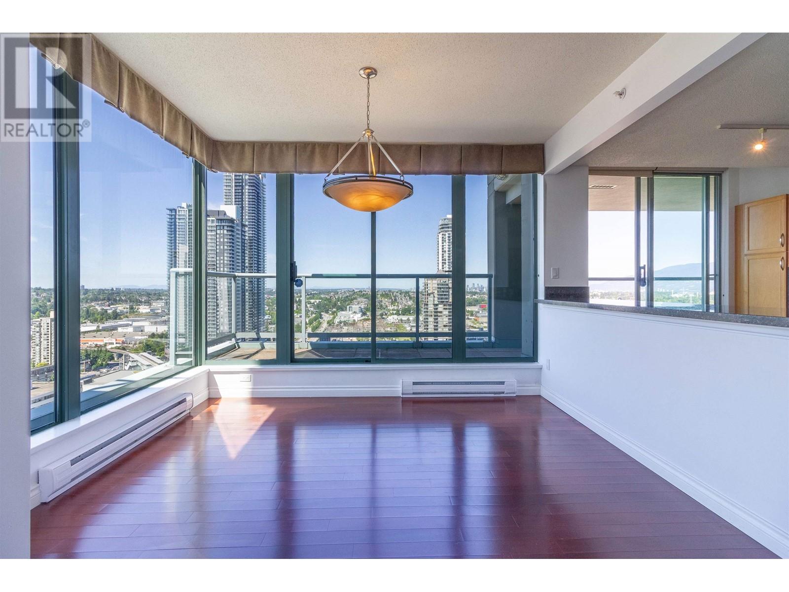 Welcome to this penthouse-style 3-bed, 2-bath suite in Buchanan West by BOSA. Offering a generous 1590sf of open-concept living, this corner unit boasts wall-to-wall windows and two oversized balconies, capturing panoramic views from Southeast cityscape to Northwest mountains – views from every room! Spacious layout includes an open kitchen perfect for entertaining, along with 2 side-by-side parking stalls and one storage locker. Step outside and enjoy unmatched convenience-Amazing Brentwood, Skytrain, Whole Foods, and countless dining and retail options are just steps away. Save-On-Foods is right downstairs, with Costco only a short drive away. Located in the Kitchener Elementary and Alpha Secondary catchment, luxury living in one of Burnaby’s most connected and vibrant communities. (id:62103)