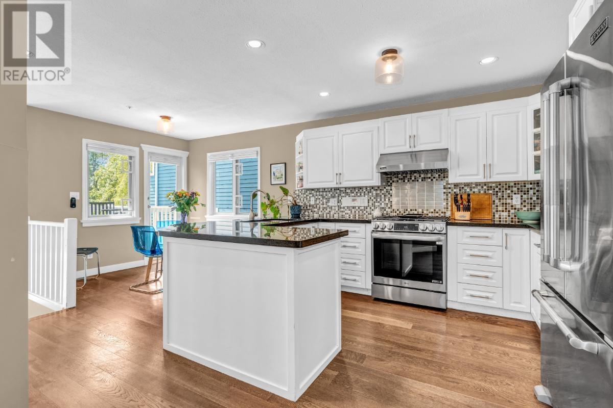 A rare FREEHOLD gem! This stunning 4-bed, 3.5-bath, 2,165sq.ft. home on a peaceful dead-end street, offers views of the Fraser River & Riverfront Park. A perfect family home w/3 spacious beds up (all w/A/C) vaulted ceilings in Primary & 3rd bed, as well as a spacious 4th bed down. Primary has river views & a luxurious ensuite w/free-standing deep soaker tub & rain shower. Custom closets in all beds, mud room & foyer. Cozy up to 2 gas fireplace in the living & family rooms. Large kitchen w/gas range & eating area. Private back patio w/Hot Tub & gas line for BBQ/Firepit. Upgraded H/W on demand & heat pump. Single detached garage + Level 2 EV charging stand. NO STRATA MAINTENANCE FEES! Close to shopping, recreation, waterfront trail, DT, UBC & YVR. Open House Sat & Sun May 24th & 25th 2:00-4:00pm. (id:62103)