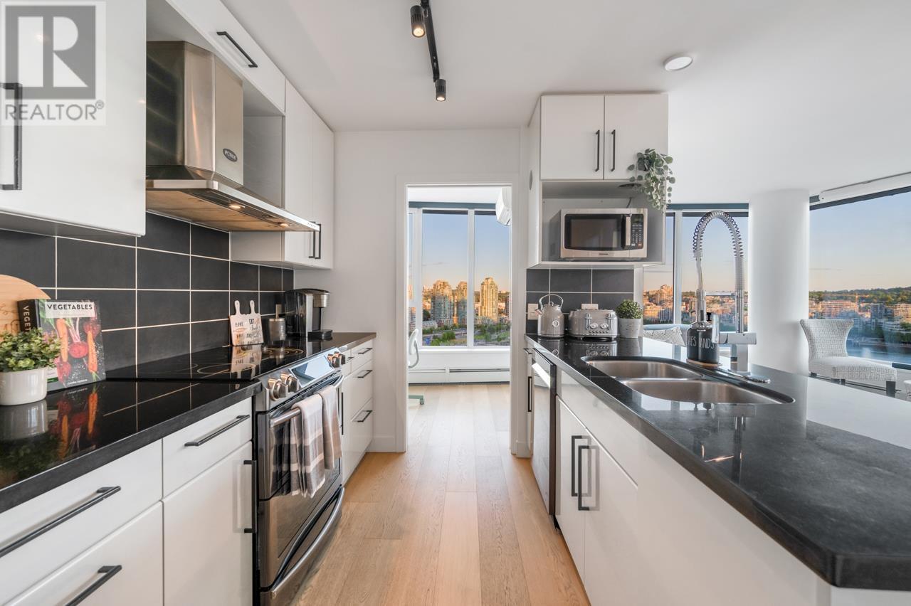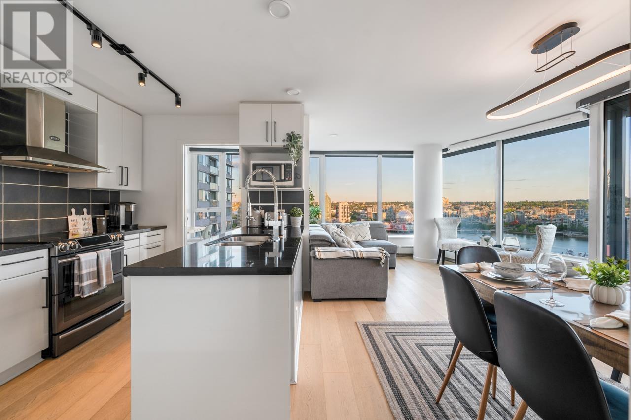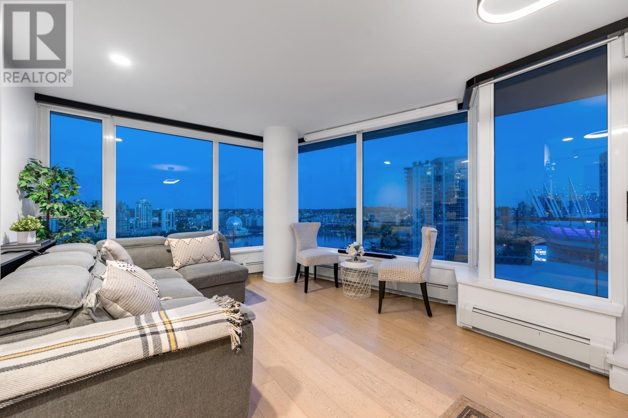 Live the downtown lifestyle just steps from Vancouver´s iconic Seawall. This rare corner unit features 2 balconies, 2 side-by-side parking, 2 lockers, and central A/C (1 of only 6 in the building). Designer upgrades include marble finishes, motorized blinds, engineered flooring, in-wall speaker wiring, and a 95″ projector screen. Airbnb-friendly and perfectly located near Costco, T&T, SkyTrain, and Crosstown Elementary. A must-see unit, handpicked by the building´s architect! (id:62103)