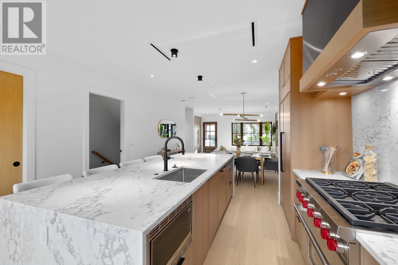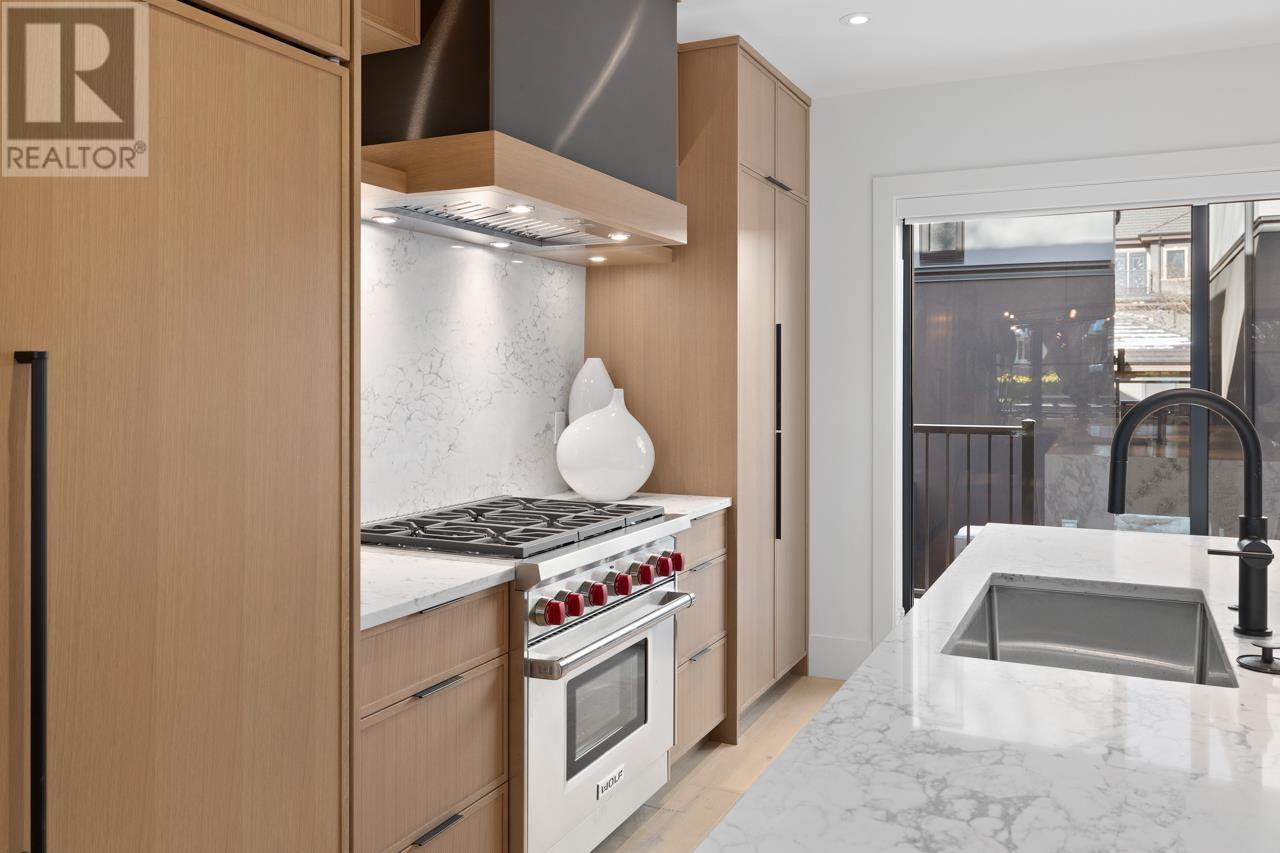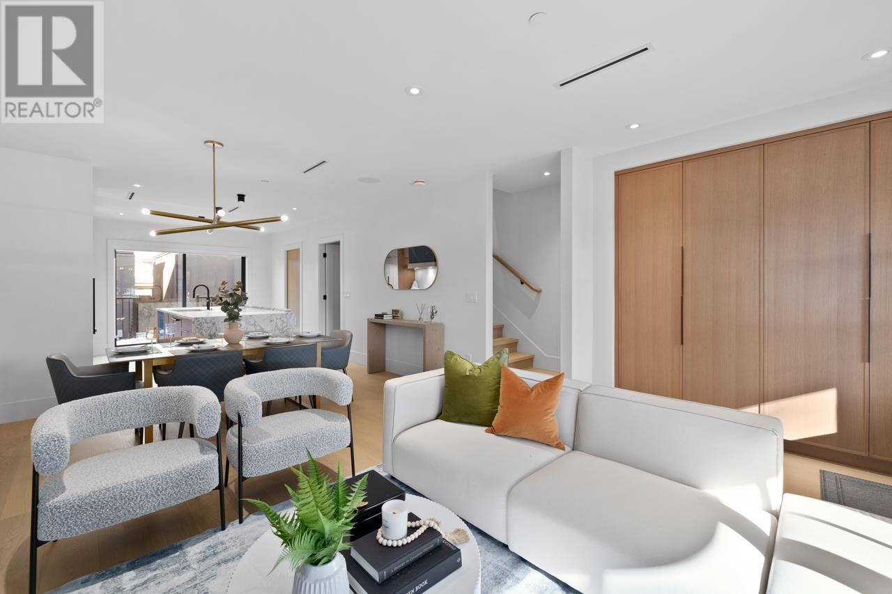 The Heights, an exclusive collection of 5 luxury townhomes offering elegance, functionality, and style in every detail! This 3-bed+Den, 3.5-bath residence spans 3 thoughtfully designed levels. The main floor boasts a spacious living room, a dining area perfect for family gatherings, and a gourmet kitchen with a 4’x10′ island, custom oak cabinetry, integrated Sub-Zero fridge, Wolf 6-burner stove, and a large pantry. The upper level is a family retreat with 3 beds+ a primary suite with hotel-inspired ensuite. The versatile lower level includes a cozy theater/rec room, bedroom/office, and flexible gym space and exterior entry. Enjoy large front and back yards, covered parking, ample storage, and unbeatable walkability to all of Kerrisdale’s amenities. (id:62103)