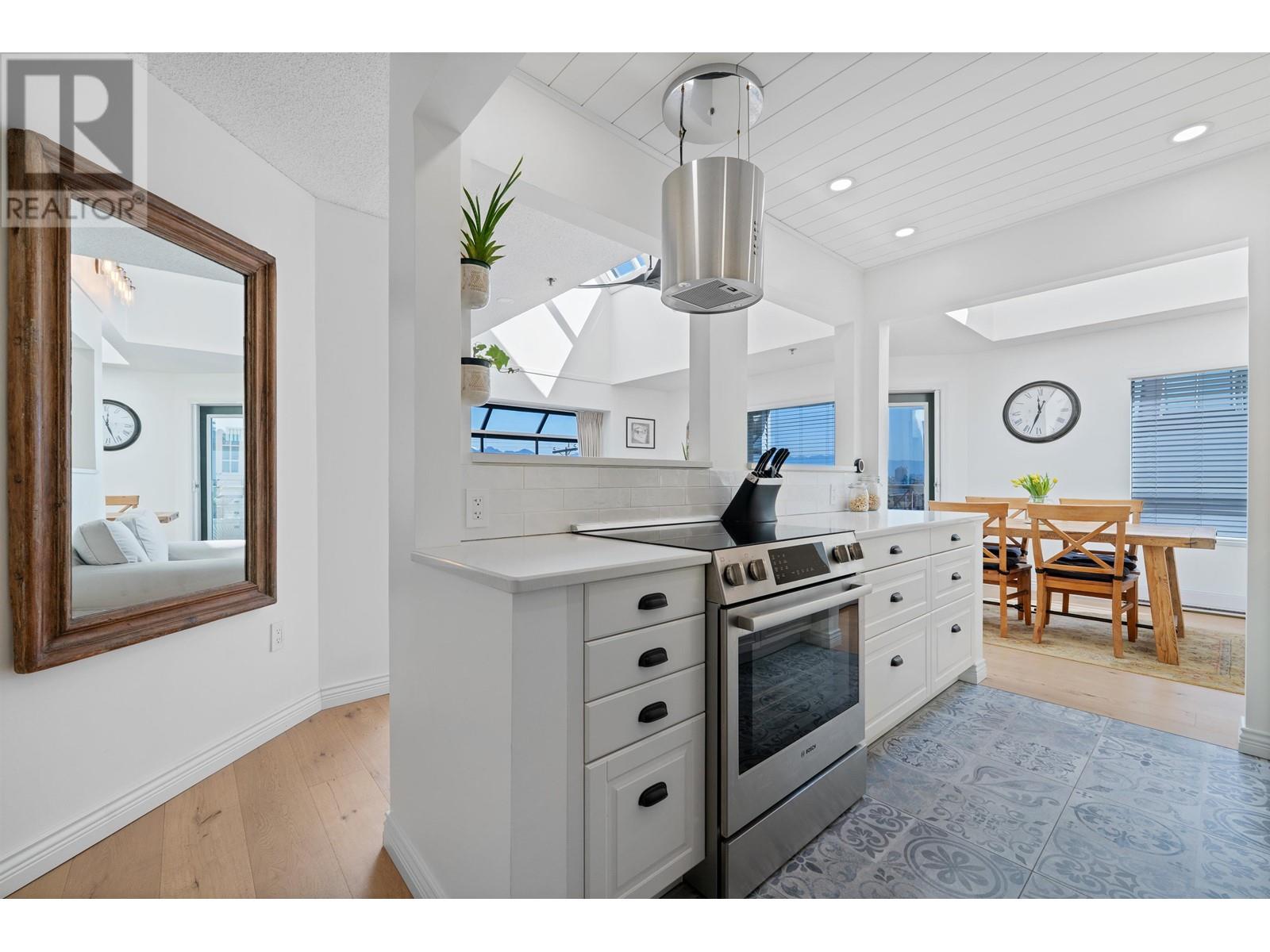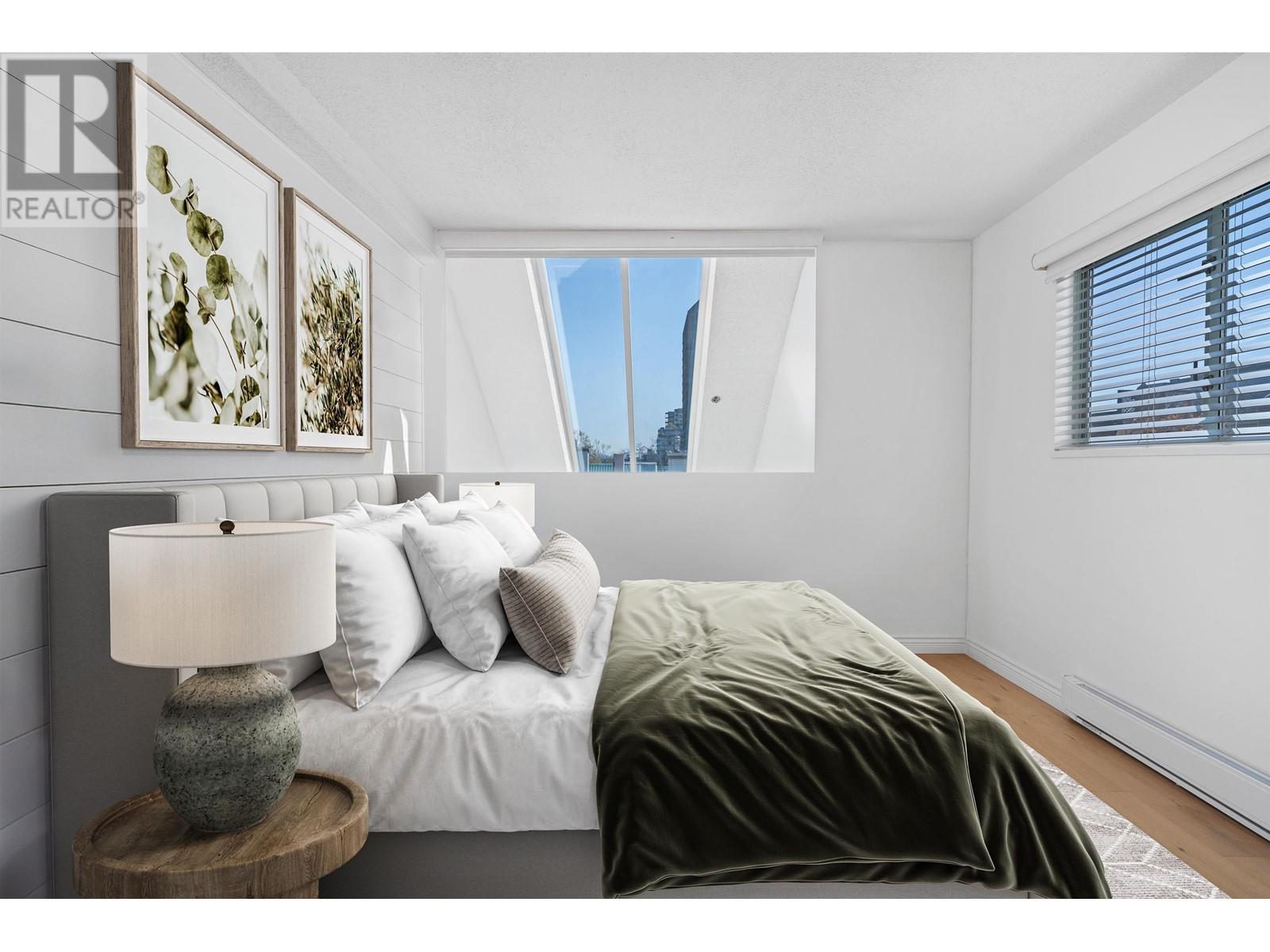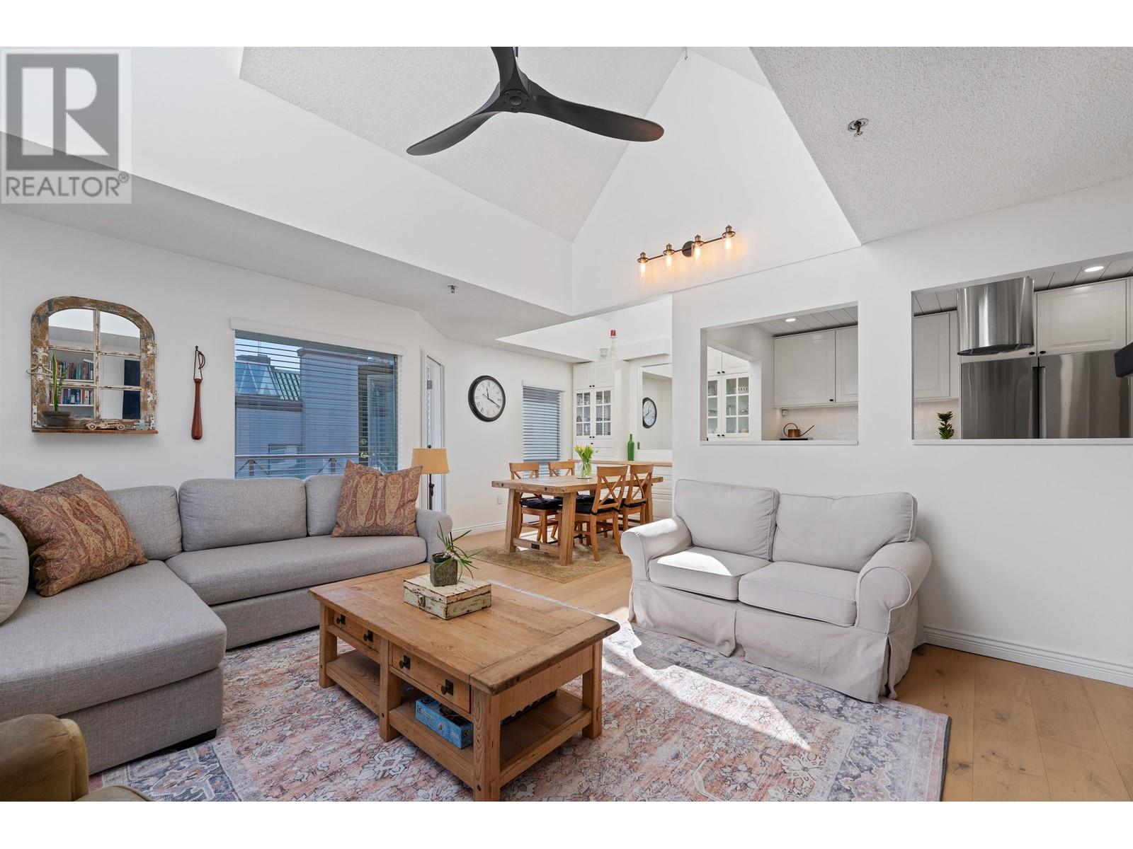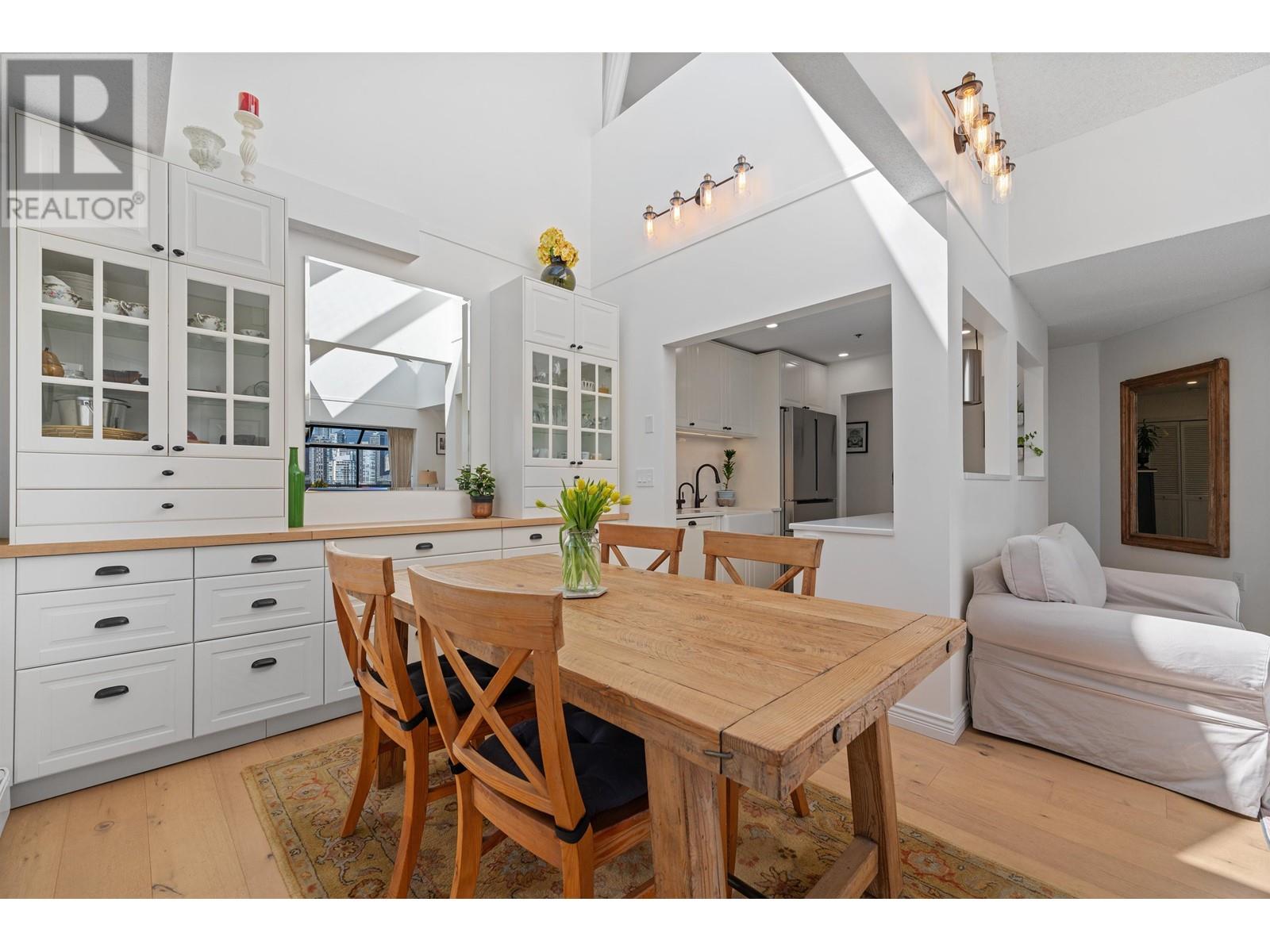 This home will make your heart sing! Only the 2nd time on the market, this rarely available top-floor corner loft-style condo has been completely renovated and offers two thoughtfully designed levels & sweeping NE VIEWS of downtown & the north shore mountains. Soaring 17 foot vaulted ceilings, skylights, and a gas fireplace create a bright, airy feel with fantastic cross-breeze year-round. Bedrooms are on separate floors, including a spacious primary with patio access. Tasteful updates to the kitchen, bathrooms, and H/W flooring enhance style and function. Bosch appliances, blackout blinds, California Closets, and bonus crawl space add everyday ease. Includes in-suite laundry, 2 parking, locker, and more- all just steps to the future Oak-VGH Broadway Station, Seawall and the best cafés! (id:62103)