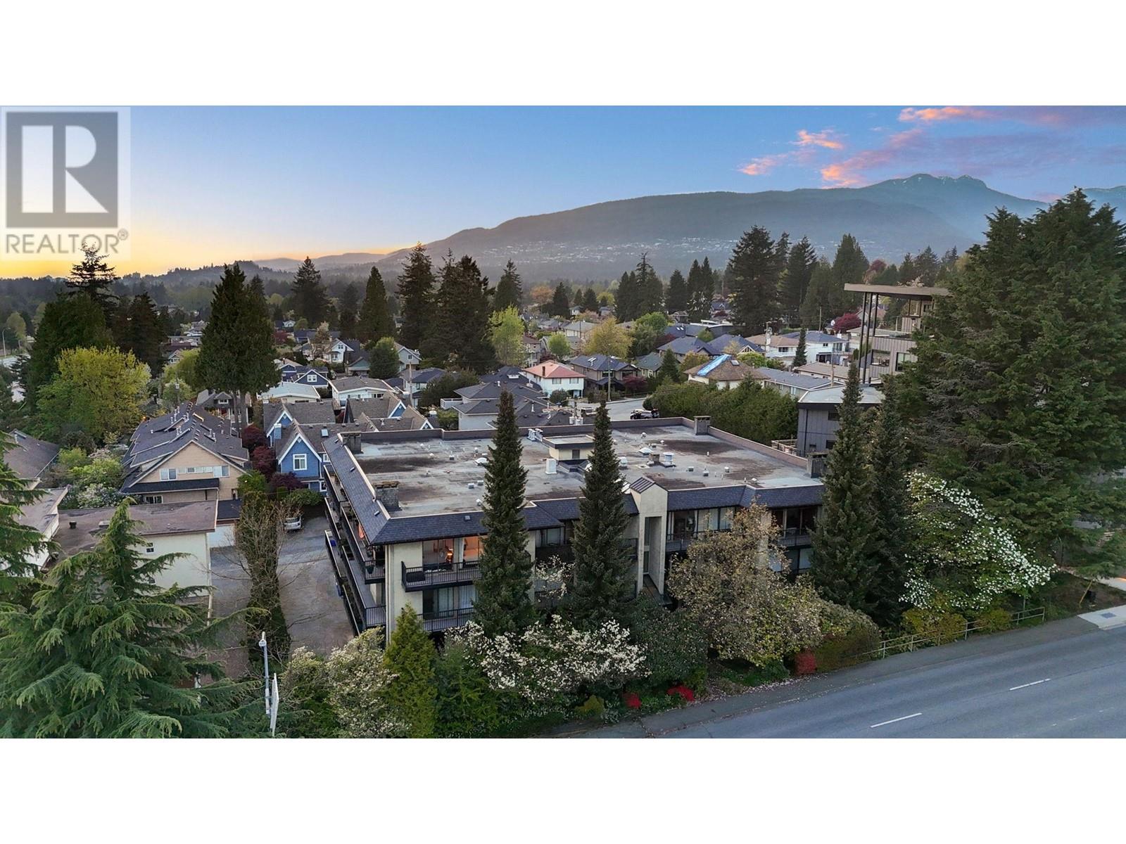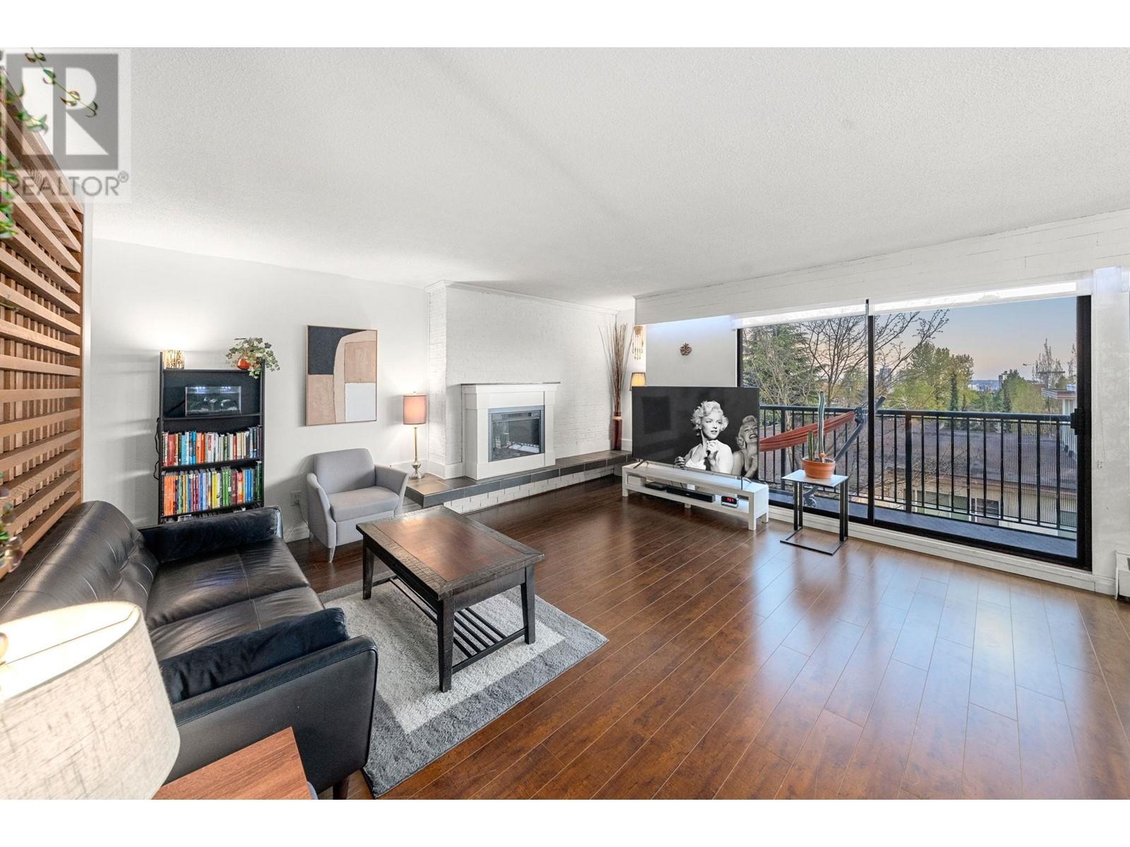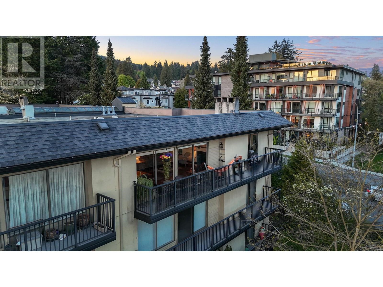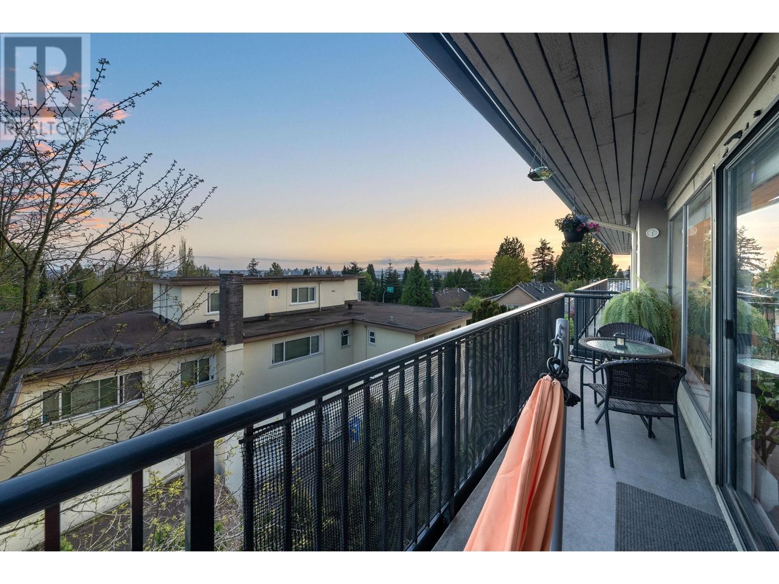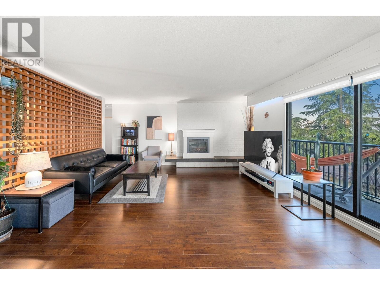 Stunning penthouse at the top of Lonsdale with breathtaking views of the Vancouver skyline! This sun-drenched, south-facing corner unit offers 1,147 sqft of beautifully renovated space, featuring 2 large bedrooms & 2 bathrooms. The primary bedroom includes a private ensuite. Enjoy a very spacious living room with a cozy fireplace and stunning views of the city and ocean from the wraparound balcony, perfect for soaking in the scenery. Updated kitchen with stainless steel appliances. House sized laundry room, 1 parking space, and a storage locker in a very well-maintained Upper Lonsdale building. A rare opportunity to own a bright and airy home in a prime location with easy access to the highway and half a block away from the new Harry Jerome Community Recreation Centre! (id:62103)