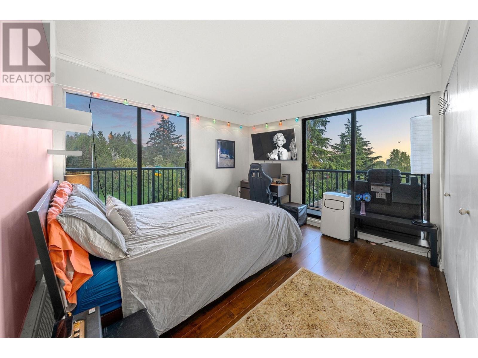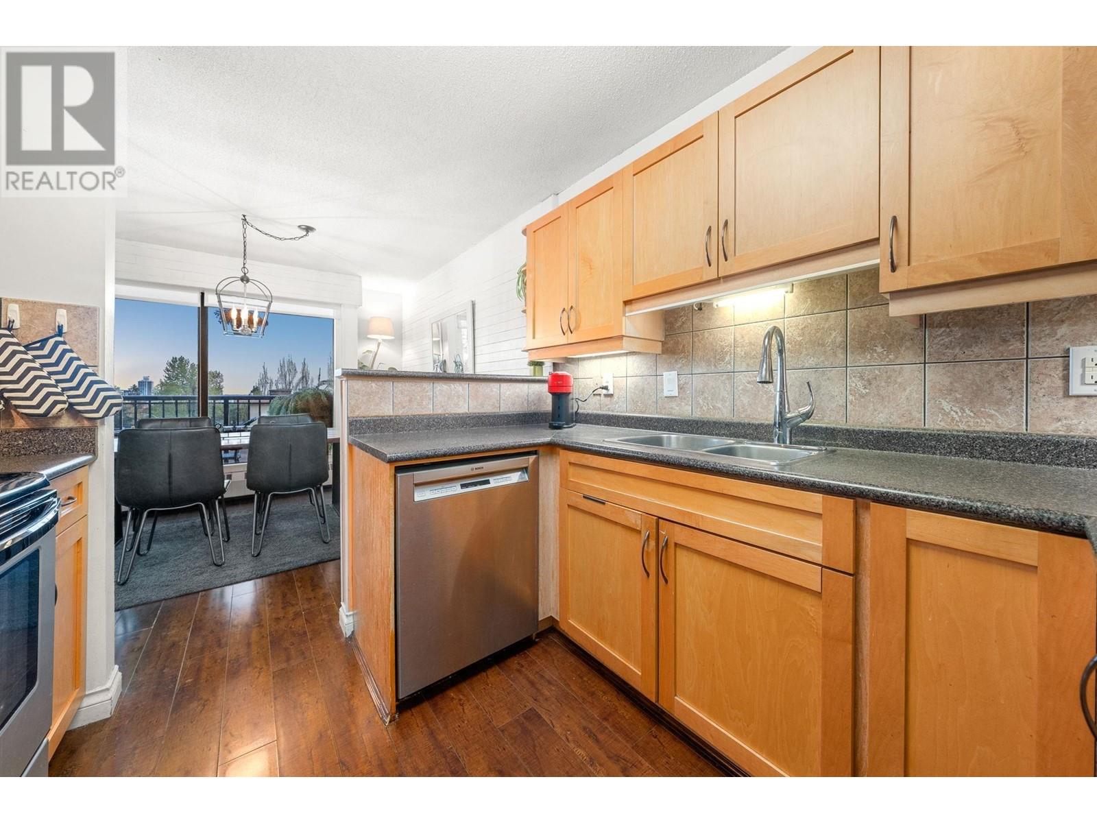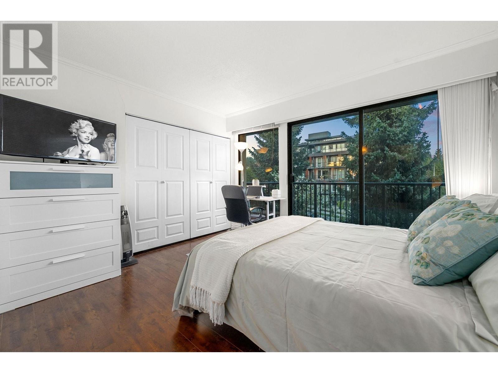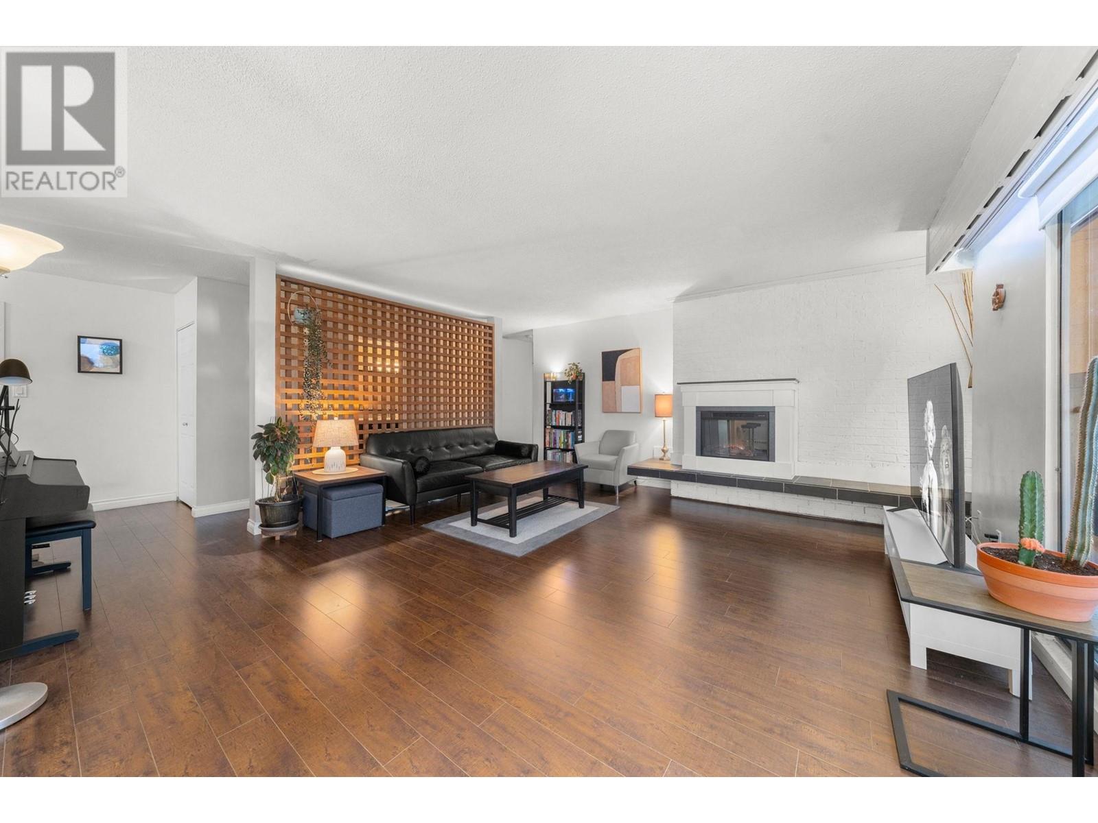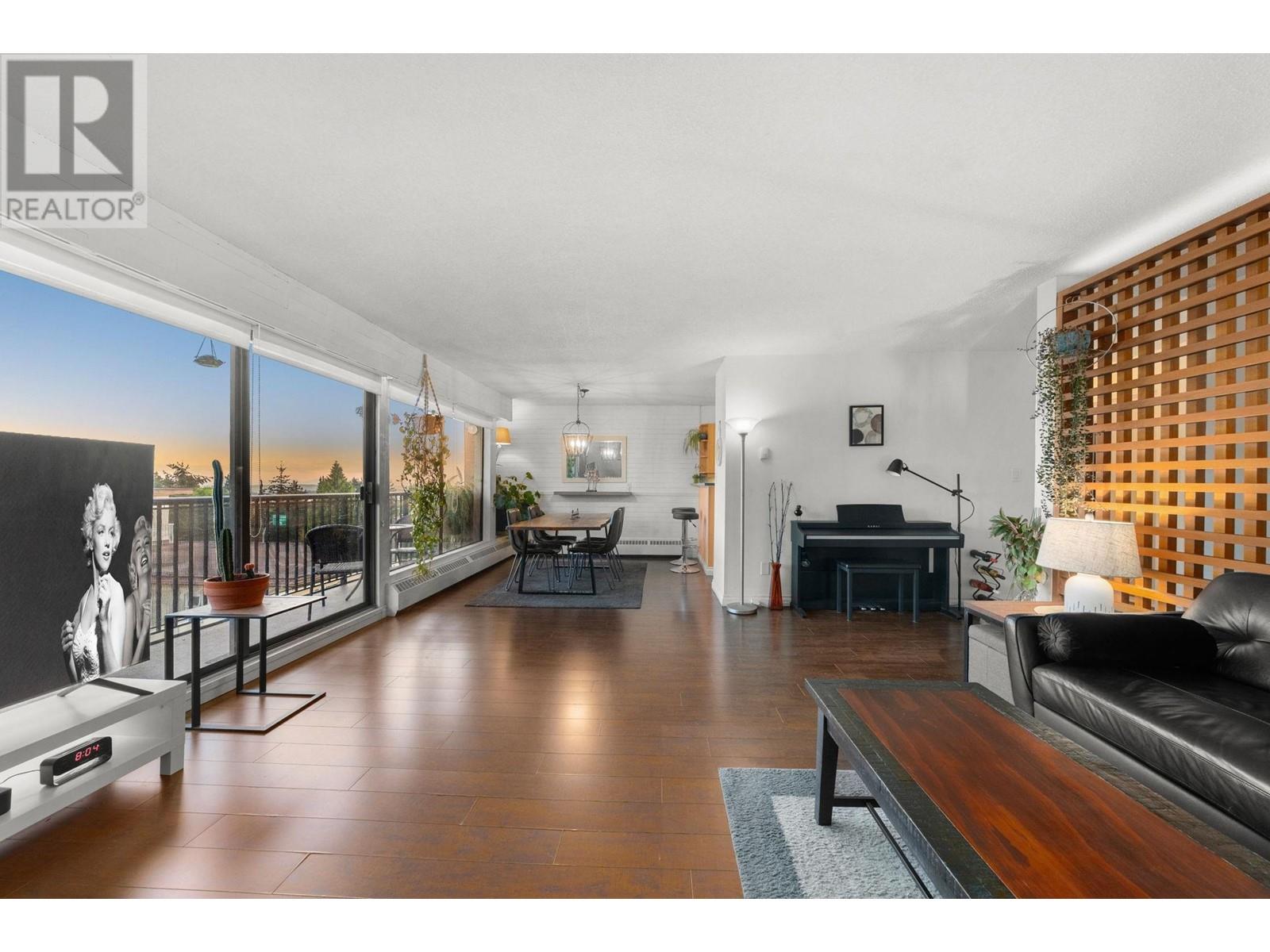 Stunning penthouse at the top of Lonsdale with breathtaking views of the Vancouver skyline! This sun-drenched, south-facing corner unit offers 1,147 sqft of beautifully renovated space, featuring 2 large bedrooms & 2 bathrooms. The primary bedroom includes a private ensuite. Enjoy a very spacious living room with a cozy fireplace and stunning views of the city and ocean from the wraparound balcony, perfect for soaking in the scenery. Updated kitchen with stainless steel appliances. House sized laundry room, 1 parking space, and a storage locker in a very well-maintained Upper Lonsdale building. A rare opportunity to own a bright and airy home in a prime location with easy access to the highway and half a block away from the new Harry Jerome Community Recreation Centre! (id:62103)