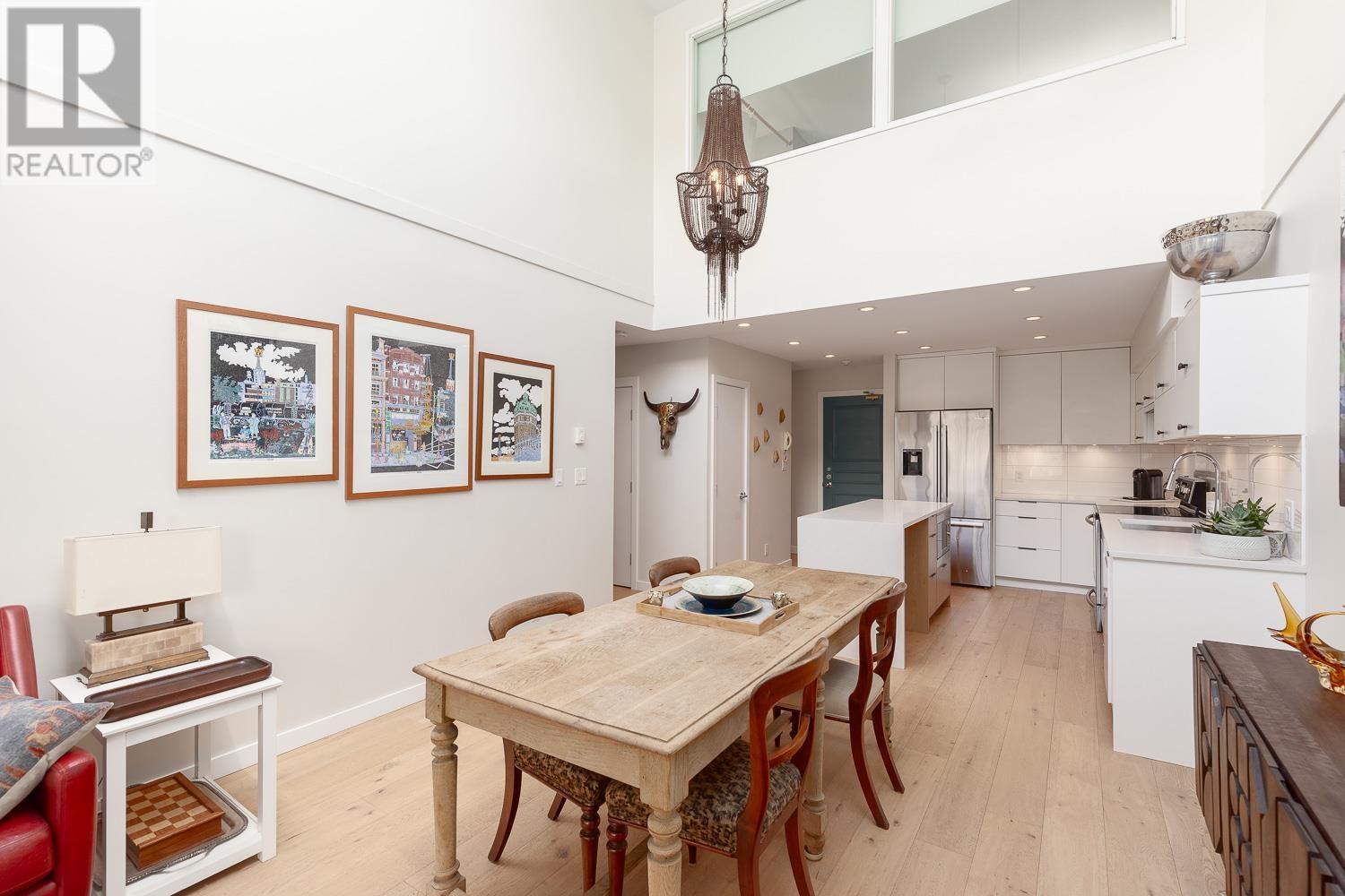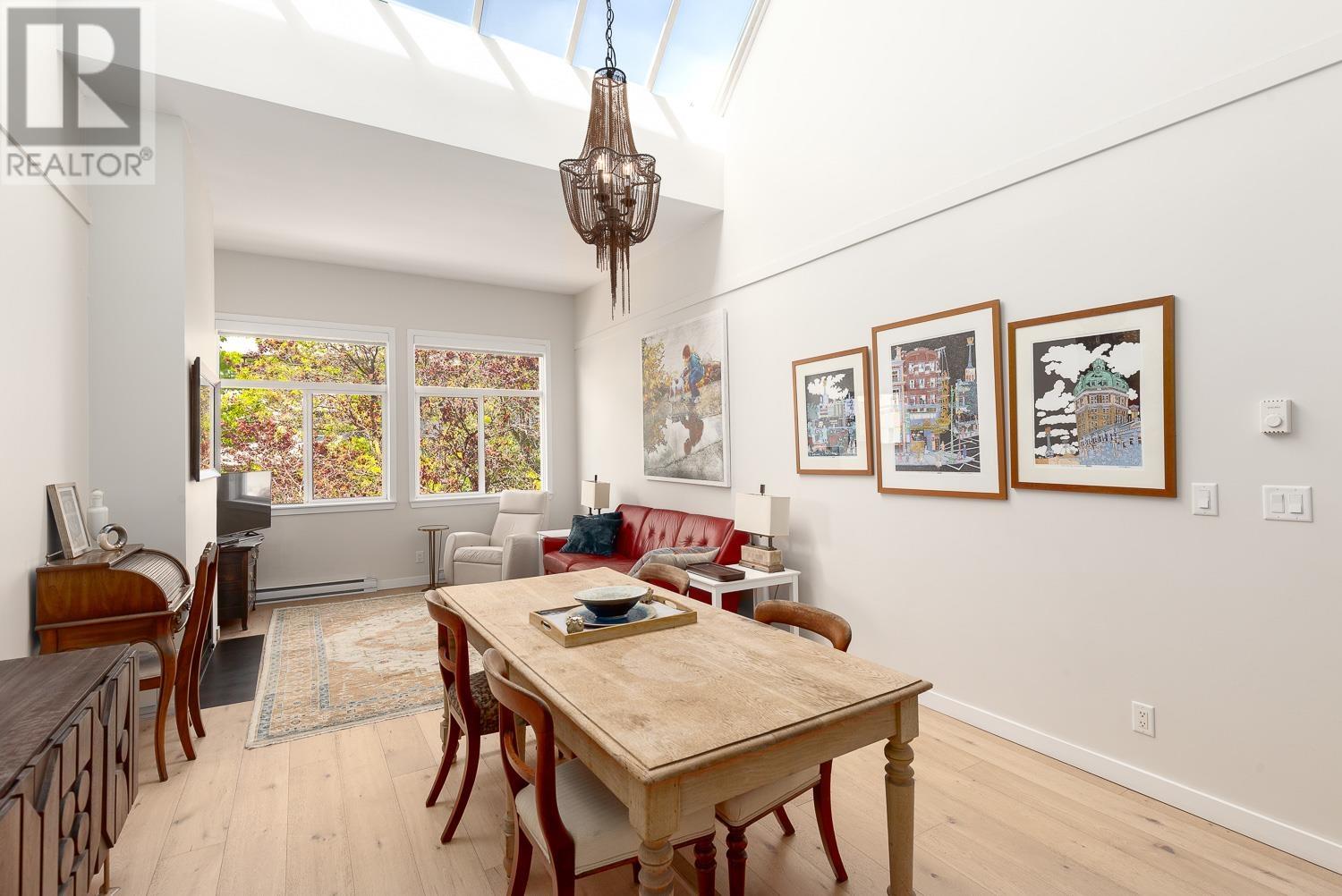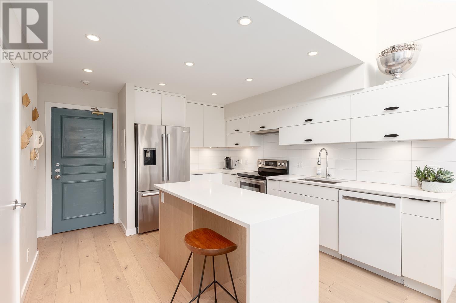 This beautifully renovated 2-bedroom, 2-bathroom home offers over 1,100 sq. ft. of modern, open living space filled with natural light. Featuring vaulted ceilings with skylights, white oak floors, gas fireplace and stylish kitchen with sleek cabinetry, quartz counters and island; the layout is both functional and inviting. The bedrooms are thoughtfully separated, ideal for guests or older children. Enjoy your own private ROOFTOP DECK! Perfect for entertaining or relaxing. Fully updated with permits, this home is an oasis in the City in a well-maintained, fully rain-screened building in the heart of False Creek, just steps to the seawall, Olympic Village, and Granville Island- all the best Vancouver has to offer. (id:62103)