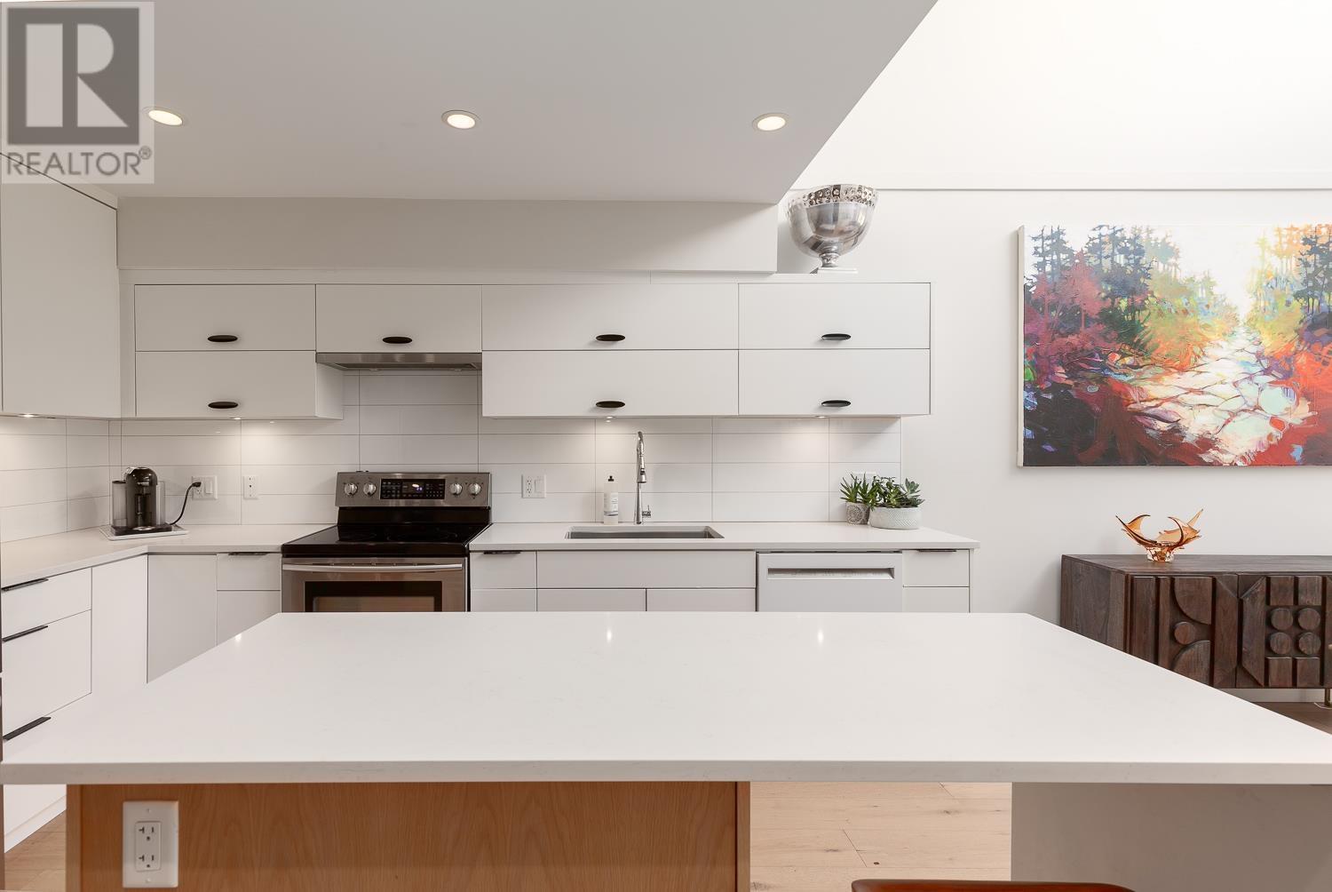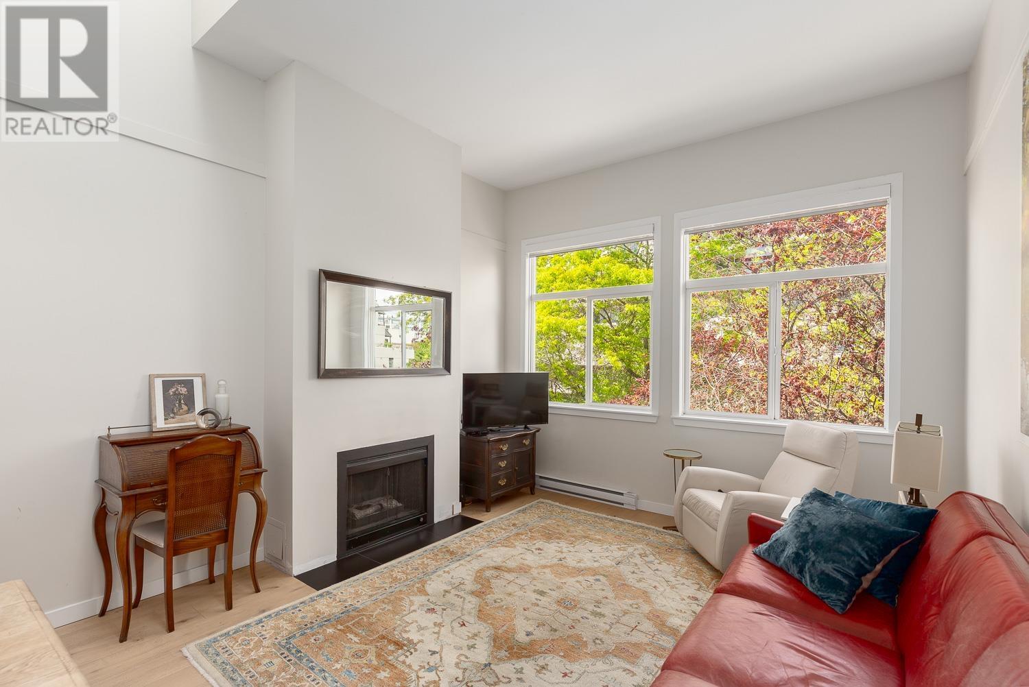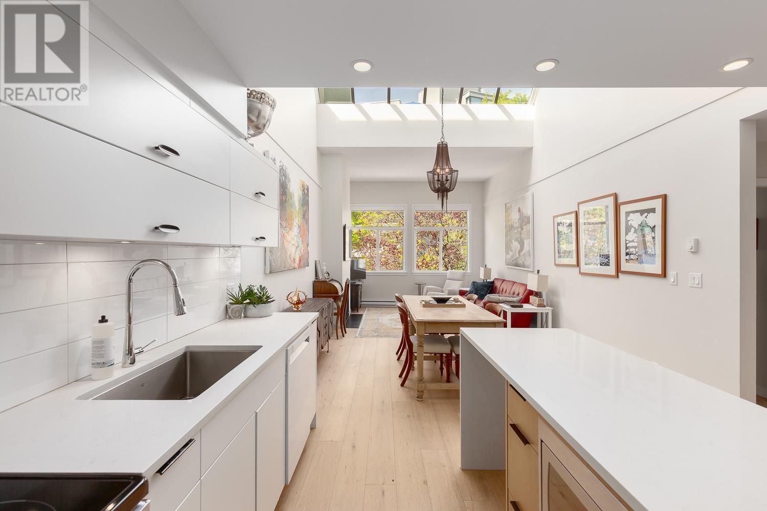 This beautifully renovated 2-bedroom, 2-bathroom home offers over 1,100 sq. ft. of modern, open living space filled with natural light. Featuring vaulted ceilings with skylights, white oak floors, gas fireplace and stylish kitchen with sleek cabinetry, quartz counters and island; the layout is both functional and inviting. The bedrooms are thoughtfully separated, ideal for guests or older children. Enjoy your own private ROOFTOP DECK! Perfect for entertaining or relaxing. Fully updated with permits, this home is an oasis in the City in a well-maintained, fully rain-screened building in the heart of False Creek, just steps to the seawall, Olympic Village, and Granville Island- all the best Vancouver has to offer. (id:62103)