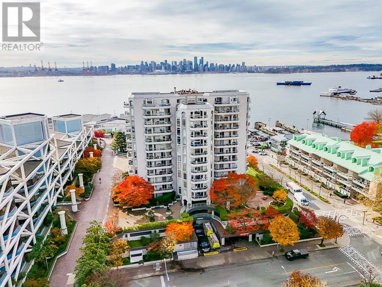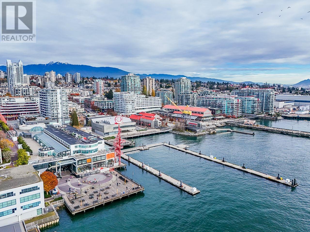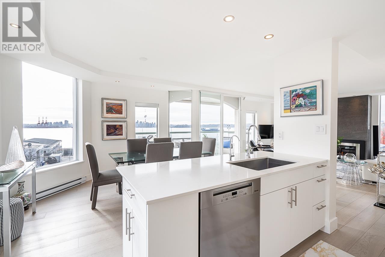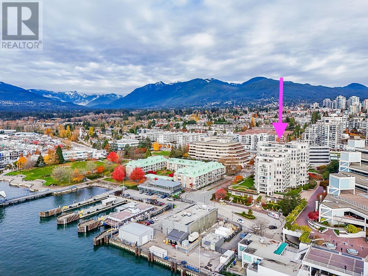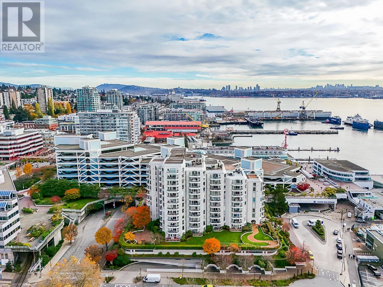 WATERFRONT LUXURY: Unique front unit offering UNOBSTRUCTED WATER & CITY VIEWS + no side neighbours . Fully renovated in 2018 ($200K+ spent) this bright, open 2-bed, 2-bath home boasts luxury finishes (hardwood floors, Italian cabinets, Miele appliances, California closets, remote window coverings + more!) 2 parking spaces + 2 XL lockers included. Exceptional amenities: resident caretaker, EV-charging, gym, sauna, workshop, bike rooms, meeting room, library + viewing deck. This Bosa-built concrete building is meticulously maintained with recent upgrades incl: exterior painting + sealing, re-piping, roof updates & refreshed common areas. Steps away from everything: Sea Bus terminal, Lonsdale Quay, groceries, banks, dining & more. An unbeatable combination of tranquility + convenience! (id:62103)