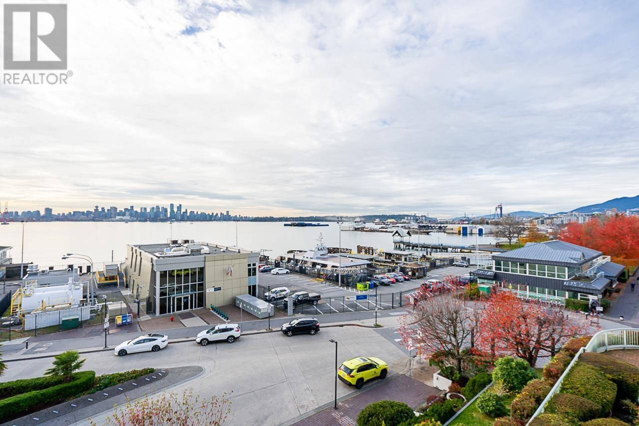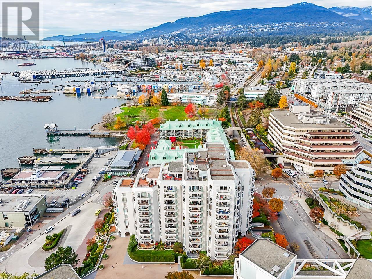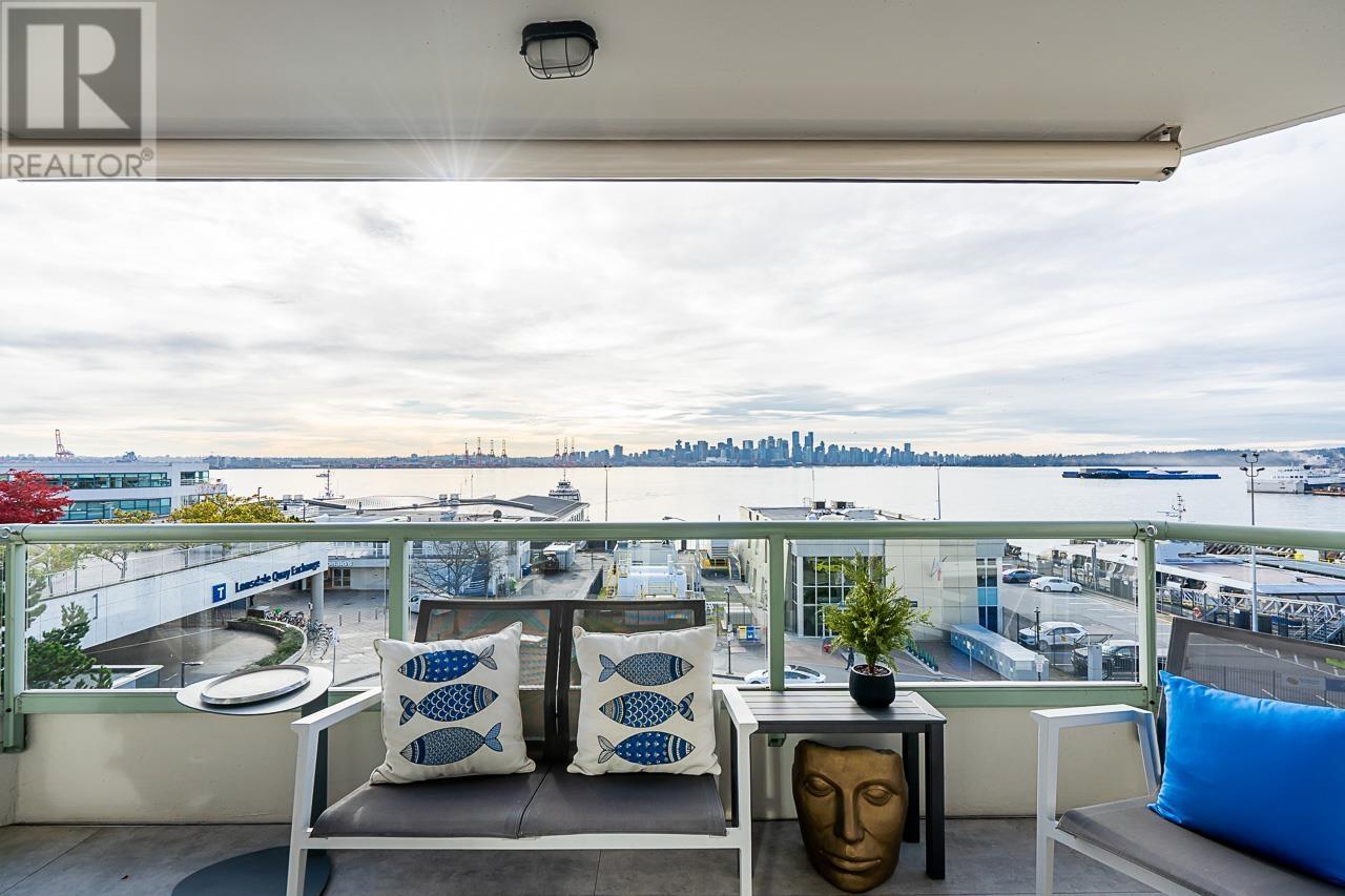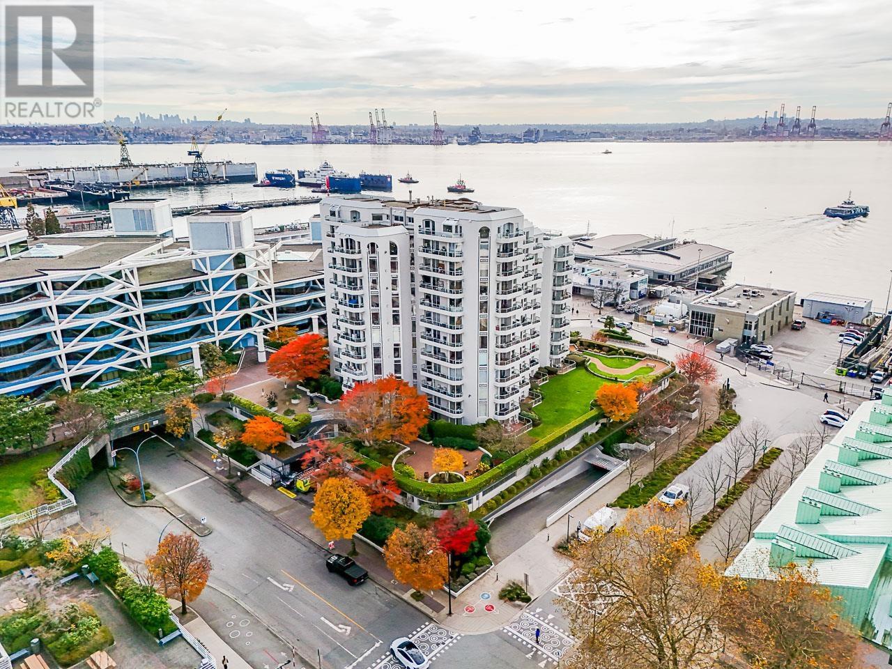 WATERFRONT LUXURY: Unique front unit offering UNOBSTRUCTED WATER & CITY VIEWS + no side neighbours . Fully renovated in 2018 ($200K+ spent) this bright, open 2-bed, 2-bath home boasts luxury finishes (hardwood floors, Italian cabinets, Miele appliances, California closets, remote window coverings + more!) 2 parking spaces + 2 XL lockers included. Exceptional amenities: resident caretaker, EV-charging, gym, sauna, workshop, bike rooms, meeting room, library + viewing deck. This Bosa-built concrete building is meticulously maintained with recent upgrades incl: exterior painting + sealing, re-piping, roof updates & refreshed common areas. Steps away from everything: Sea Bus terminal, Lonsdale Quay, groceries, banks, dining & more. An unbeatable combination of tranquility + convenience! (id:62103)