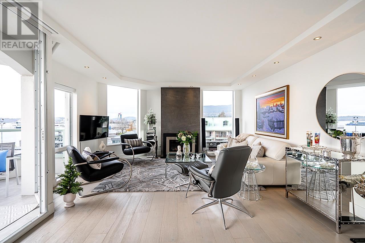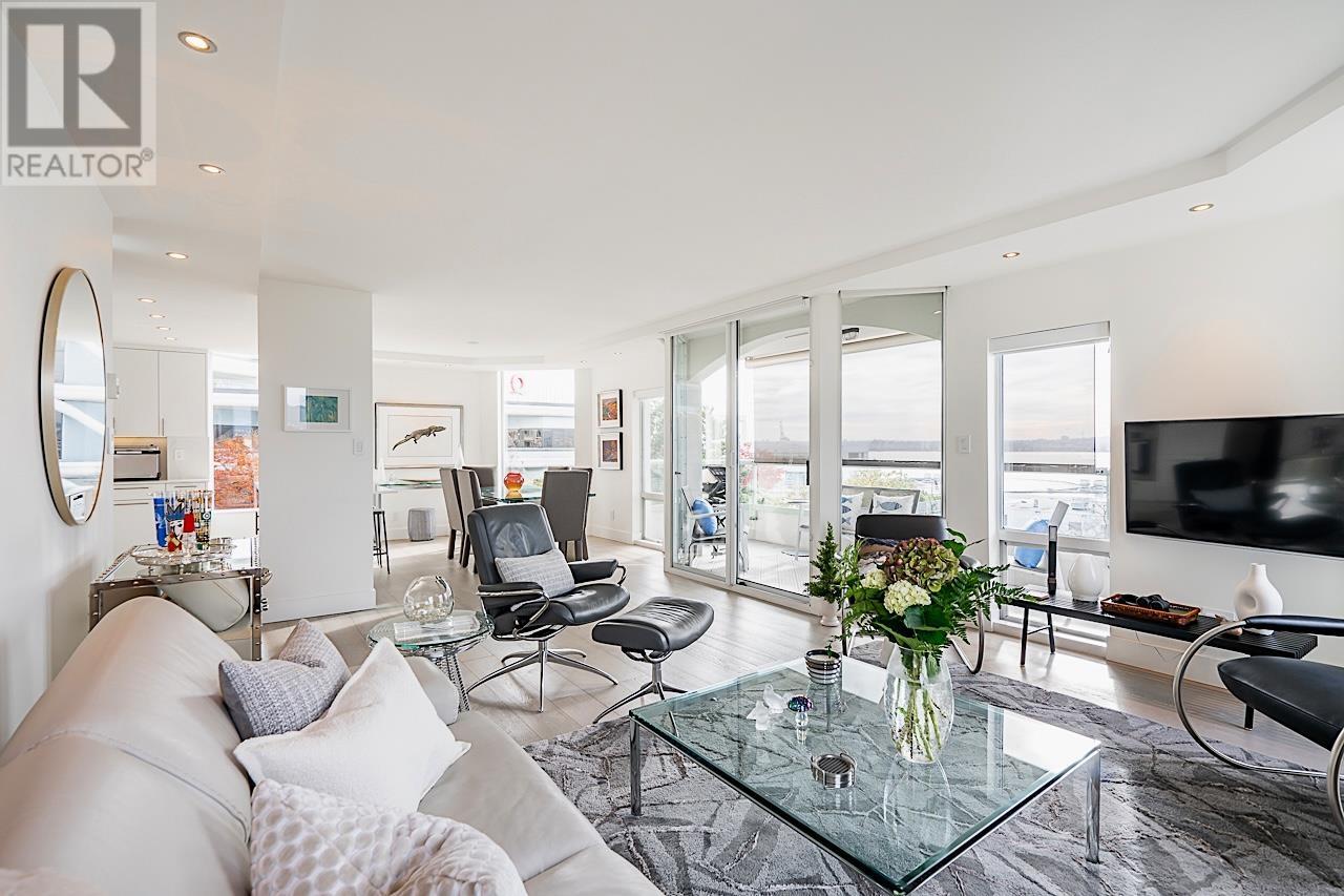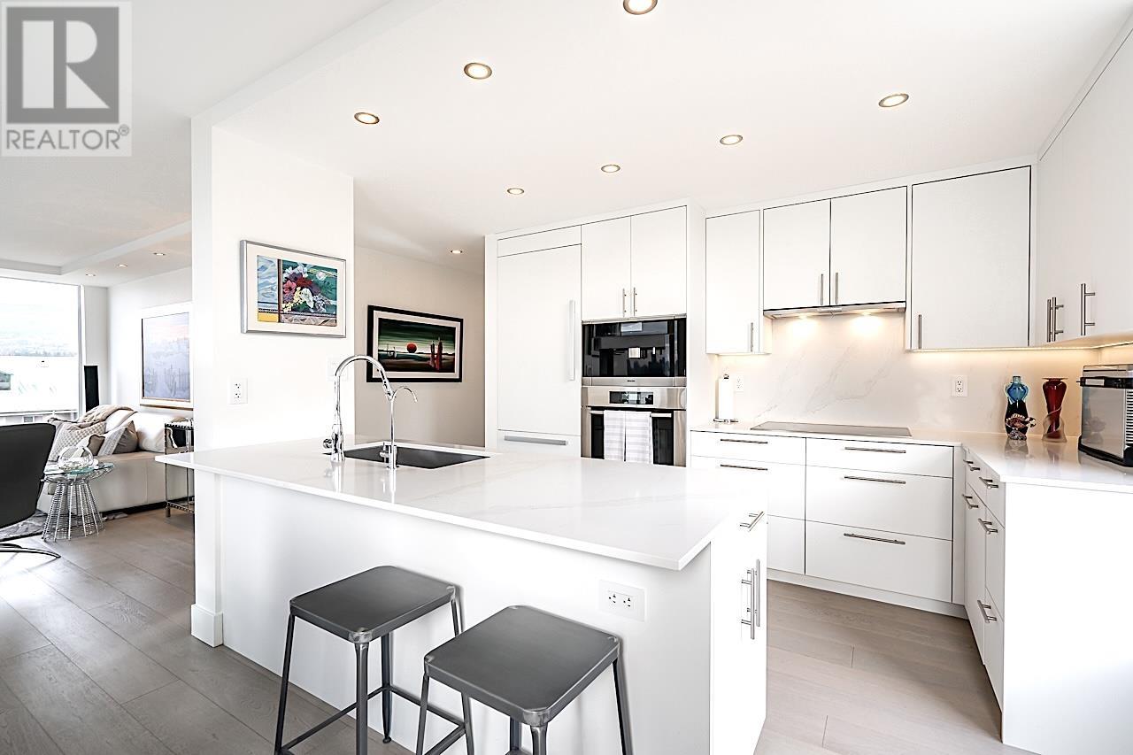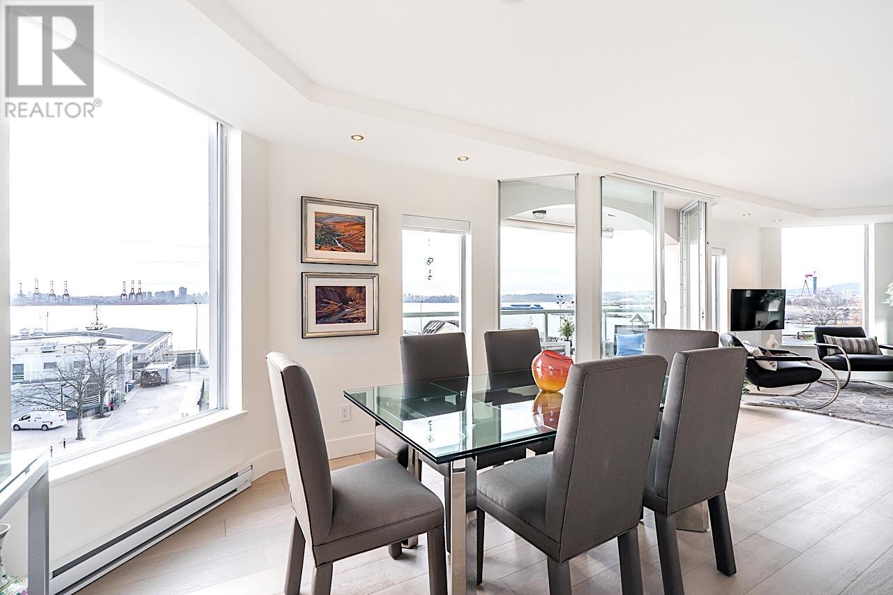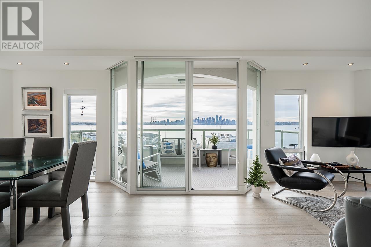 WATERFRONT LUXURY: Unique front unit offering UNOBSTRUCTED WATER & CITY VIEWS + no side neighbours . Fully renovated in 2018 ($200K+ spent) this bright, open 2-bed, 2-bath home boasts luxury finishes (hardwood floors, Italian cabinets, Miele appliances, California closets, remote window coverings + more!) 2 parking spaces + 2 XL lockers included. Exceptional amenities: resident caretaker, EV-charging, gym, sauna, workshop, bike rooms, meeting room, library + viewing deck. This Bosa-built concrete building is meticulously maintained with recent upgrades incl: exterior painting + sealing, re-piping, roof updates & refreshed common areas. Steps away from everything: Sea Bus terminal, Lonsdale Quay, groceries, banks, dining & more. An unbeatable combination of tranquility + convenience! (id:62103)