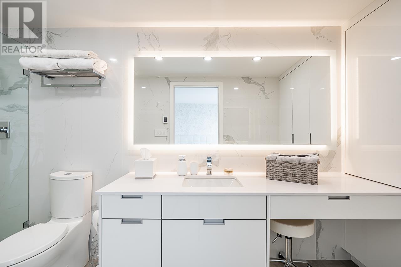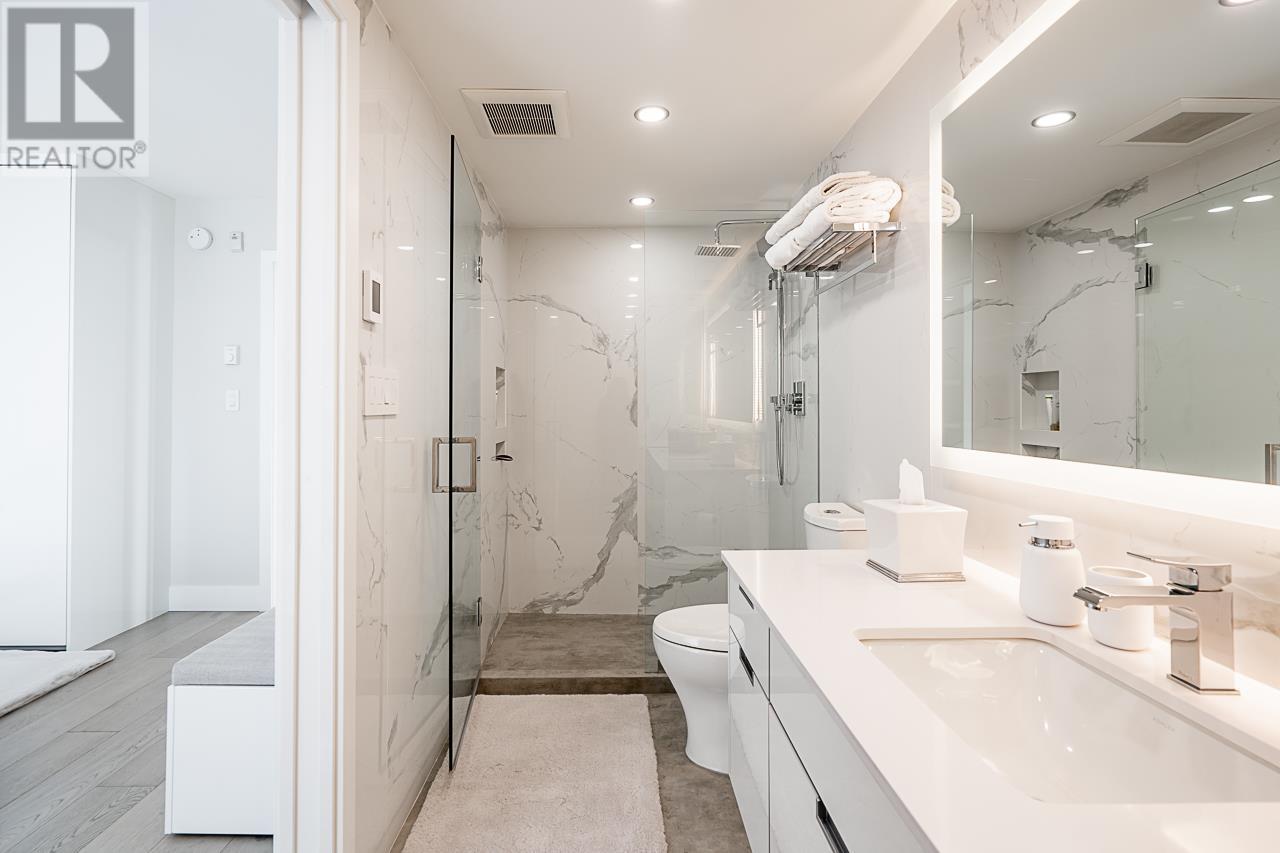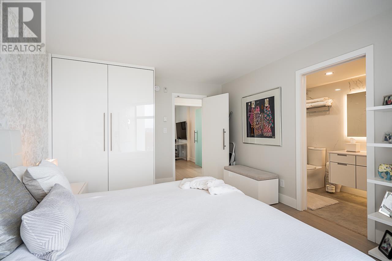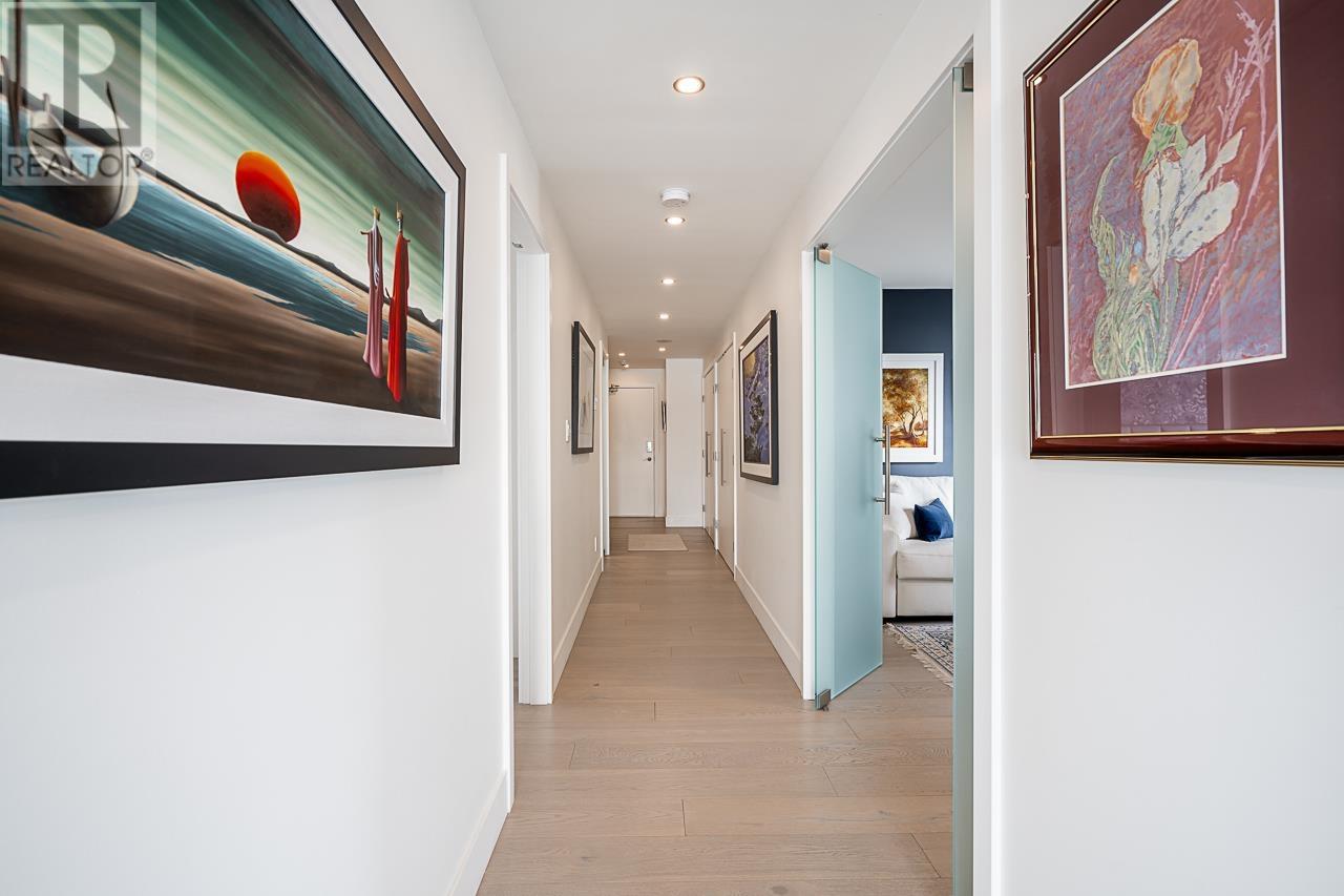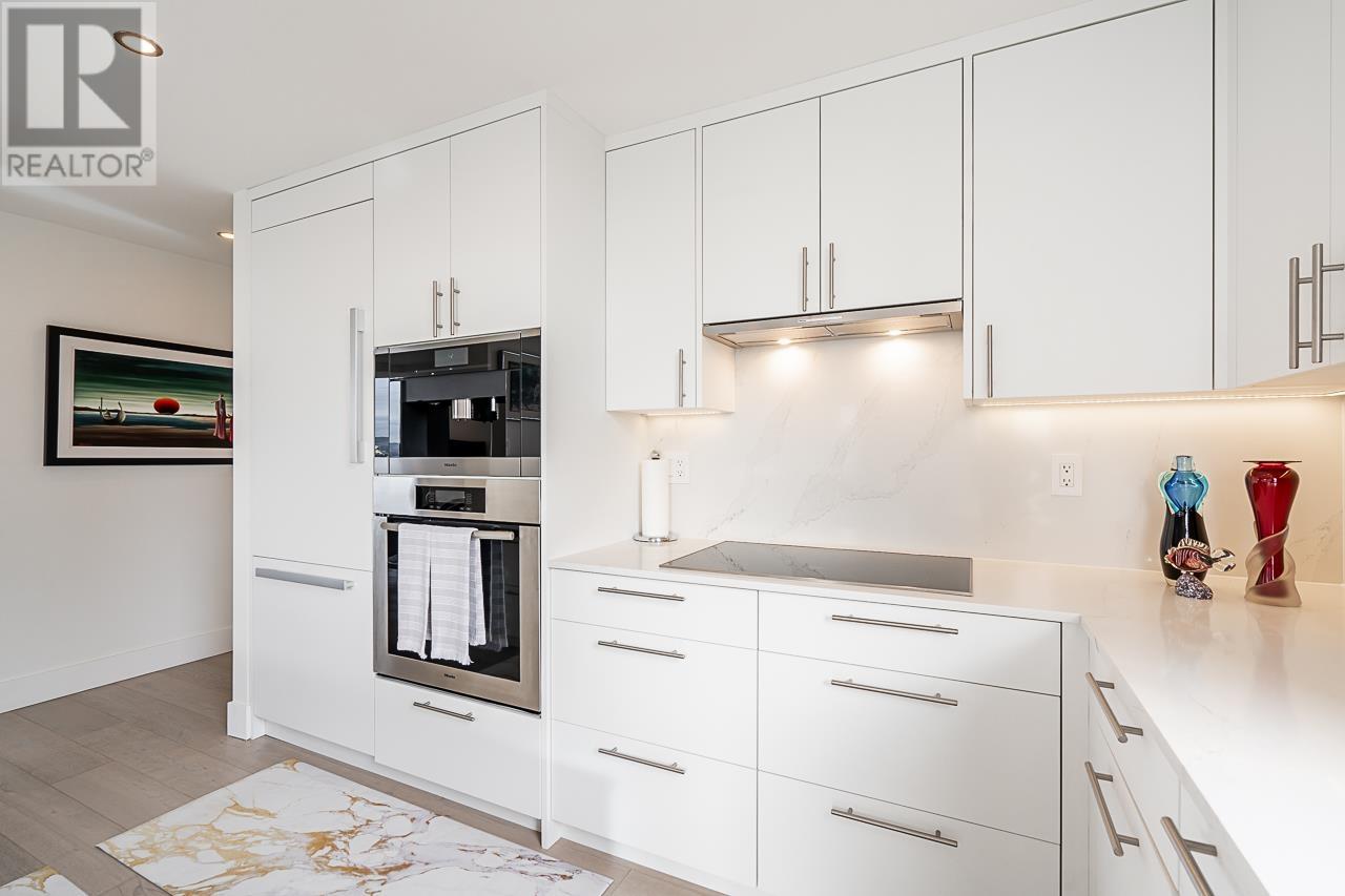WATERFRONT LUXURY: Unique front unit offering UNOBSTRUCTED WATER & CITY VIEWS + no side neighbours . Fully renovated in 2018 ($200K+ spent) this bright, open 2-bed, 2-bath home boasts luxury finishes (hardwood floors, Italian cabinets, Miele appliances, California closets, remote window coverings + more!) 2 parking spaces + 2 XL lockers included. Exceptional amenities: resident caretaker, EV-charging, gym, sauna, workshop, bike rooms, meeting room, library + viewing deck. This Bosa-built concrete building is meticulously maintained with recent upgrades incl: exterior painting + sealing, re-piping, roof updates & refreshed common areas. Steps away from everything: Sea Bus terminal, Lonsdale Quay, groceries, banks, dining & more. An unbeatable combination of tranquility + convenience! (id:62103)