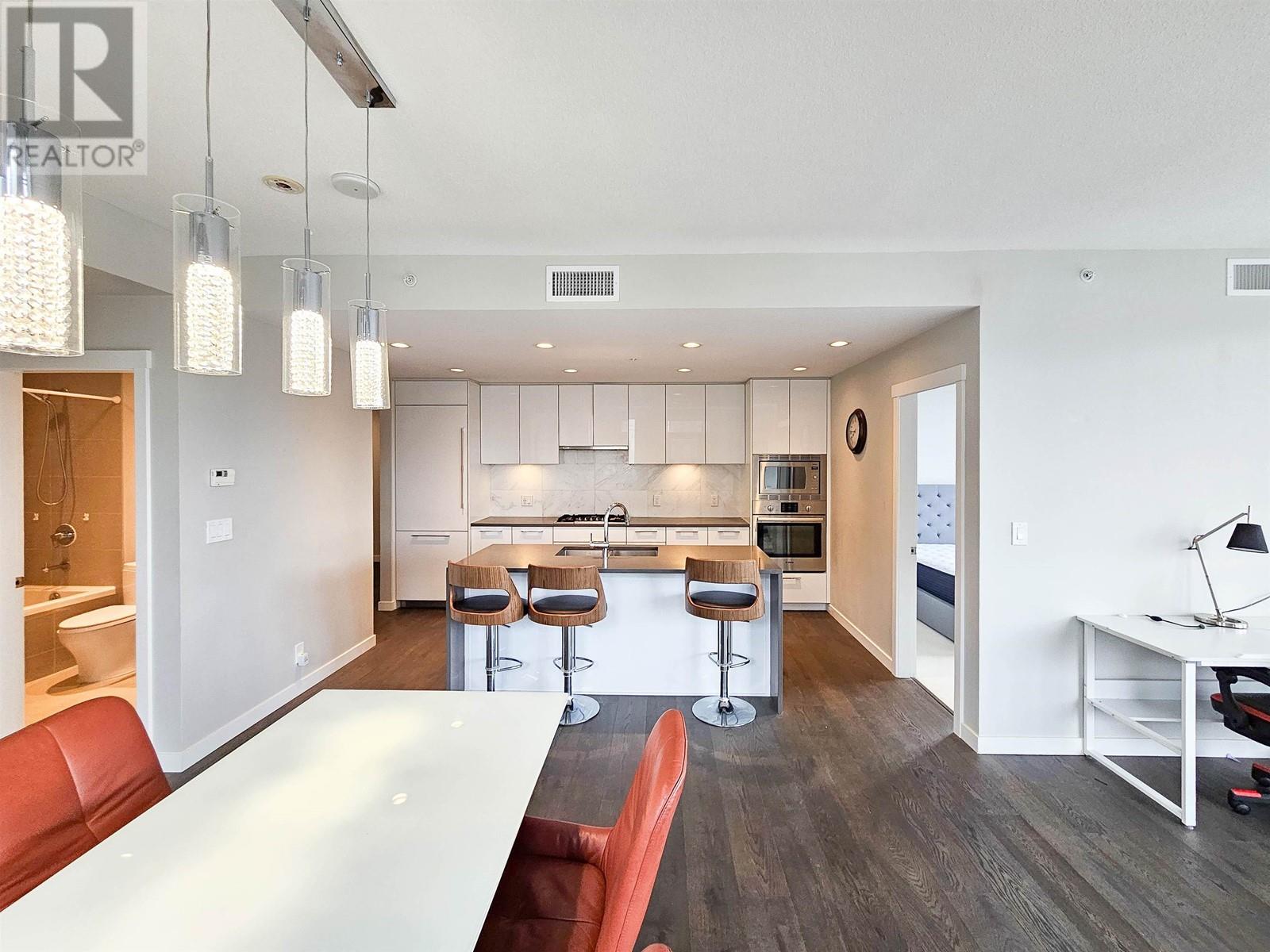 Eton by Polygon at UBC Wesbrook Village – Bright and spacious 3-bedroom high-rise concrete corner unit in one of UBC´s most desirable communities. This home features a functional open-concept layout, 9′ ceilings, and floor-to-ceiling windows that bring in abundant natural light. Enjoy year-round comfort with air-conditioning, engineered wood flooring, and a modern kitchen equipped with premium Bosch stainless steel appliances. The luxurious master ensuite showcases marble wall and floor tiles and a stone countertop. Includes in-suite washer/dryer and 1 parking stall. Pet-friendly building located steps from Wesbrook Village shops, Save-On-Foods, UBC campus, community centre, parks, and top-rated University Hill Elementary & Secondary. (id:62103)