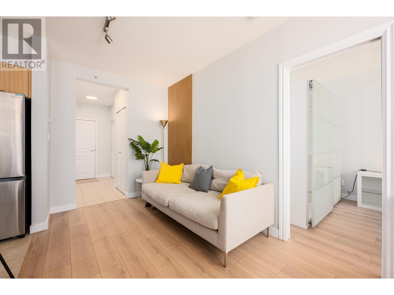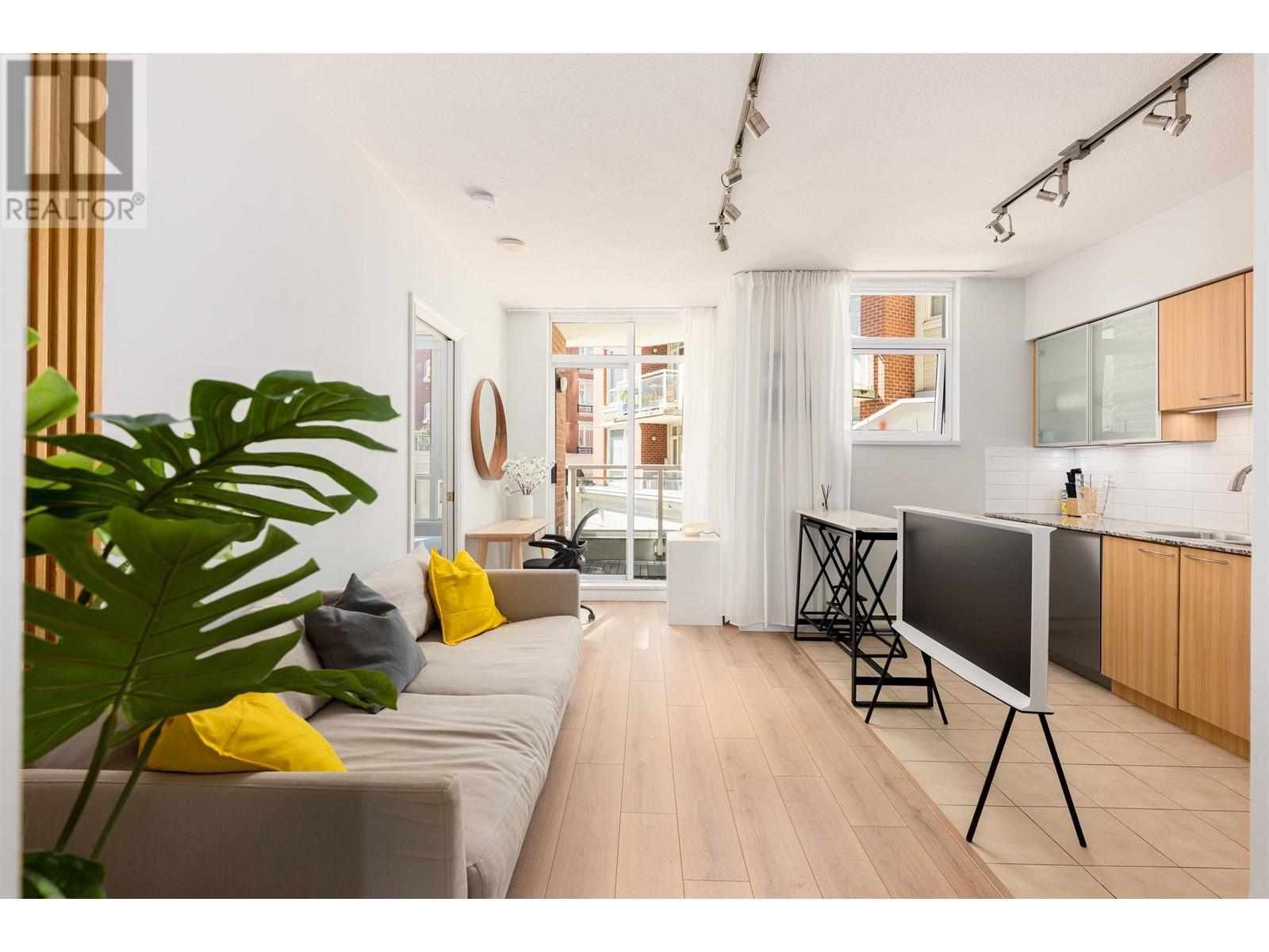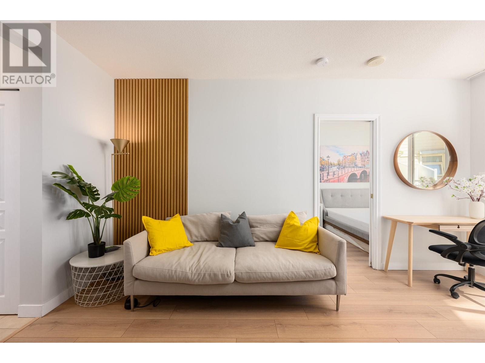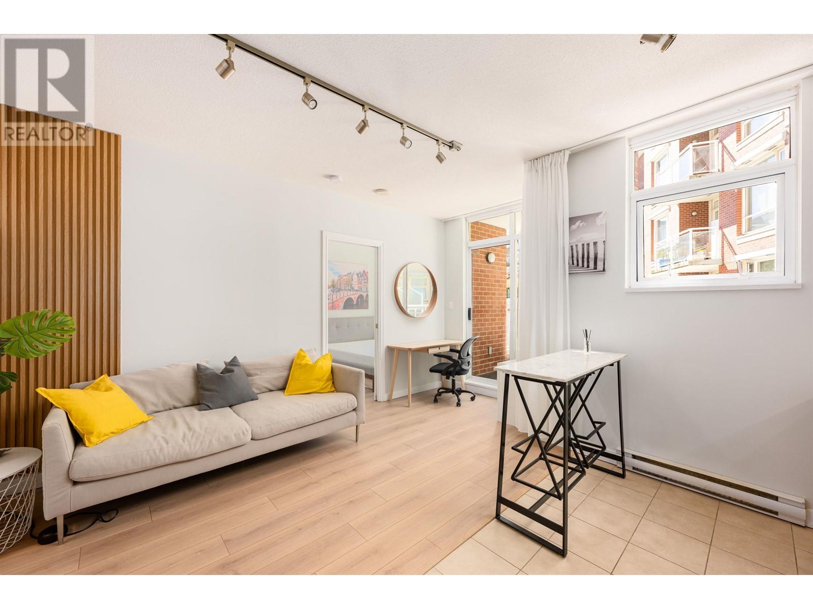 Attention First Time Home Buyers! Cute well-laid out junior 1 bed plus den condo. Having a southern exposure and facing the inner courtyard, this home is quiet and bright. The efficient floor plan combined with large windows and 9 ft ceilings makes the home spacious and comfortable. The generous sized den can be used as additional storage or a home office. Enjoy living in a solid concrete building with a proactive strata, a well-equipped gym, bike storage, and party room. Excellent neighbourhood, you are 10 mins to anywhere, steps from shops, the public library, banks, cafes and restaurants. Pets & Rentals OK. Includes 1 Parking & 1 Storage locker. Call today, this won’t last! (id:62103)