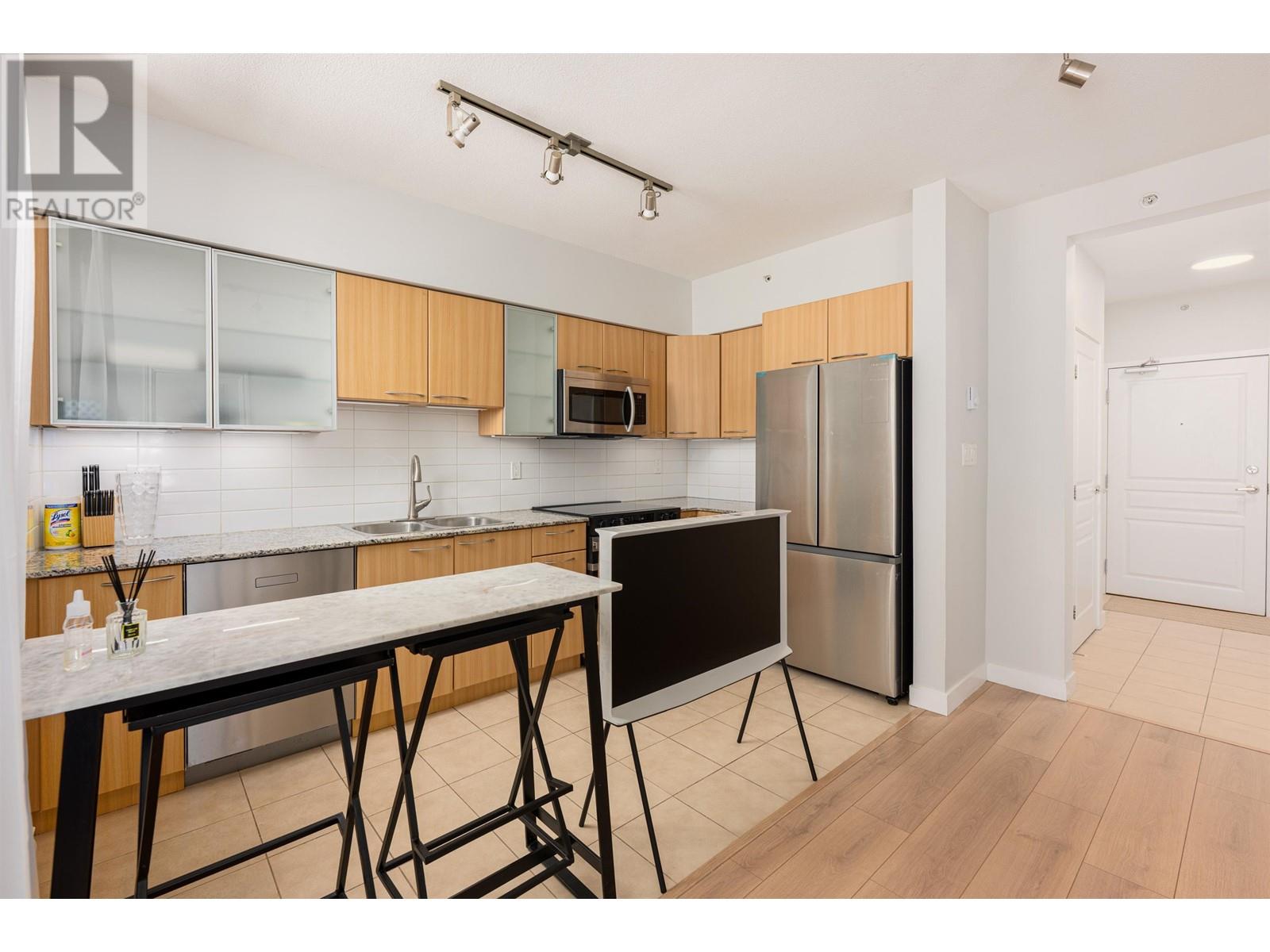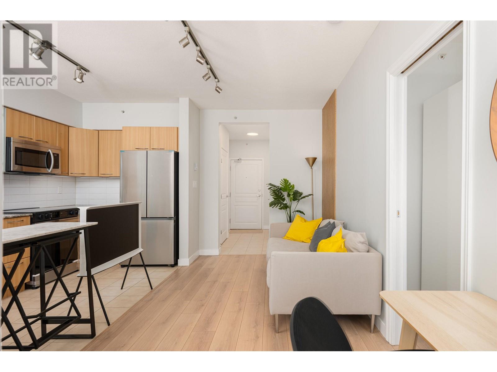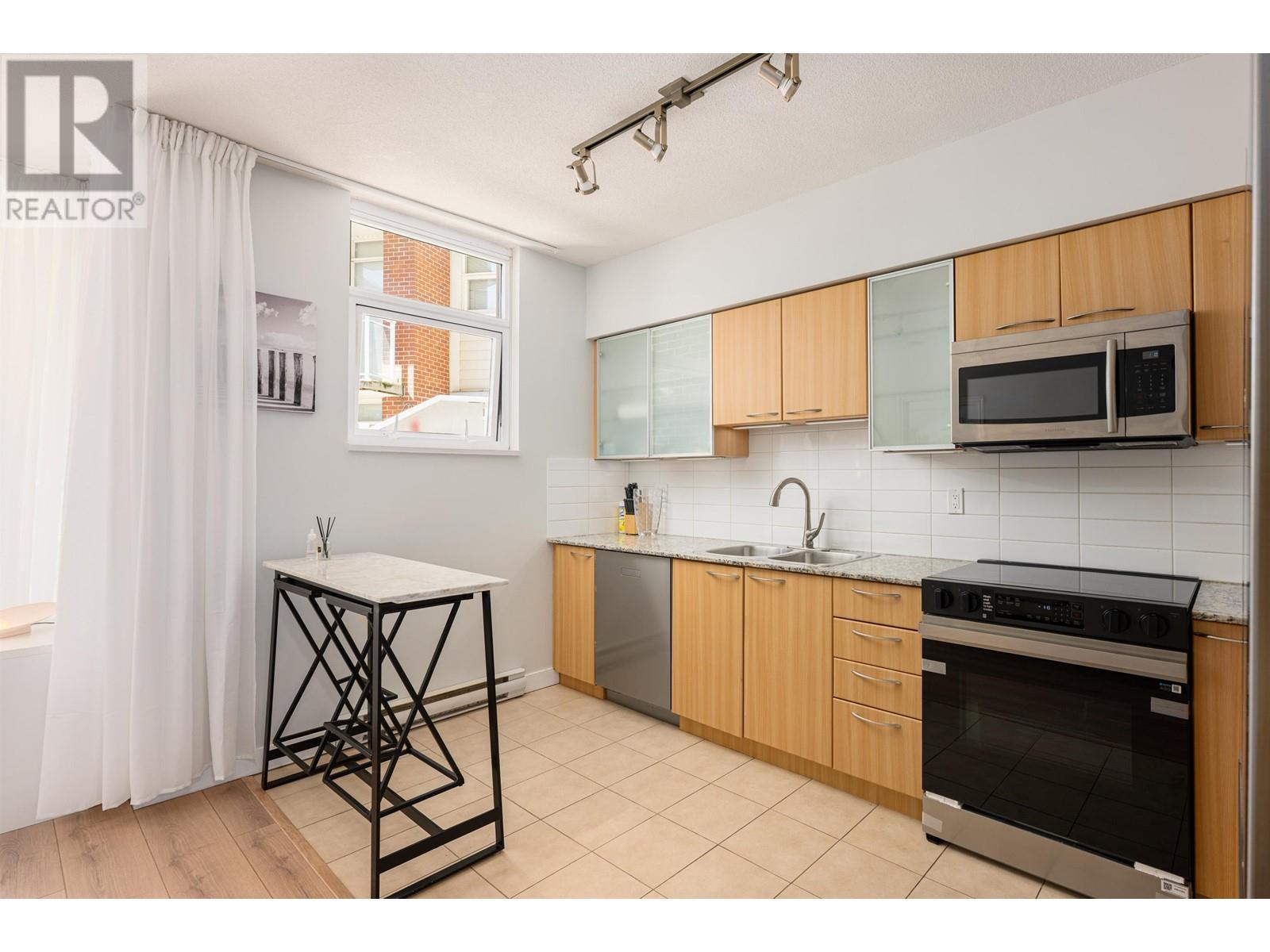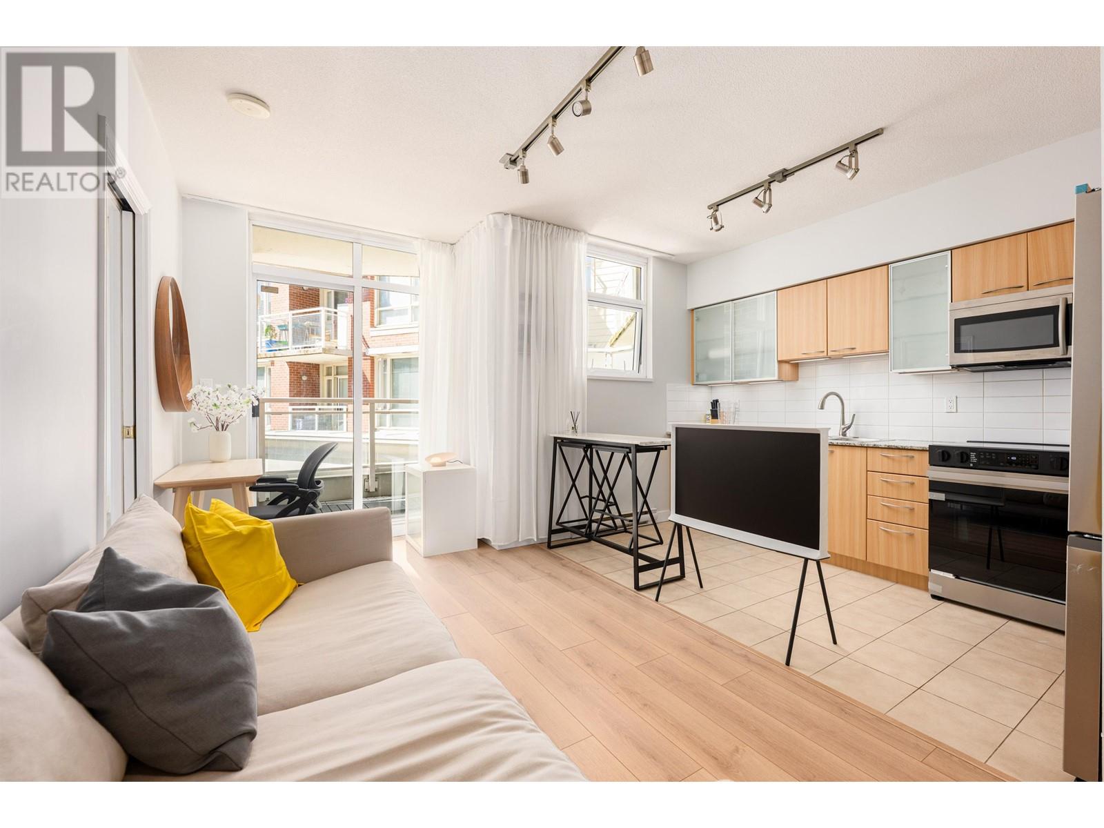 Attention First Time Home Buyers! Cute well-laid out junior 1 bed plus den condo. Having a southern exposure and facing the inner courtyard, this home is quiet and bright. The efficient floor plan combined with large windows and 9 ft ceilings makes the home spacious and comfortable. The generous sized den can be used as additional storage or a home office. Enjoy living in a solid concrete building with a proactive strata, a well-equipped gym, bike storage, and party room. Excellent neighbourhood, you are 10 mins to anywhere, steps from shops, the public library, banks, cafes and restaurants. Pets & Rentals OK. Includes 1 Parking & 1 Storage locker. Call today, this won’t last! (id:62103)