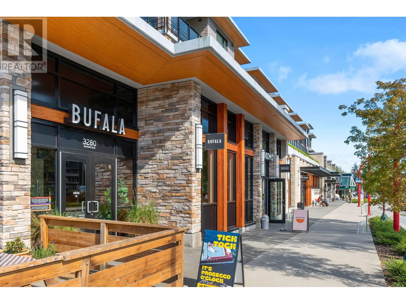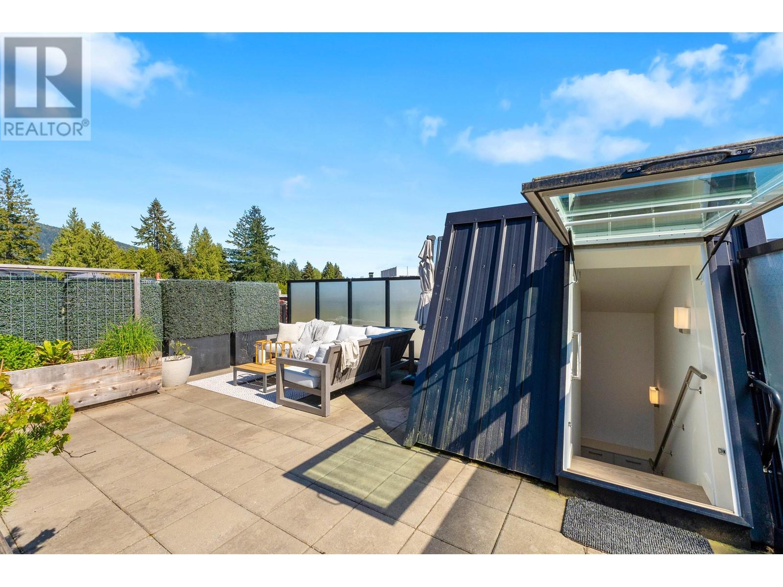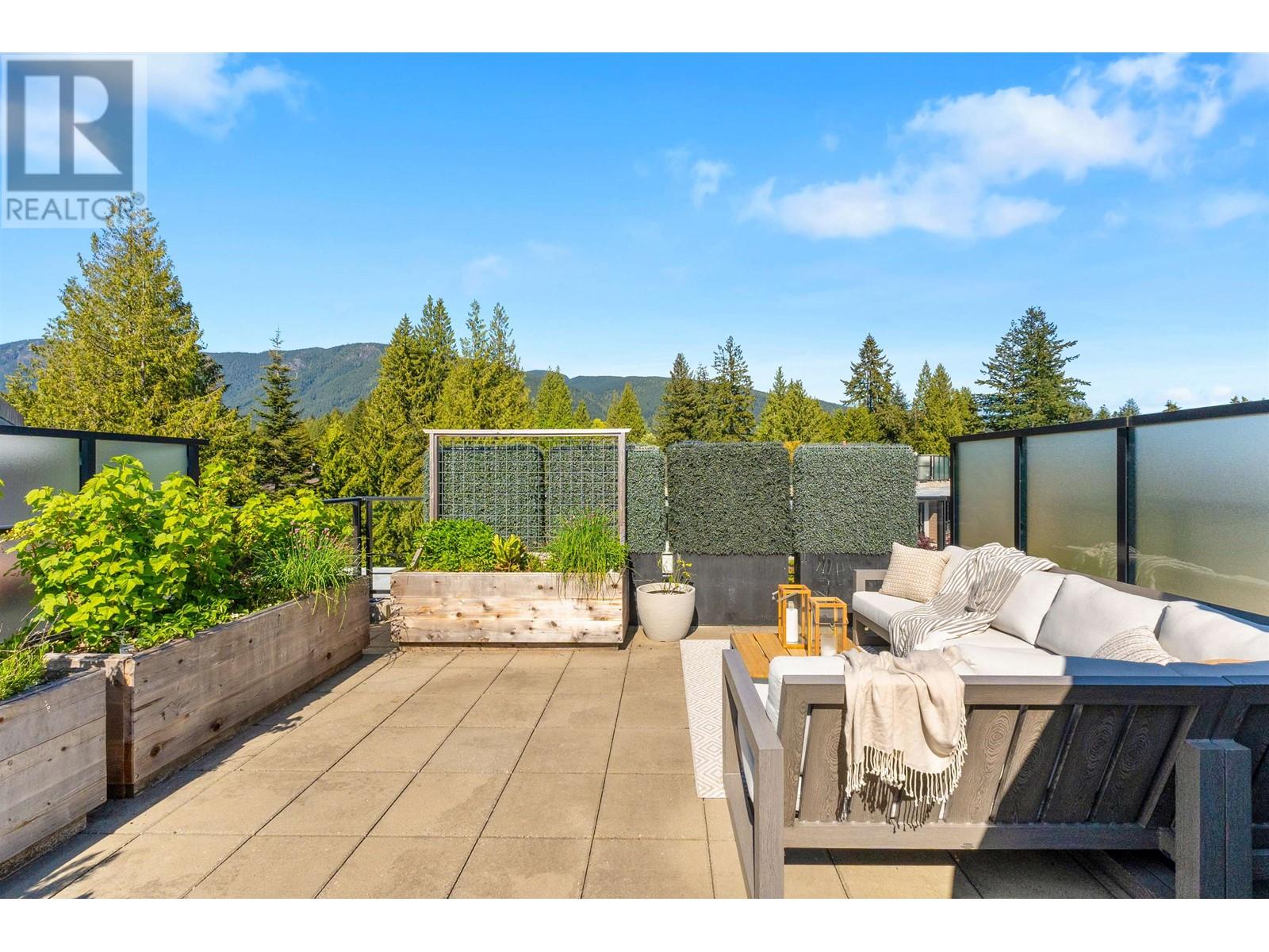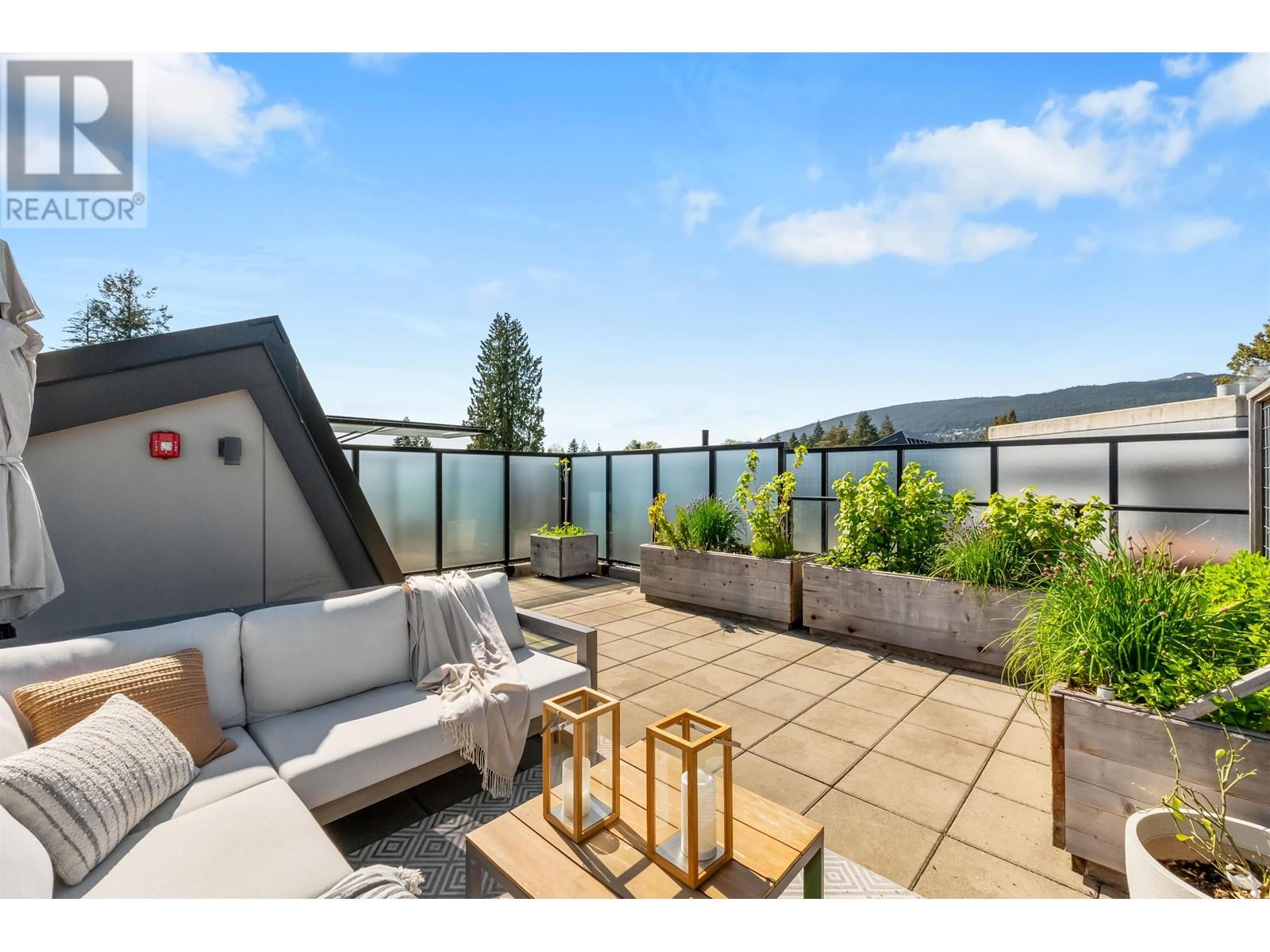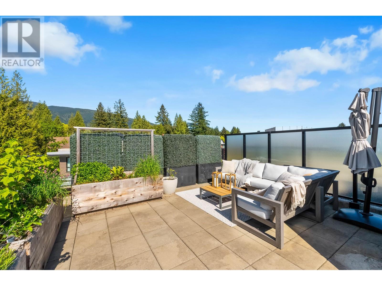 PRIVATE ROOFTOP PATIO IN THE HEART OF EDGEMONT! This elegant 2 bed, 2 bath top-floor home offers 979 square ft of luxurious living in a concrete building. Enjoy year-round use of the covered balcony off the living room and take in stunning mountain views from your own 440 square ft private rooftop deck. The gourmet kitchen features integrated Bosch appliances, custom Italian cabinetry, and flows into a bright living space with custom built-ins and engineered hardwood flooring. Spa-inspired bathrooms and air-conditioning add comfort and style. Includes 2 secure parking stalls, 1 storage locker, and is pet-friendly. Amenities: landscaped courtyard, BBQ area, fitness centre, bike room, owners´ lounge, and concierge. All just steps from Thrifty Foods, Shoppers Drug Mart, and everything Edgemont Village has to offer. (id:62103)