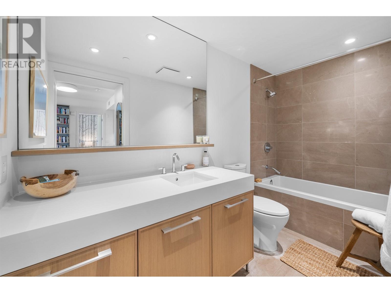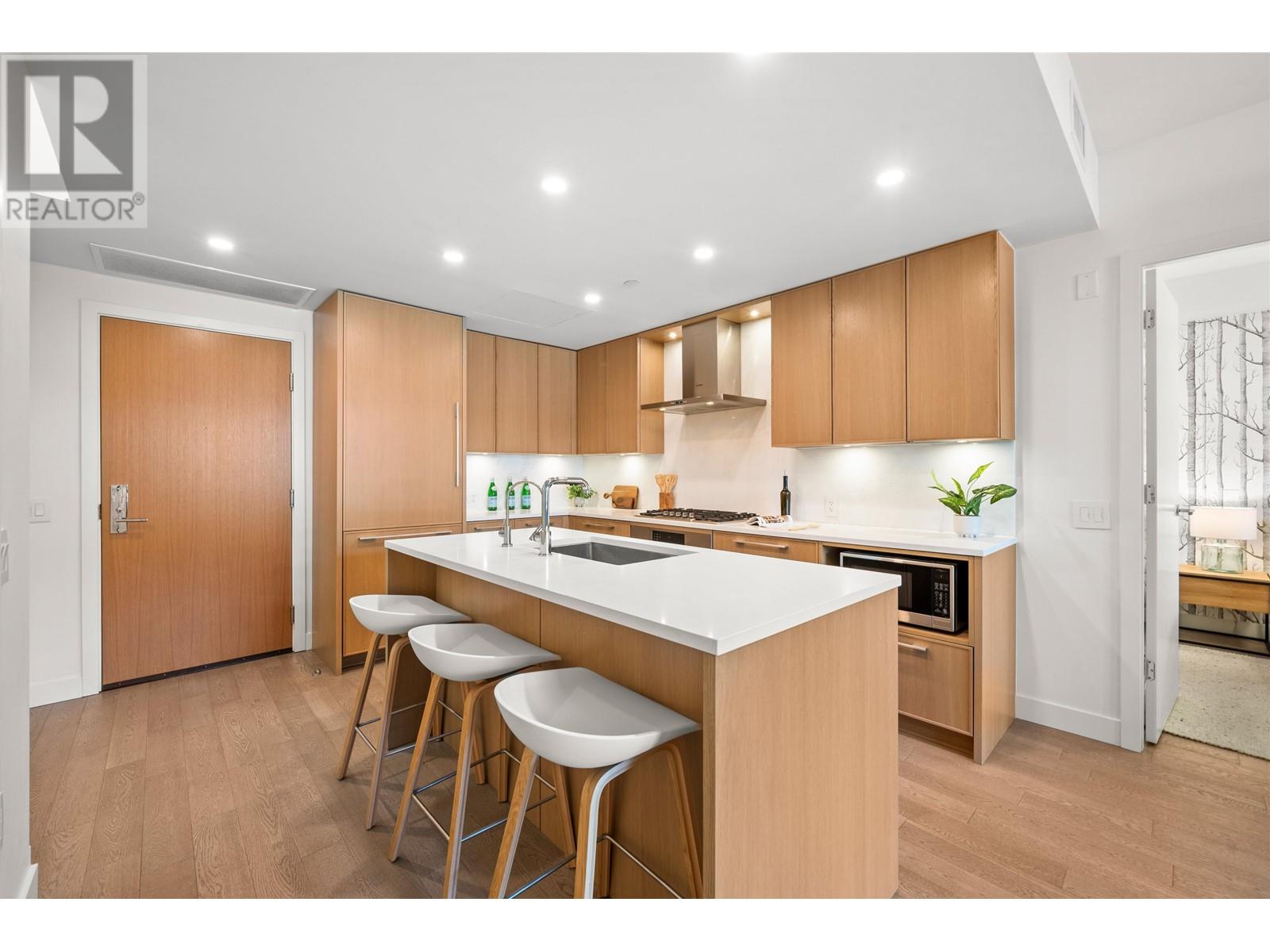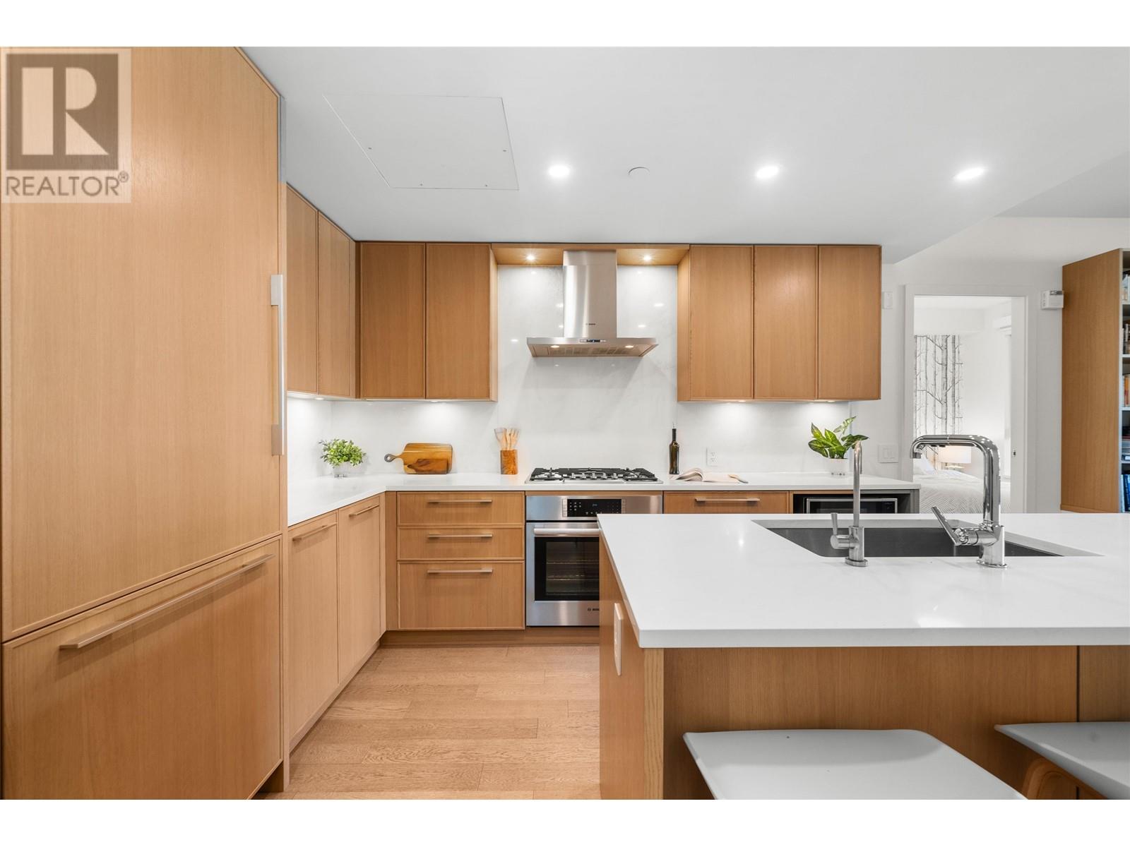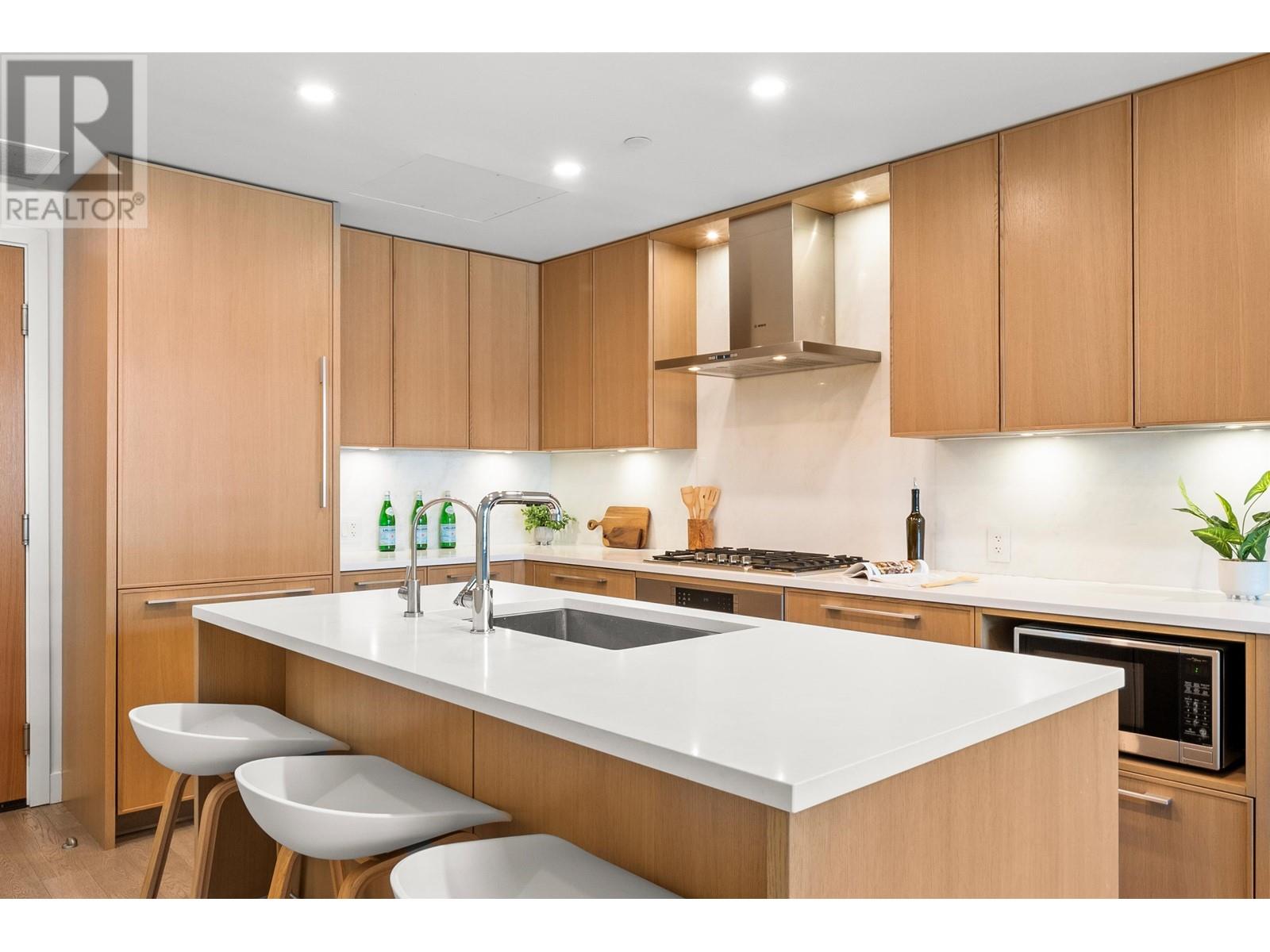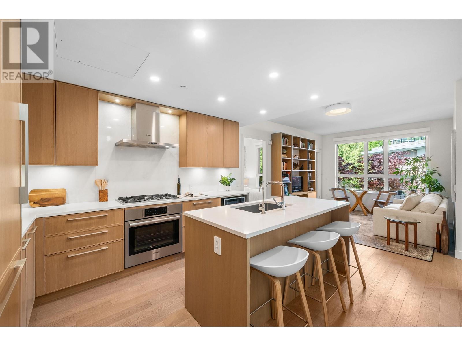 PRIVATE ROOFTOP PATIO IN THE HEART OF EDGEMONT! This elegant 2 bed, 2 bath top-floor home offers 979 square ft of luxurious living in a concrete building. Enjoy year-round use of the covered balcony off the living room and take in stunning mountain views from your own 440 square ft private rooftop deck. The gourmet kitchen features integrated Bosch appliances, custom Italian cabinetry, and flows into a bright living space with custom built-ins and engineered hardwood flooring. Spa-inspired bathrooms and air-conditioning add comfort and style. Includes 2 secure parking stalls, 1 storage locker, and is pet-friendly. Amenities: landscaped courtyard, BBQ area, fitness centre, bike room, owners´ lounge, and concierge. All just steps from Thrifty Foods, Shoppers Drug Mart, and everything Edgemont Village has to offer. (id:62103)