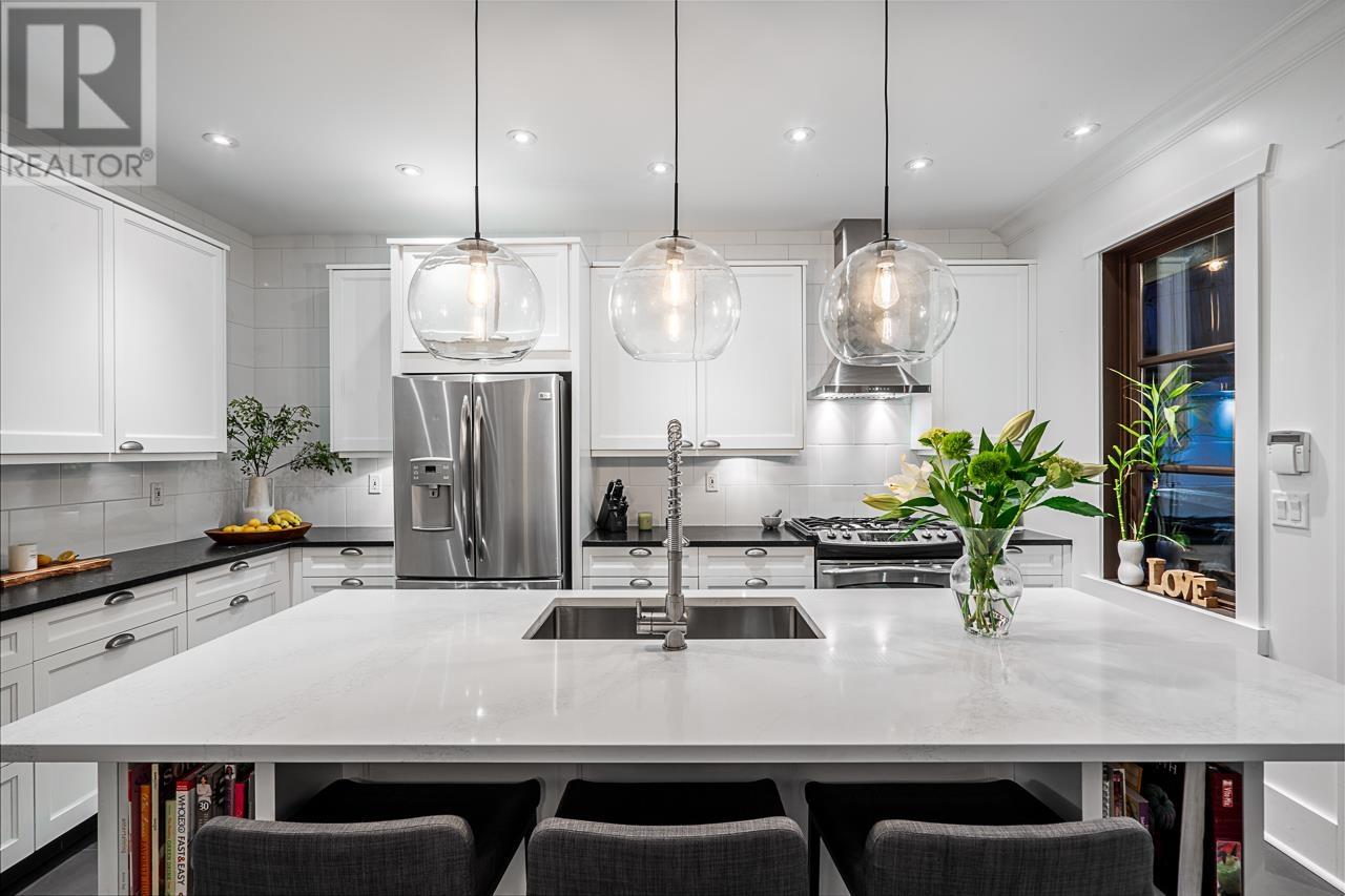 Truly magnificent family home! This 4 bedroom, 4 full bathroom craftsman style home offers 3 beds upstairs including a stunning primary bedroom with spa-like ensuite and a walk-in closet, plus 2 additional bedrooms and a 4 piece bathroom, plus a laundry room. Nice peek a boo views from the top floor too! The main floor boasts a recently renovated chef’s kitchen that opens thru French doors to a cozy and private back patio that is ideal for entertaining! The basement has a gorgeous one bedroom (plus den) mortgage helper with laundry. Ideally perched up from the street to enjoy all day sunshine and sunsets. Bonus: detached 269 square ft garage currently used as a gym, plus has plenty of storage too! Other features: low maintenance yard (no lawn), private hot tub and ideal location across the street from Mountainside high school (with large grass field for kids to play), and a 2 minute walk to Braemar Elementary. Do not miss this stunning home! (id:62103)