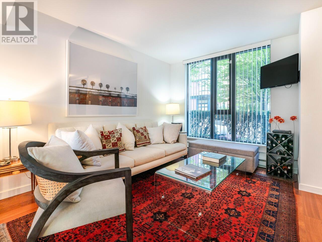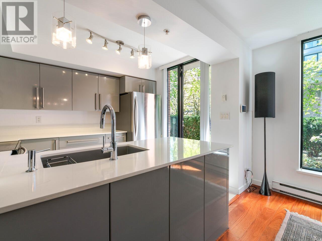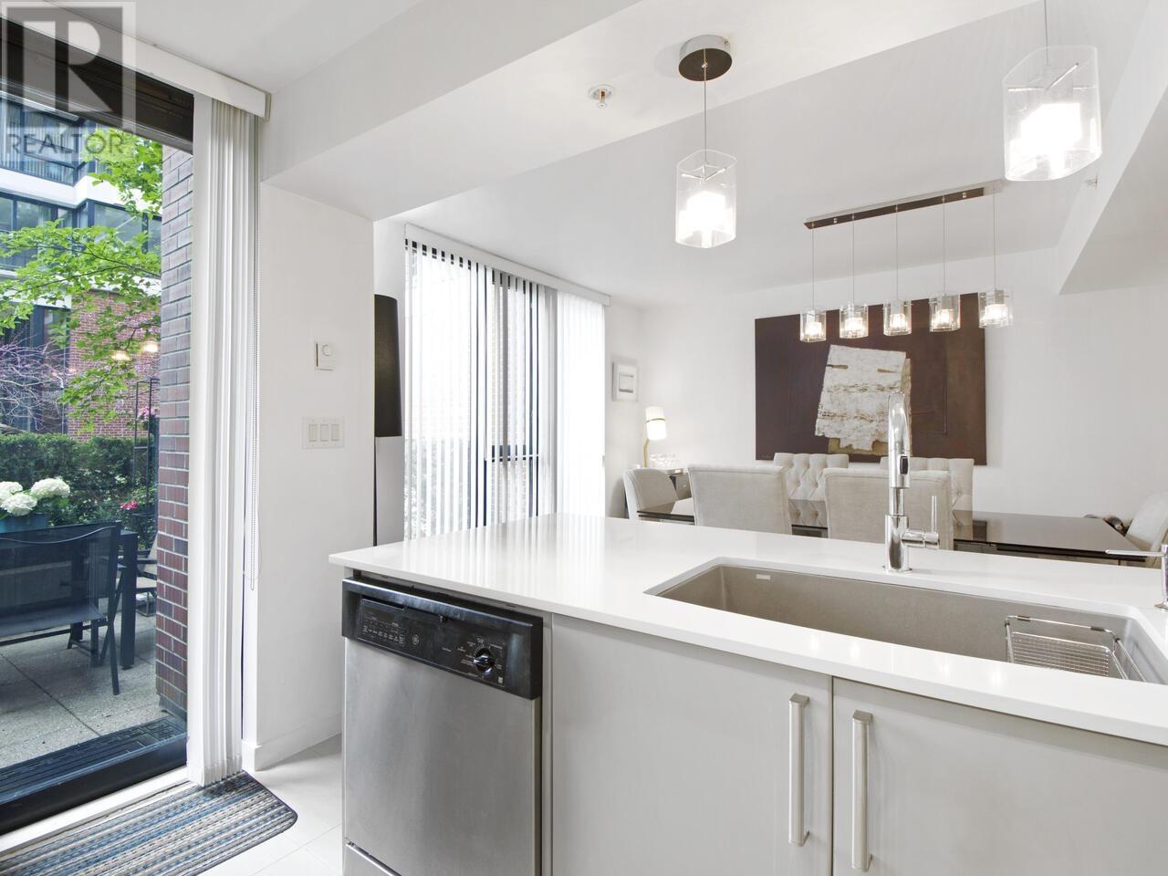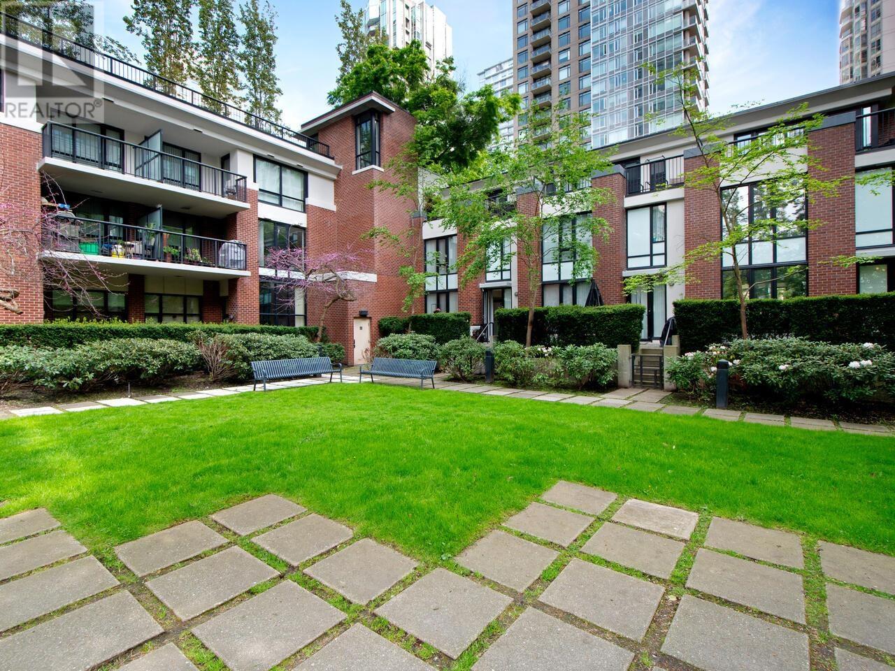 BRIGHT & STYLISH 3-BR/3-BA TOWNHOUSE in YALETOWN! Open-concept main floor is ideal for entertaining, with a welcoming Living Room, Dining area that seats ten guests, renovated Kitchen, and a patio for alfresco meals overlooking peaceful gardens. 2nd Floor: Primary bedroom w/custom California Closets & spacious 5-piece ensuite; a second bedroom, bathroom and laundry. Top floor has a versatile open-plan Family room + Office (easily reverts to original 3rd Bedroom), a large Sundeck, ideal for soaking up the sun, gardening & relaxing with a cocktail. Plus a GYM & Pet-friendly too! 2024 building envelope renewal adds peace of mind. In vibrant Yaletown near the Seawall, it’s a short walk to Canada Line, shops, restaurants, and a new children’s park a block away. This is urban living at its best! (id:62103)