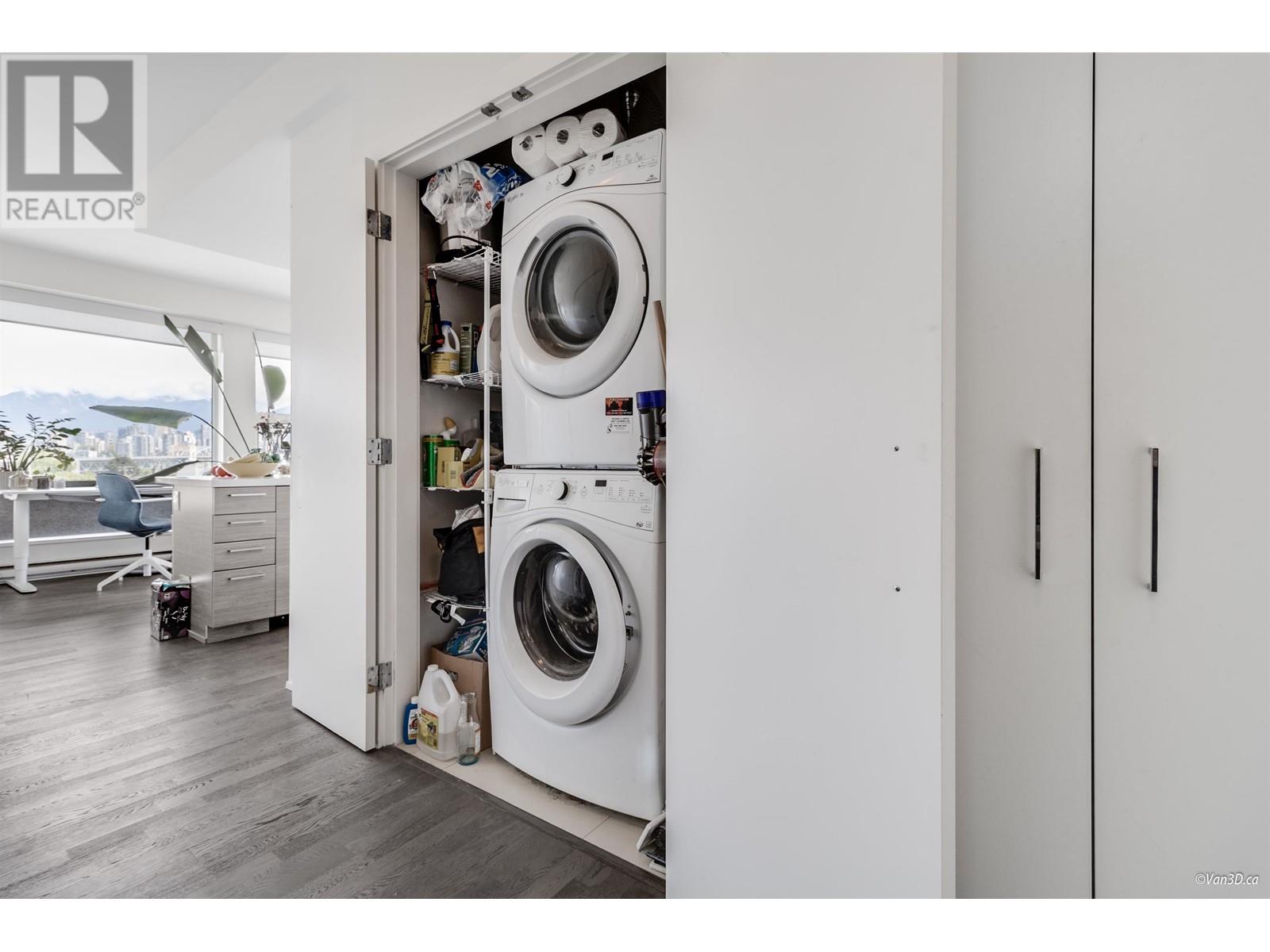 Relax in this one-of-a-kind 2-bedroom Penthouse with a large rooftop terrace and stunning city views. Designed with no wasted space, it features spacious bedrooms with a walk-in closet, a gourmet kitchen with Miele appliances, a gas cooktop, glossy white cabinetry, and an island with a built-in microwave. 1 parking stall, and 1 sports cage (locker). Close to transportations and minutes to downtown. Centrally located in the desirable False Creek/Fairview neighborhood, W 4th Avenue´s lively shops and restaurants are at your doorstep, with Granville Island, Kitsilano, and the seawall just a short walk away (id:62103)