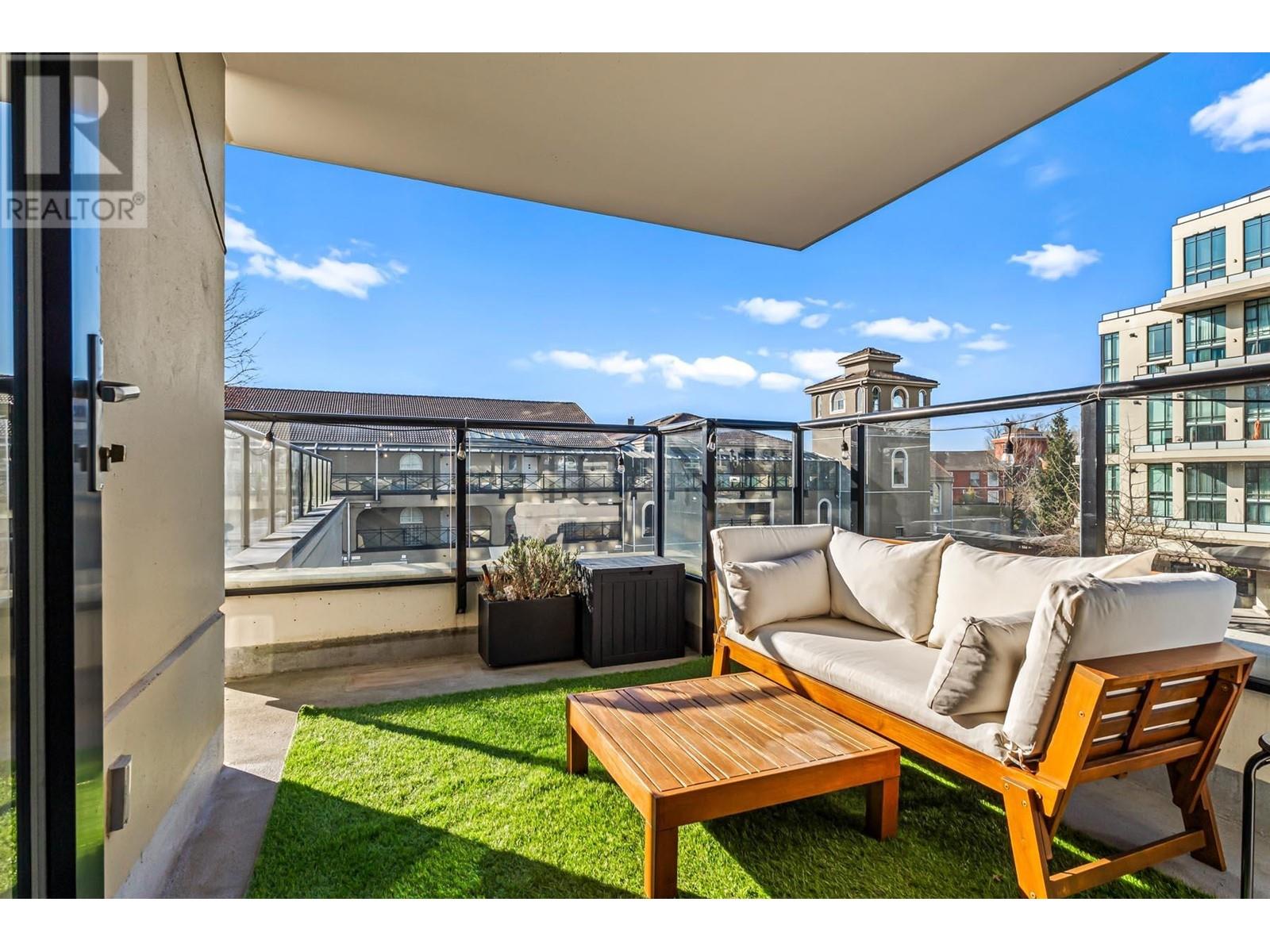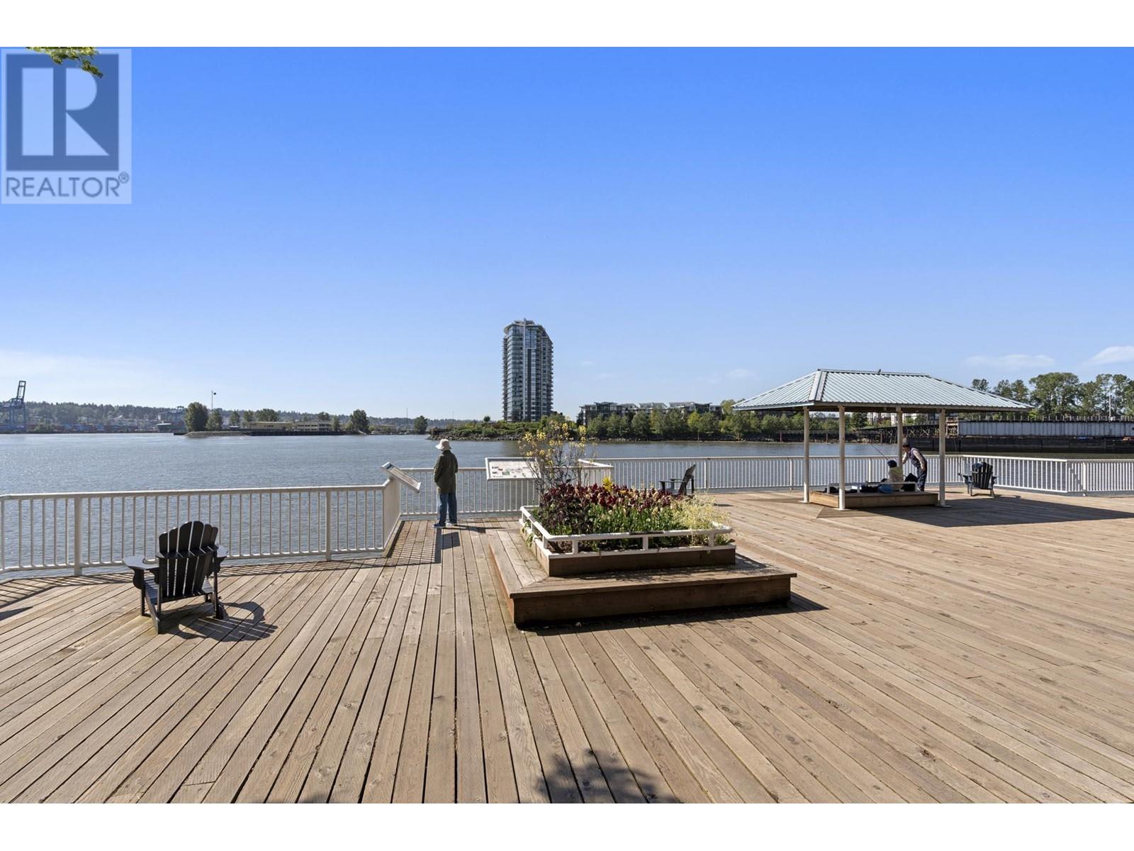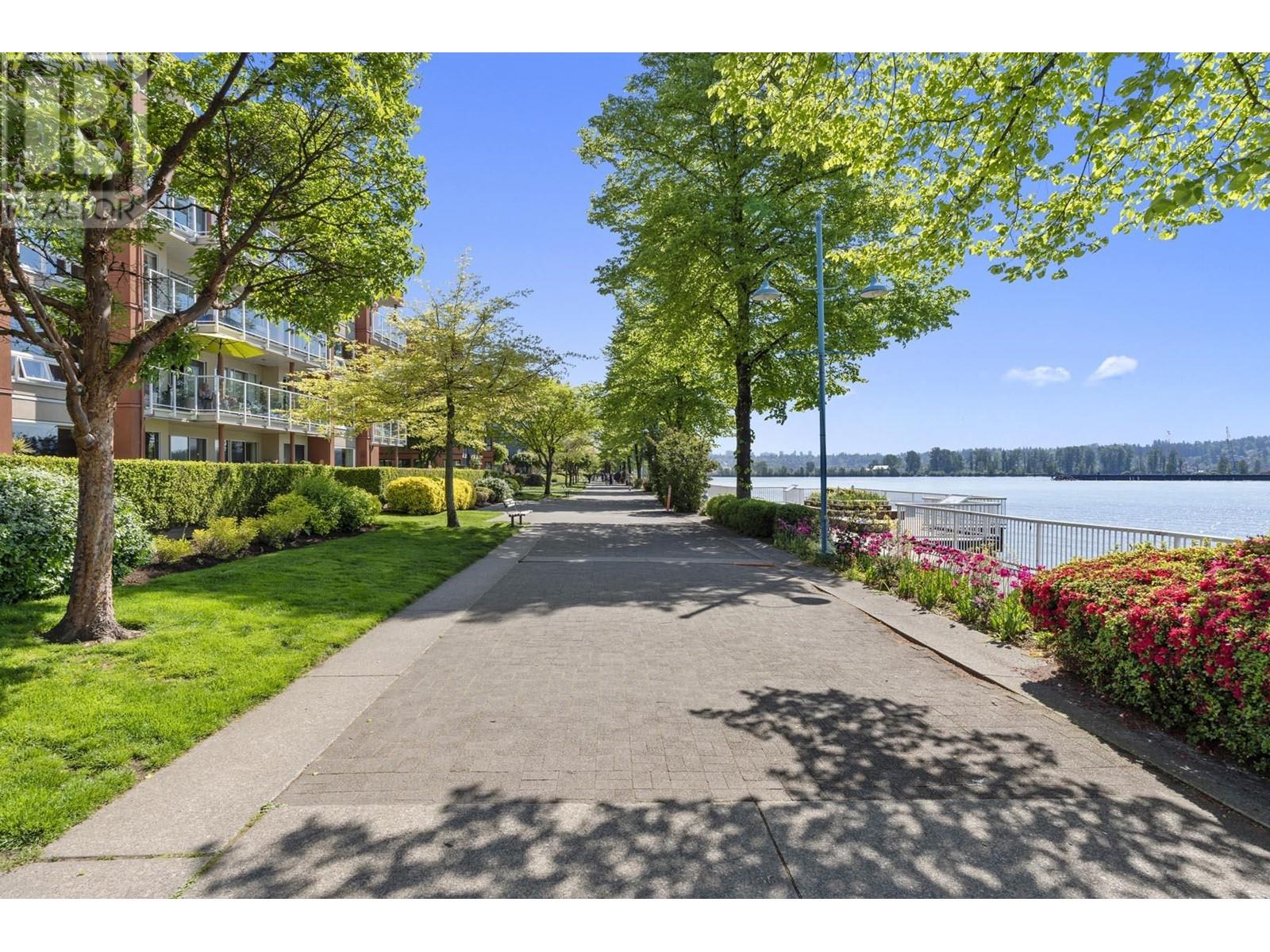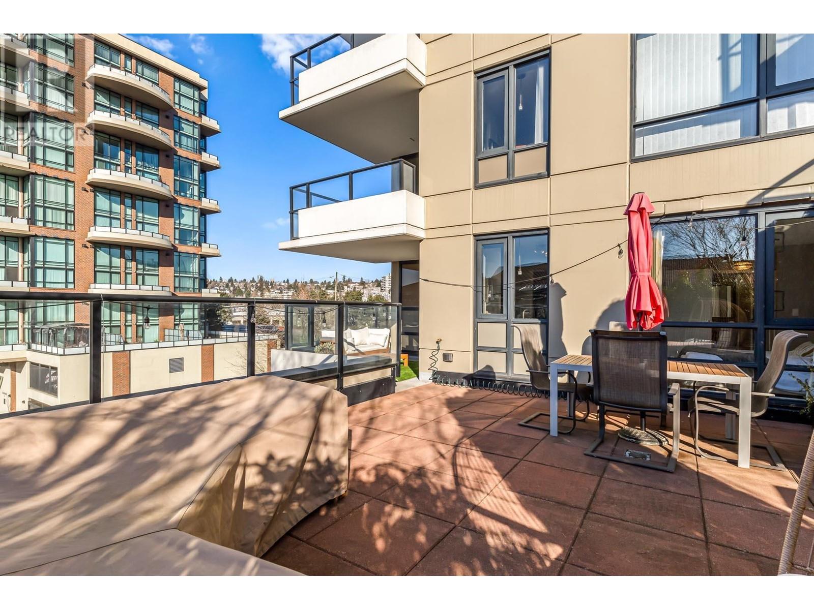 Truly unique – unlike any other home in the building! This gorgeous corner unit features nearly 1400 square ft of combined indoor/outdoor space. 497 square ft private patio is amazing. 2 bedrooms and 2 full bathrooms, with bedrooms thoughtfully positioned on opposite sides for added privacy. The updated kitchen features stunning modern cabinetry, quartz counters, and a window overlooking the massive patio. Insuite laundry. 2 dogs or cats allowed. 1 parking stall and 1 storage locker. Building has a fitness room, theatre, visitor parking and more. Prime location – just a short walk to the Boardwalk, parks, dog park, brewery, Skytrain, cafes, restaurants & River Market. (id:62103)