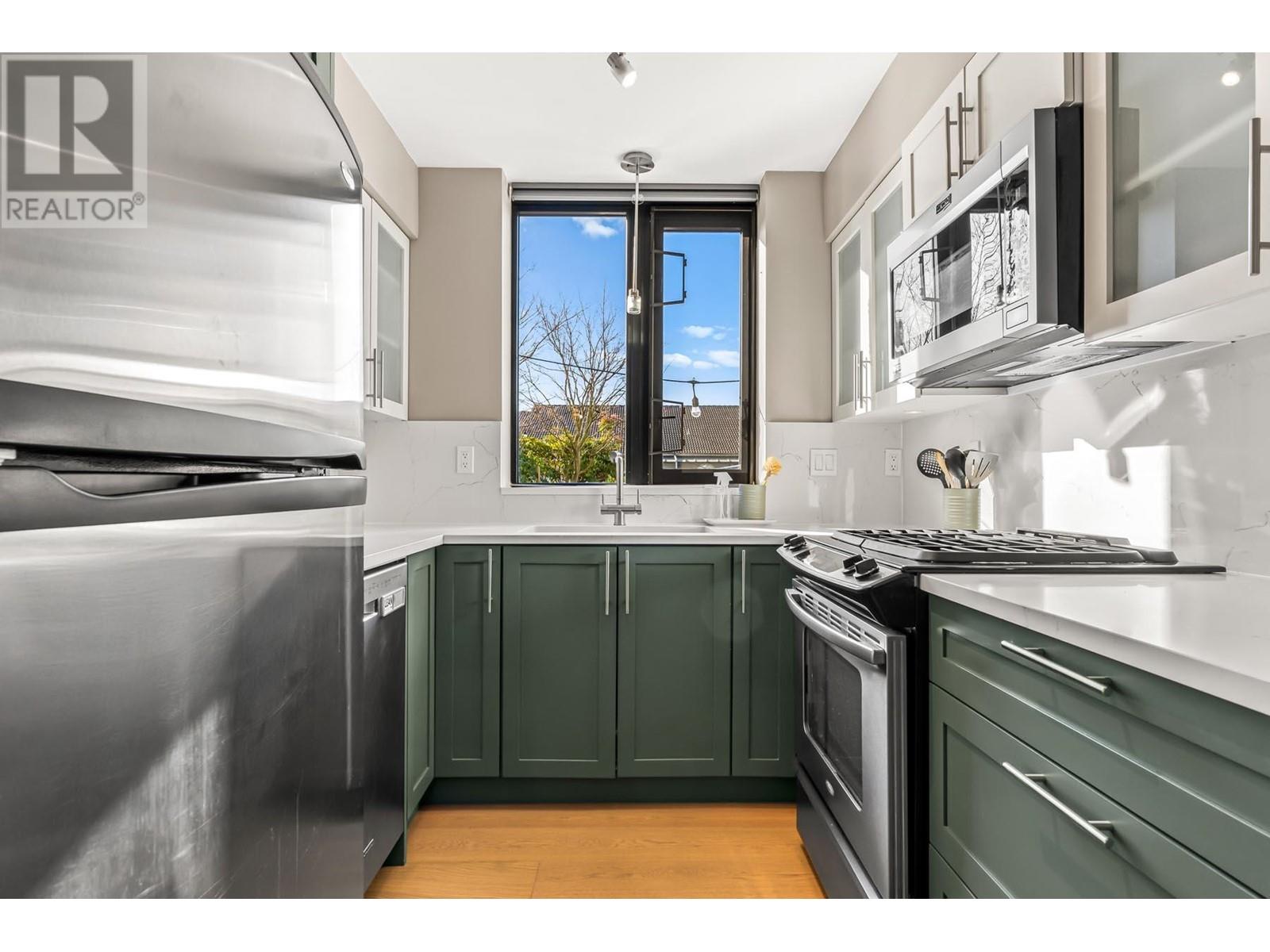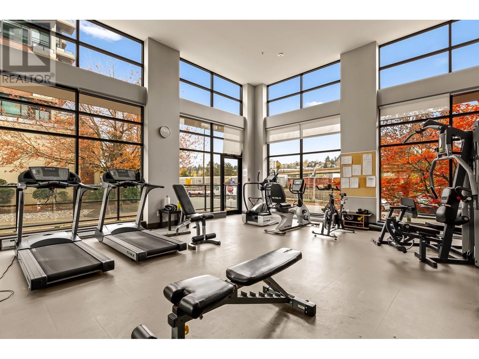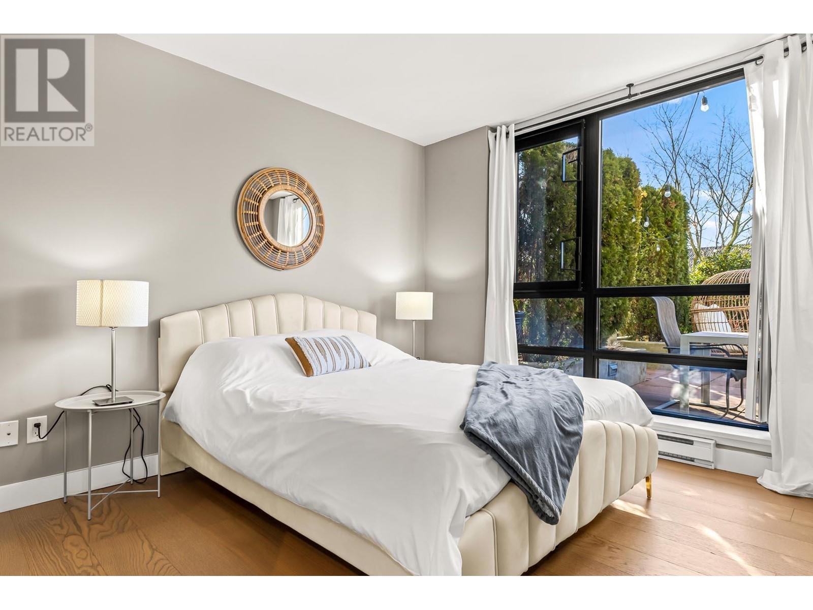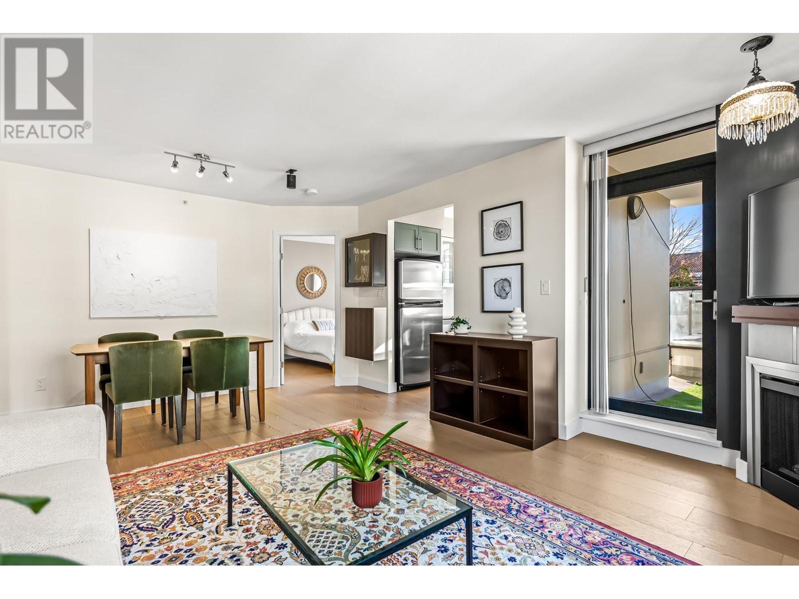 Truly unique – unlike any other home in the building! This gorgeous corner unit features nearly 1400 square ft of combined indoor/outdoor space. 497 square ft private patio is amazing. 2 bedrooms and 2 full bathrooms, with bedrooms thoughtfully positioned on opposite sides for added privacy. The updated kitchen features stunning modern cabinetry, quartz counters, and a window overlooking the massive patio. Insuite laundry. 2 dogs or cats allowed. 1 parking stall and 1 storage locker. Building has a fitness room, theatre, visitor parking and more. Prime location – just a short walk to the Boardwalk, parks, dog park, brewery, Skytrain, cafes, restaurants & River Market. (id:62103)