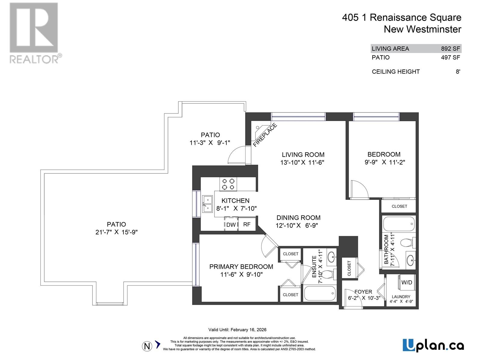 892 square feet