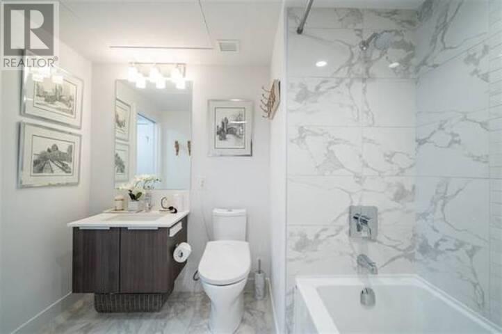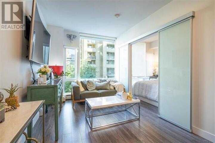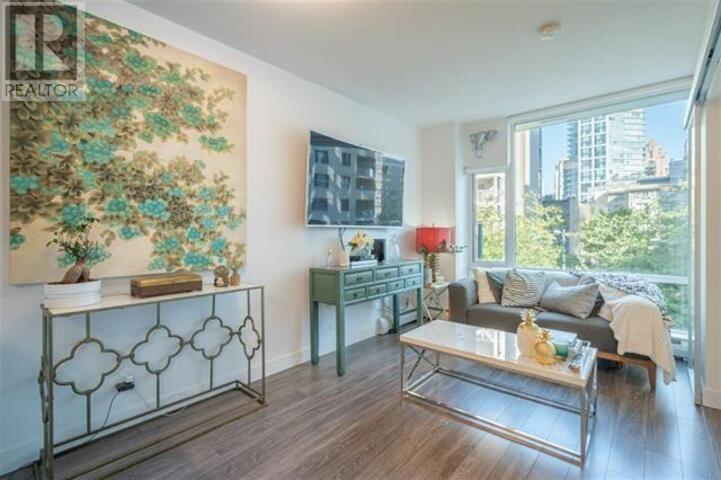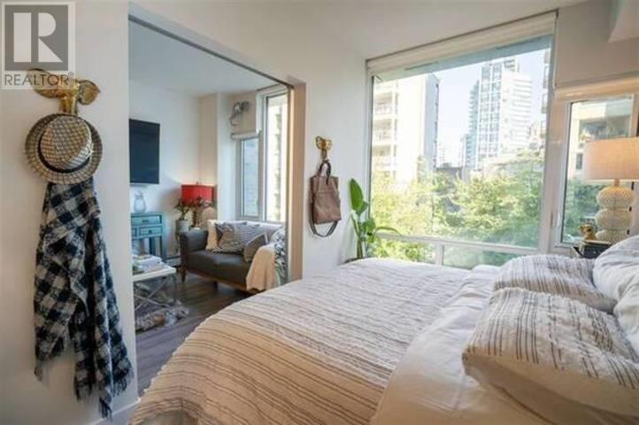 Like-new and meticulously maintained, this bright 1-bedroom + oversized den offers stunning views of a tree-lined courtyard. The spacious den is perfect for a home office in an unbeatable location. The Tate on Howe, a LEED-certified building by renowned Merrick Architecture, features a gym and meeting room on the same level. Enjoy quick ground-level access-skip long elevator waits with the stairs right next door! The chef-inspired kitchen boasts high-end Miele & Blomberg stainless steel appliances and a natural gas cooktop. The bedroom includes his & hers closets for added convenience. A rare find in one of Vancouver´s best buildings-don´t miss out! (id:62103)