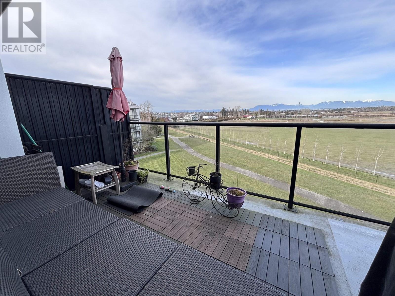 VIEW FROM EVERY ROOM ! This RARELY available unique two-level 2-bed 2-bath PENTHOUSE located in the charming Steveston community offers the perfect blend of luxury and tranquility. Spanning 1,210 square ft over two levels, it features a massive 387 square ft deck with unobstructed views of lush farmlands, the North Shore mountains, and Mt. Baker. Whether you´re sunning, entertaining, or enjoying a morning coffee, this outdoor space is an seamless extension of your home. Inside, revel in the open floor plan, 9ft ceilings, chef´s kitchen with granite counters, S/S appliances, and a built-in wine fridge. The upper-level primary suite is a private retreat with a balcony and space for a home office. Steps from the Dyke Trail, Diplomat Cafe and minutes to Steveston Village. 2 parking stalls + 2 lockers-don´t miss this! (id:62103)