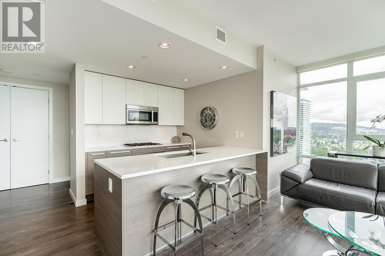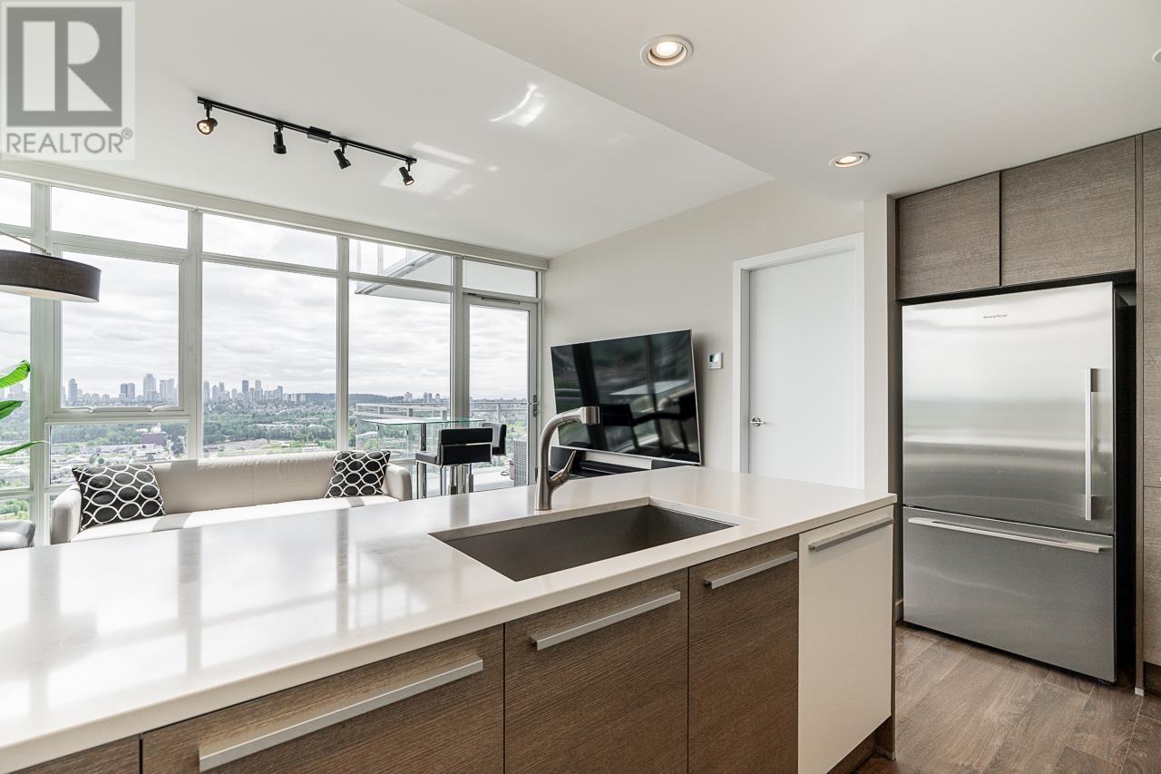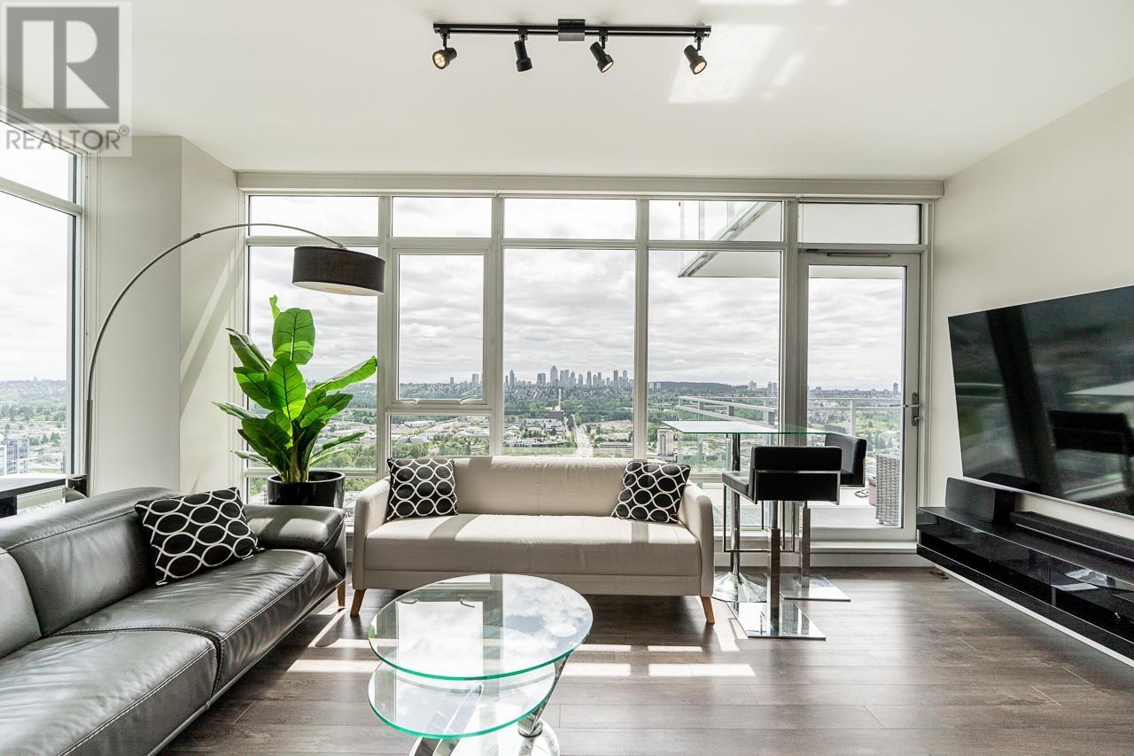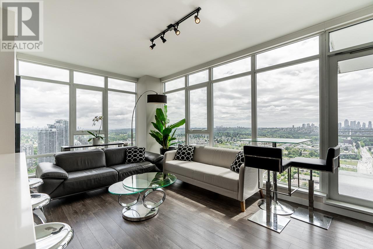 Welcome to the 42nd floor of one of Burnaby´s most sought-after towers on Skyline Drive. This rare 3 bed, 2 bath corner unit offers 1,040 square ft of beautifully designed, move-in ready living space with floor-to-ceiling windows framing unobstructed 180° views of the city skyline, mountains, and beyond. Enjoy modern finishes, an open-concept layout, and a bright exposure throughout. Enjoy 2 patios for this luxury corner unit. This building includes incredible amenities: full fitness centre, basketball court, penthouse rooftop deck, amenity lounge, and more. Just steps from the SkyTrain, shops, dining, and everyday conveniences – this location offers the ultimate blend of urban convenience and elevated living. A true standout in the sky! (id:62103)