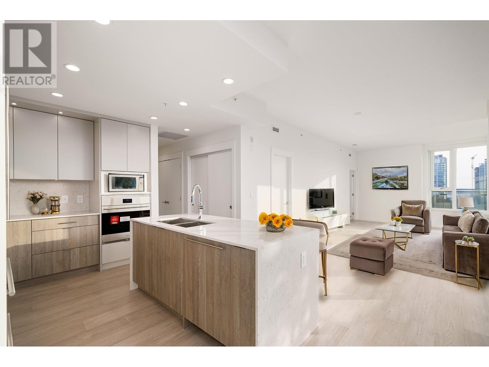 This stunning SUB-PENTHOUSE SW CORNER unit, featuring 2 bedrooms, 2 bathrooms, plus FLEX room. The spacious gourmet kitchen is equipped to host any event, offering a generous dining area and direct access to a sprawling 700+ SF wraparound deck with breathtaking views of the open horizon, City & Mountain. Premium finishes throughout include a Wolf gas cooktop, integrated SubZero fridge, quartz countertops with a waterfall edge, bar seating, A/C, engineered hardwood floors, and non-adjacent bedrooms with walk-in closets and ensuites with heated floors. Plus, you´ll enjoy the convenience of 2 side-by-side parking spaces. Ideally located in South Cambie, close to Oakridge,QE Park, Marine Gateway (T&T), Langara, and the Canada Line.2 parking included. Open house: May 24/25 2-4 pm. (id:62103)