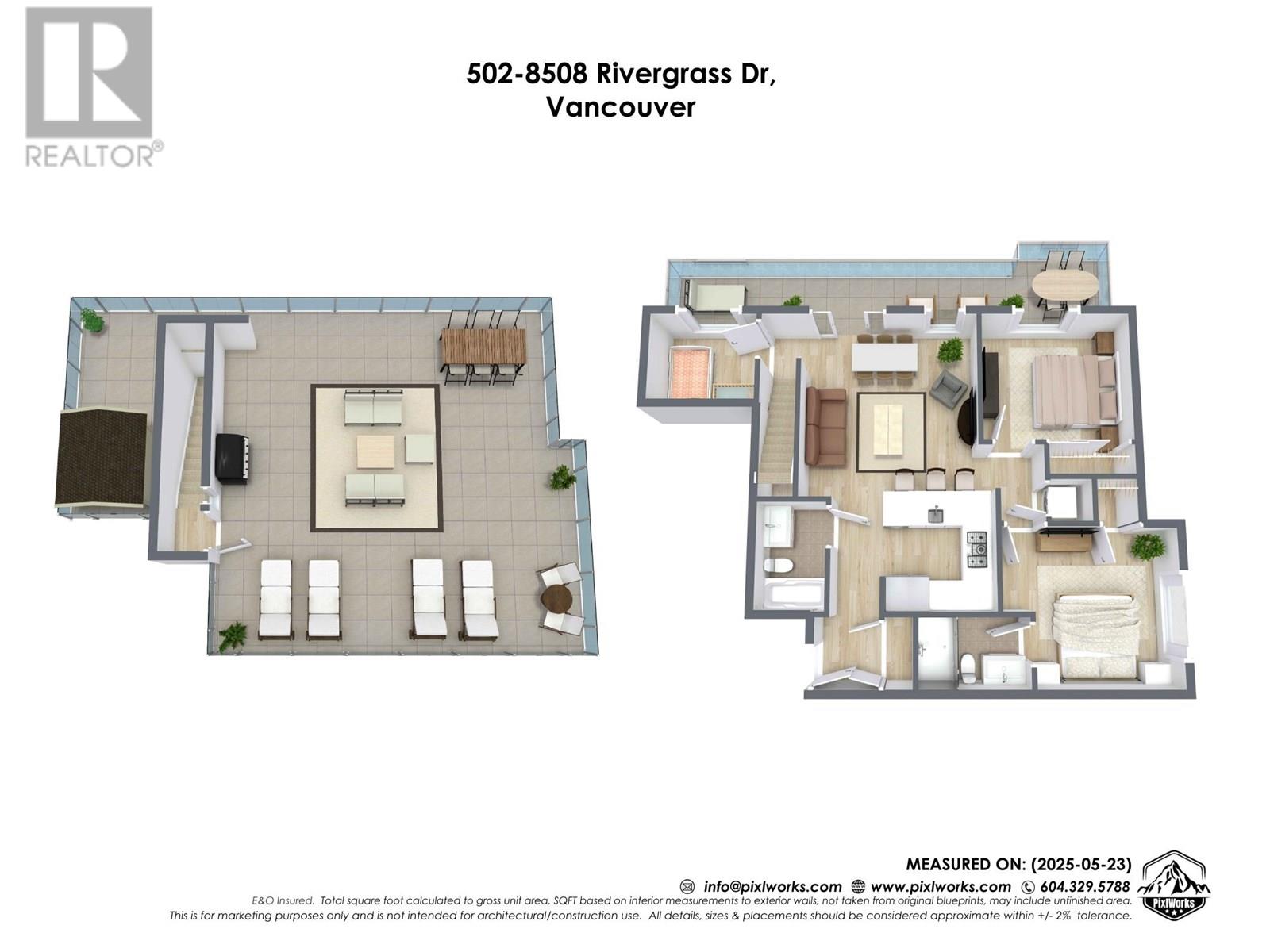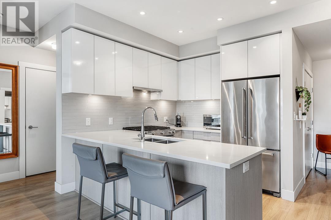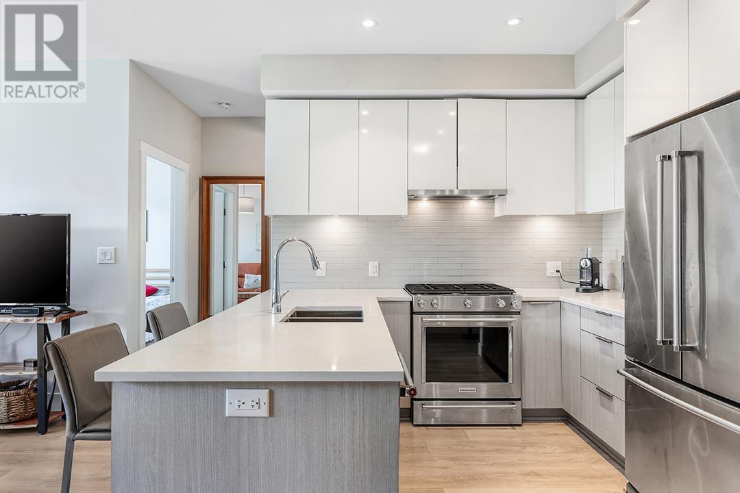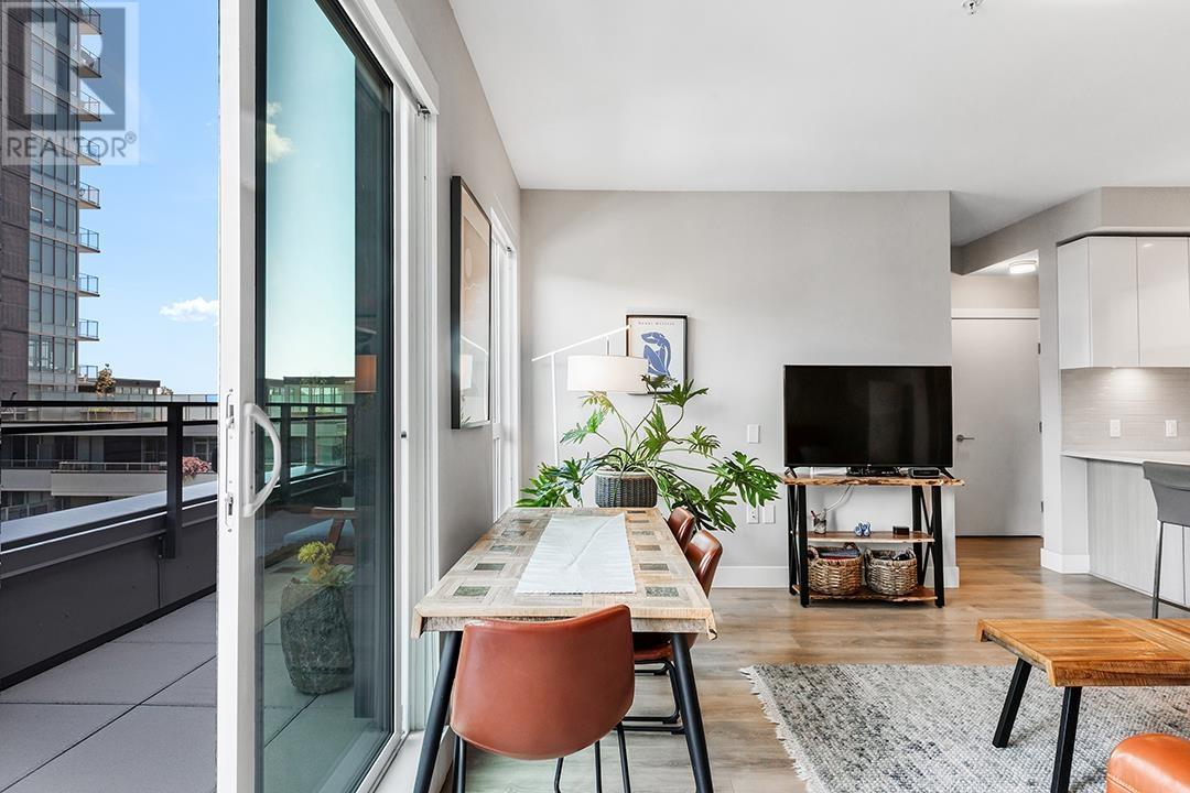 Penthouse Living in the Heart of River District – Avalon 1 West! Welcome to this stunning Jr 3 bedroom, 2 bath penthouse offering 1099sqft of well-designed living plus a 946sqft private rooftop patio. Thoughtfully laid out with no wasted space, this home features a sleek modern kitchen with premium appliances, quartz countertops, under-cabinet LED lighting, roller shades, and in-floor radiant heating. Enjoy direct access to scenic waterfront trails, parks, and green space, with groceries, banks, and dining just steps away. Avalon boasts exceptional amenities including a 3-storey SkyLounge, fitness centre, garden courtyard with playground, multipurpose room, 2 guest suites, and secure bike storage. Includes 1 parking stall and 1 locker. Open House June 14 & 15, 2-4pm. (id:62103)