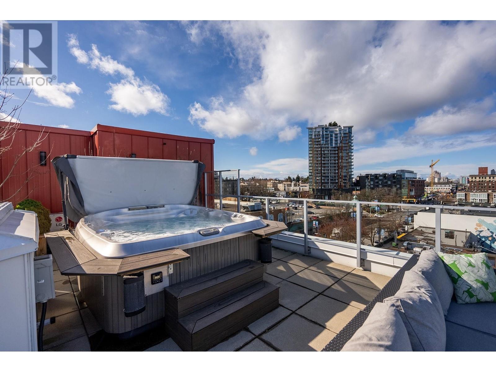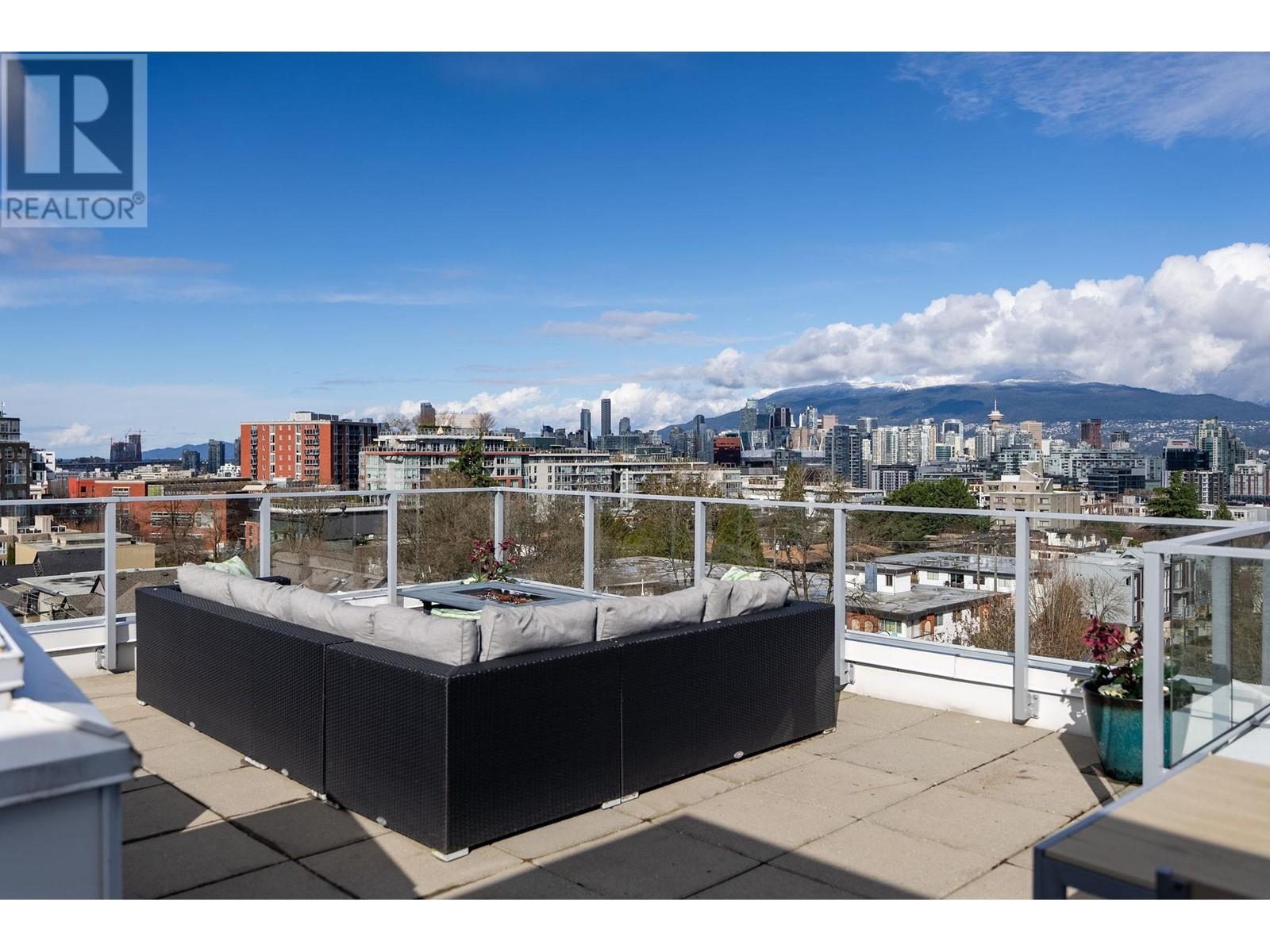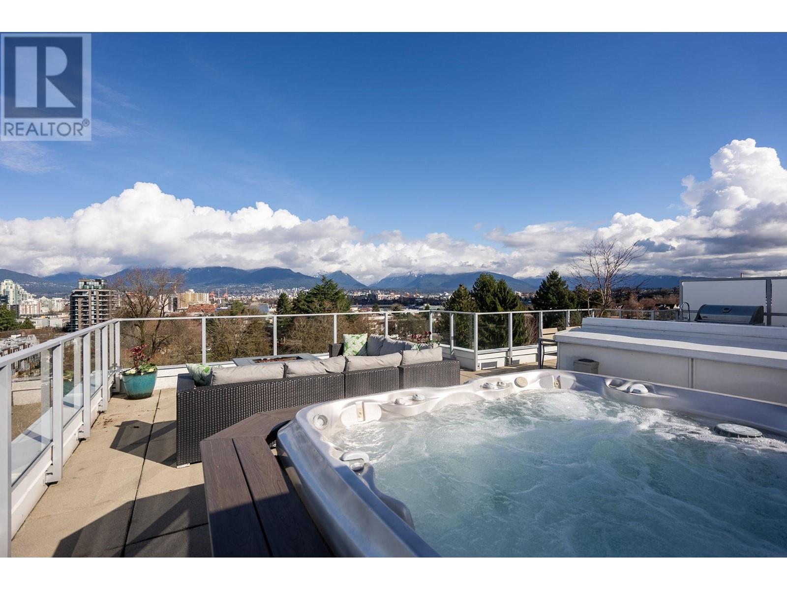 Your search for the perfect rooftop patio has ended! Presenting the stunning NW-facing PH with 850sf ROOFTOP PATIO in Mount Pleasant’s desirable ‘Synchro’ building. This 2bed+den & 2bath corner suite offers an expansive 1190sf floorplan and has plenty of eye-catching features including AC, smart home technology, 9′ ceilings, a bright skylight that allows plenty of natural light to flow through the home, and a gourmet kitchen that comes equipped with quartz countertops, large island with seating, gas cooktop, and Blomberg & Fultop s/s and integrated appliances. Situated on the quiet side of the building with peaceful views of Dude Chilling Park through to Downtown Vancouver and the North Shore Mountains which can be enjoyed from every angle of the home. Now to the best part – the rooftop deck that you have been dreaming of. Outdoor BBQ & kitchen, dining area, hot tub, seating area with fire pit, garden, storage – you can fit it all! Don’t let this one pass you by! Open House: Sunday, May 25th from 2-4pm. (id:62103)